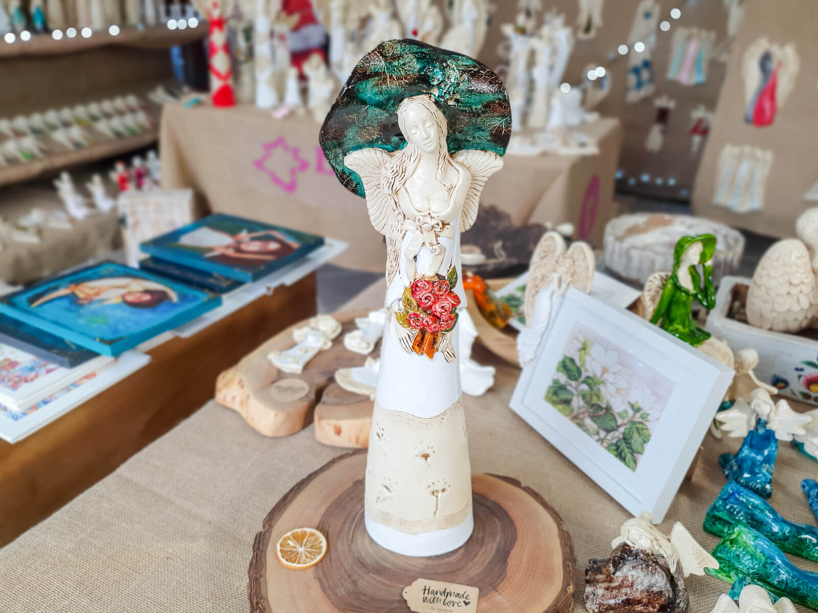 Jeśli anioł ma zostać wręczony jako prezent możemy go również elegancko zapakować w przeźroczysty celofan wiązany ekologicznym sznurkiem. Dzięki temu anioł będzie wyglądał jeszcze bardziej dostojnie i będzie gotowy do wręczenia. Dla wygody możesz również od razu zakupić papierową białą torbę prezentową.