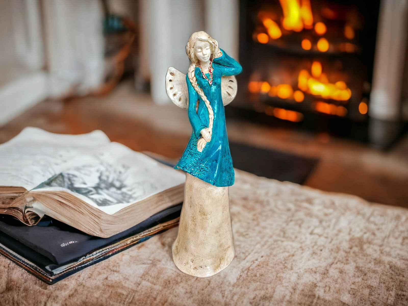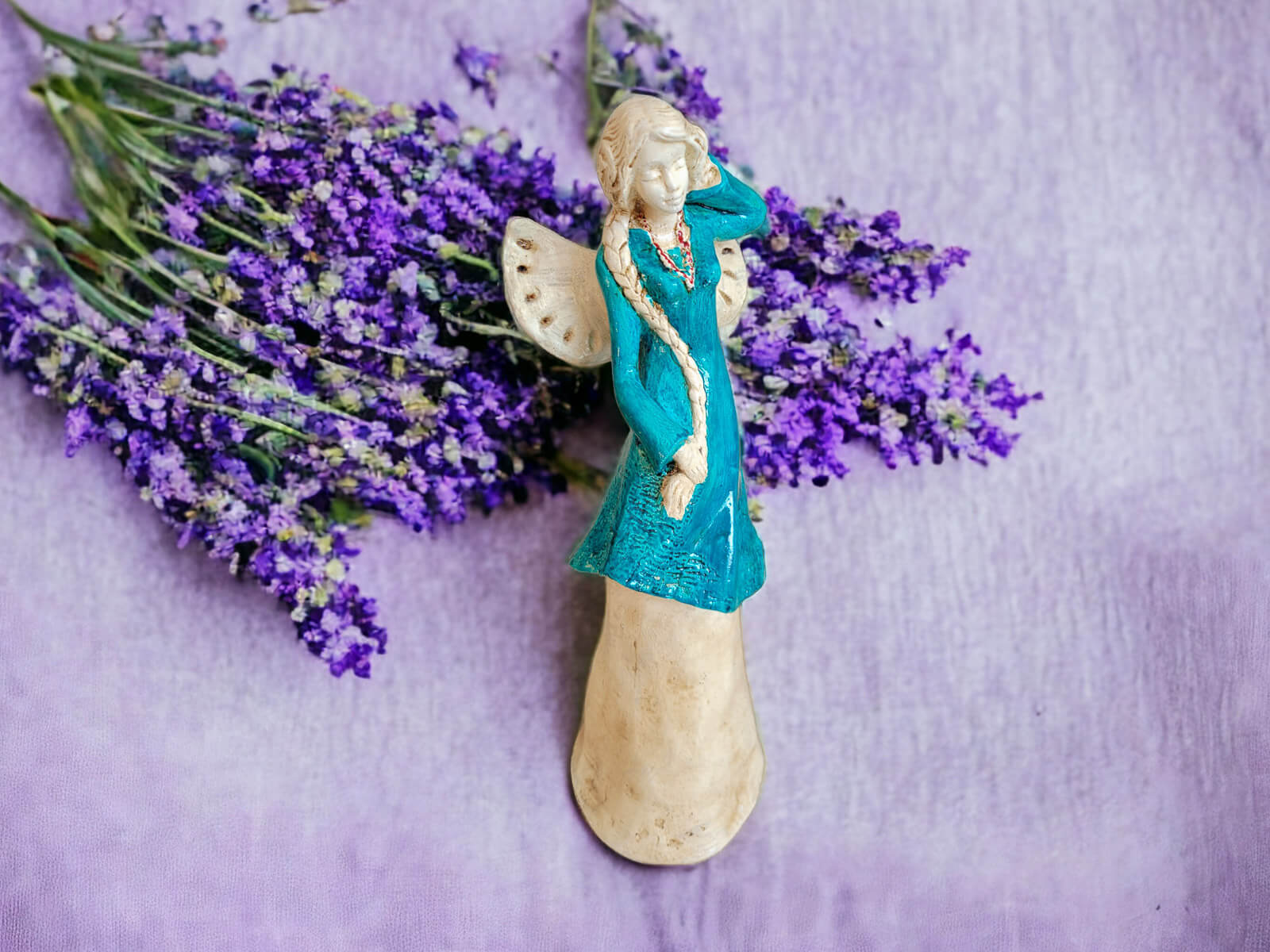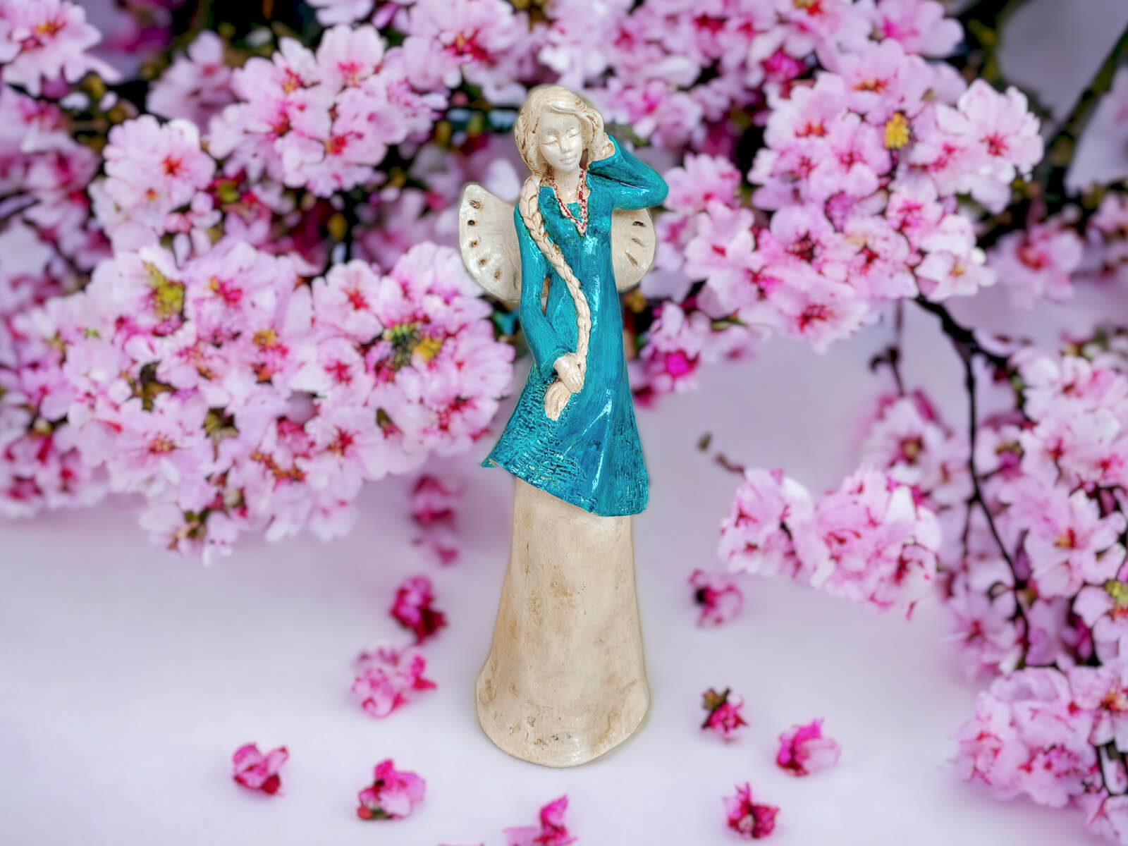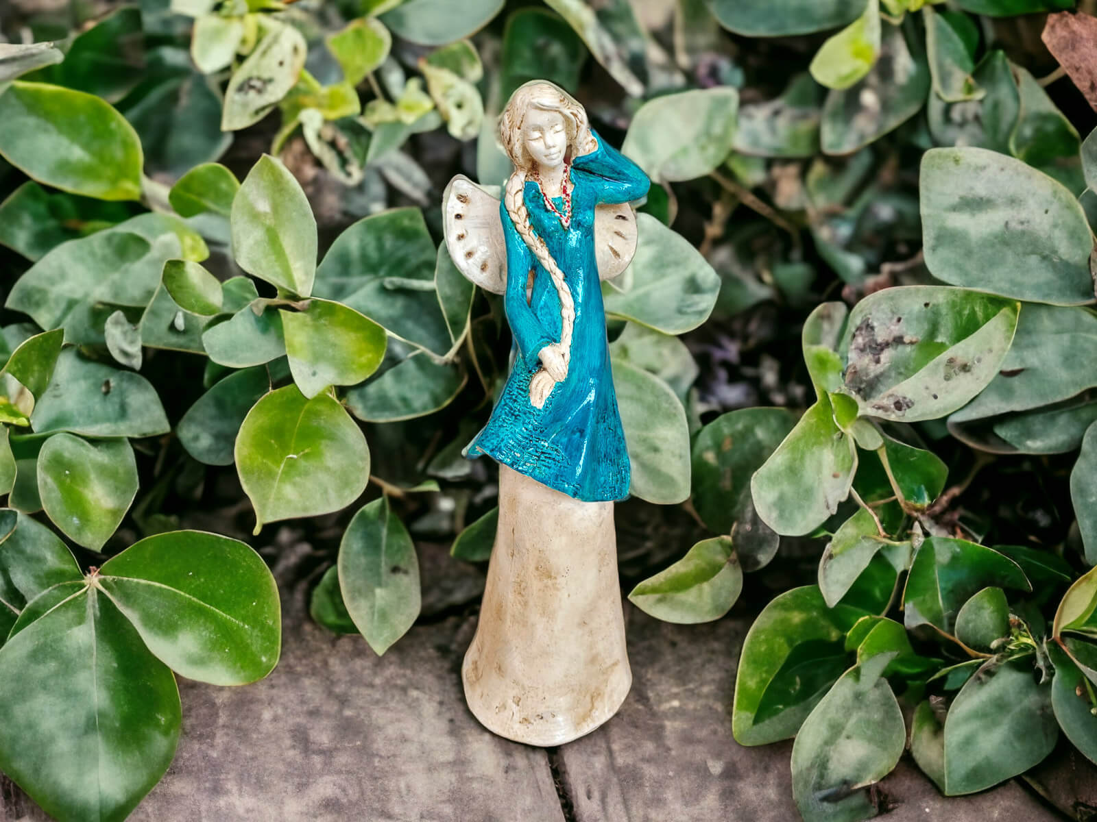 Anioł Arianna to postać pięknej uskrzydlonej dziewczyny z warkoczem sięgającym bioder. Ma skromną suknię utrzymaną w odcieniach turkusu i beżu. Może stanowić oryginalną dekorację salonu, która z pewnością wyróżni się na tle innych ozdób i przyciągnie wzrok gości, a podarowana bliskiej osobie na pewno sprawi dużo radości.