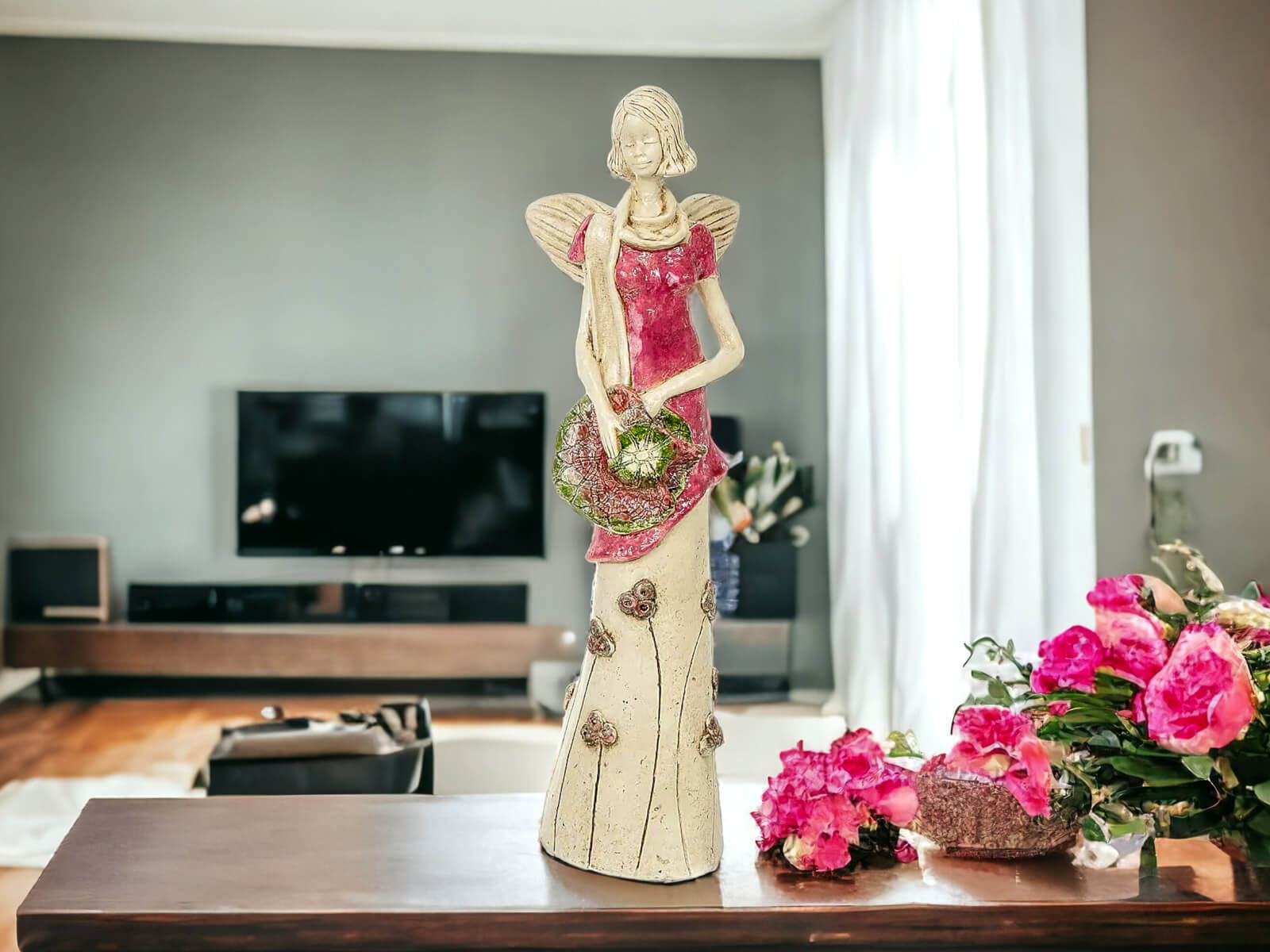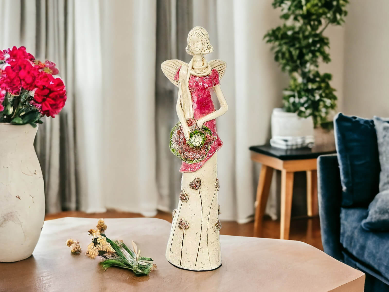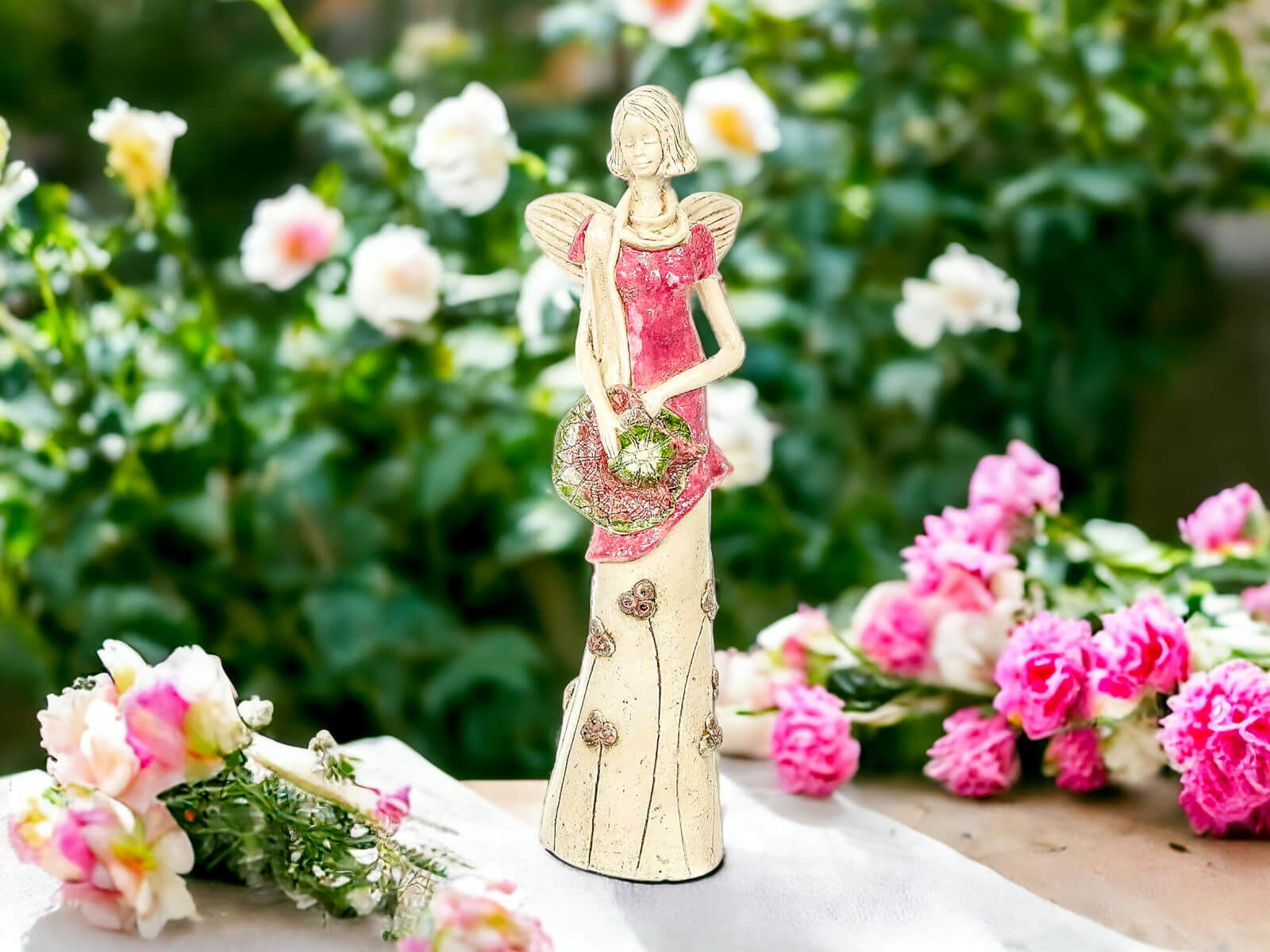 Figurka Anioła Sunday Rose w różowej sukni to figurka, która rozkwita delikatnością i wdziękiem. Ręcznie wykonana z pasją, ta figurka to prawdziwe dzieło sztuki, które wnosi do Twojego domu nutę spokoju i piękna.