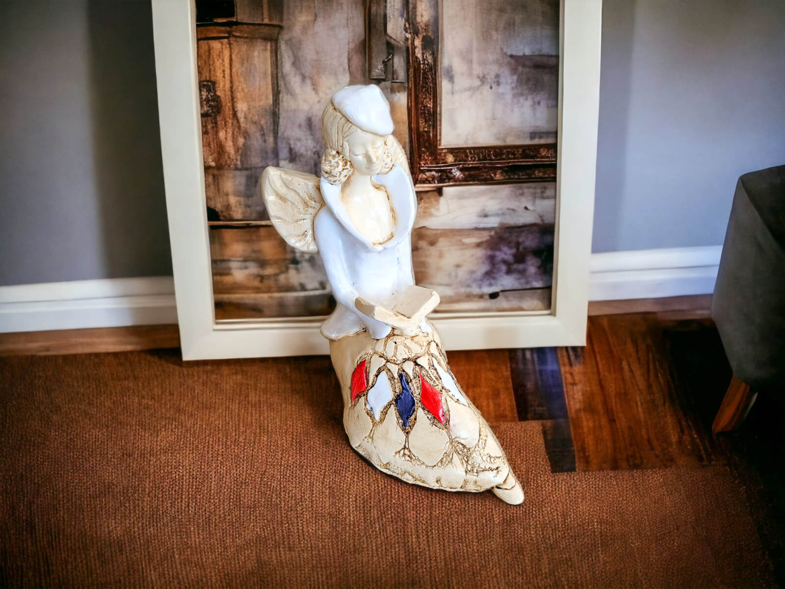 Anioł Loretta w białym kolorze. Anioł Loretta czyta w każdym miejscu. Przysiada otwiera książkę, którą zawsze ma przy sobie i świat realny dla niej znika. To romantyczka i humanistka, więc matematyczne podręczniki omija szerokim łukiem. Ma świetną pamięć, więc na każdą sytuację życiową ma cytat, który wypowiada przymykając oczy i machając delikatnie skrzydłami. Loretta poleca innym aniołom książki, a nawet pożycza im swoje, które kolekcjonuje w domowej biblioteczce.
