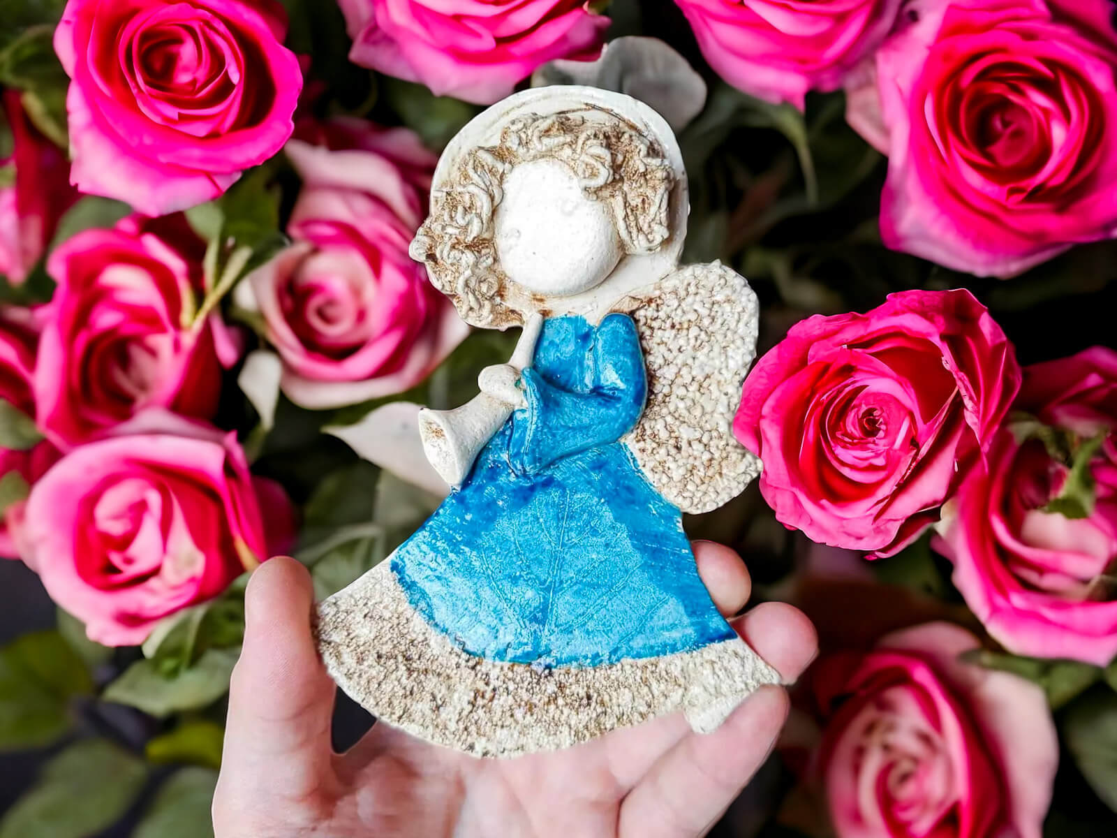 Aniołek to ręcznie wykonana figurka. Liolinka jest młodą, pełną wdzięku dziewczynką. Jest artystką. Całymi dniami pięknie gra na trąbce. Jest zatracona w muzyce. Anieliczka swoją grą na trąbce porywa każdego słuchacza do zatracenia się w dźwiękach muzyki. Dziewczynka jest ubrana w zwiewną, turkusową sukienkę. W ręku trzyma swoją ukochana trąbkę. Zaprasza wszystkich na swój magiczny koncert. Figurka idealnie nadaje się na prezent dla bliskiej osoby. Można postawić ją w każdym miejscu w domu.
