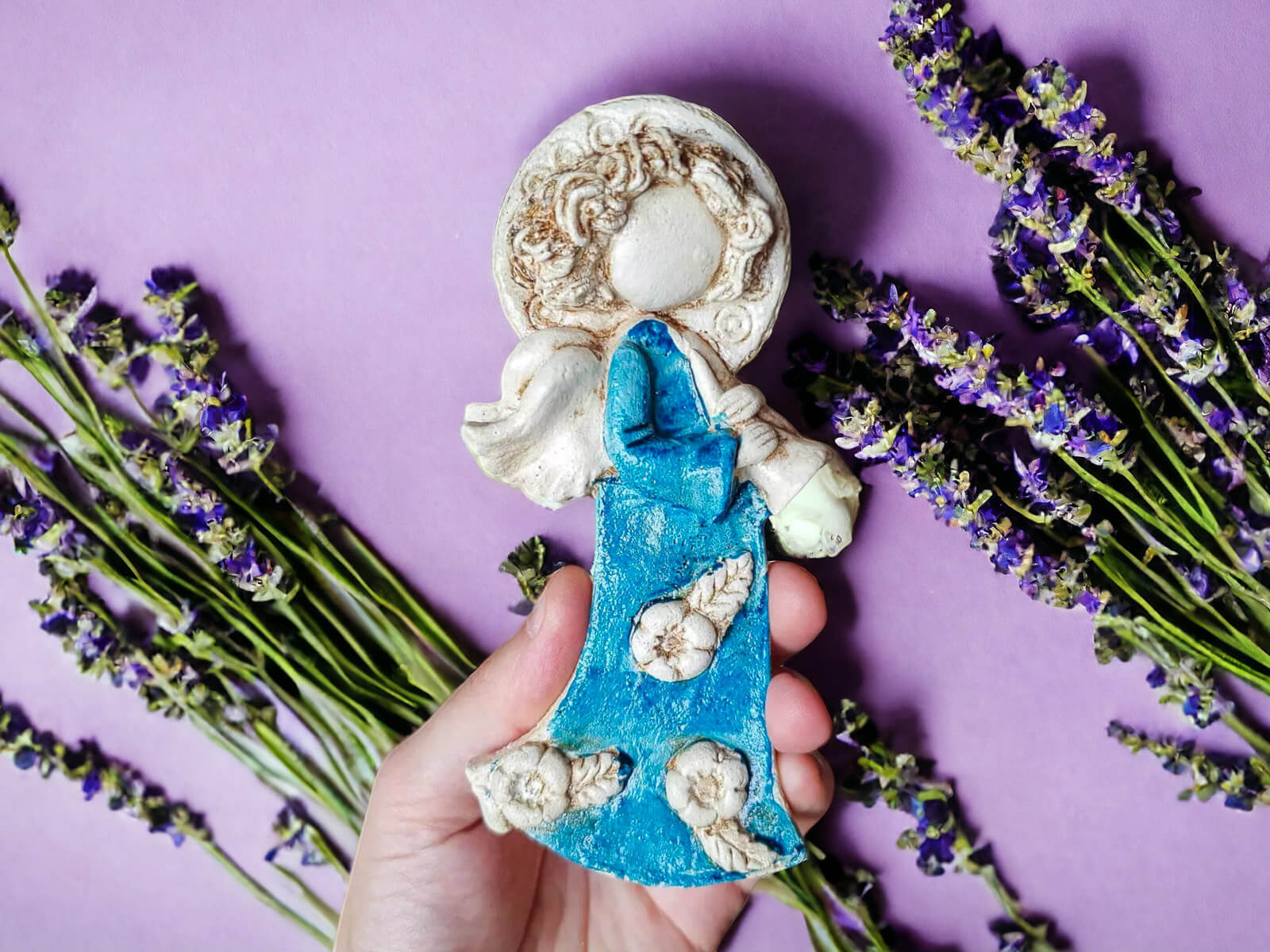 Liolinka z fletem to mały aniołek ubrany w turkusową sukienkę zdobioną kwiatami. W dłoniach trzyma flet, na którym gra piękne melodie. Ma jasne włosy, które pokryte są ozdobną aureolą. Z tyłu wystają małe skrzydła. Figurka idealnie ozdobi dzięcięcy pokój.