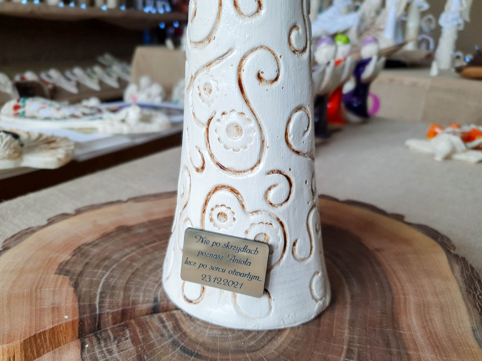 „Niech ta figurka przypomina Ci, że masz przy sobie anioła – zawsze, gdy się śmiejesz, gdy się boisz i gdy się modlisz.”