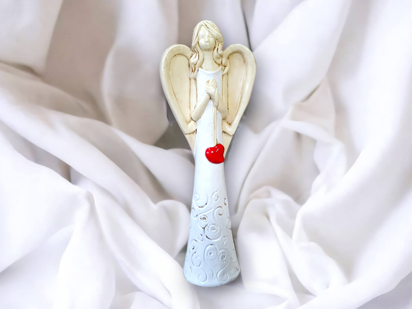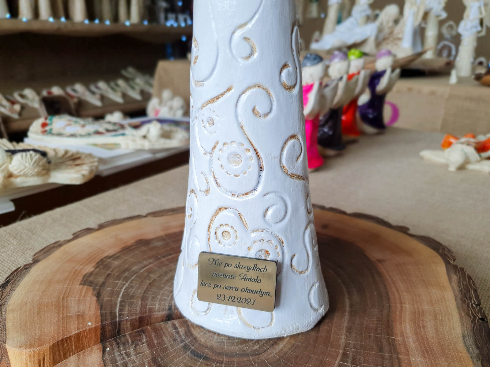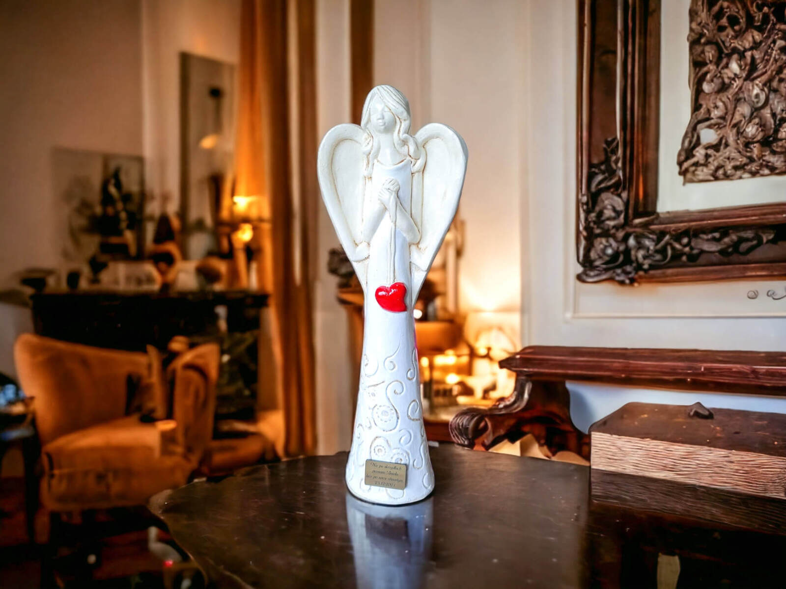 „Niech ta figurka przypomina Ci, że masz przy sobie anioła – zawsze, gdy się śmiejesz, gdy się boisz i gdy się modlisz.”