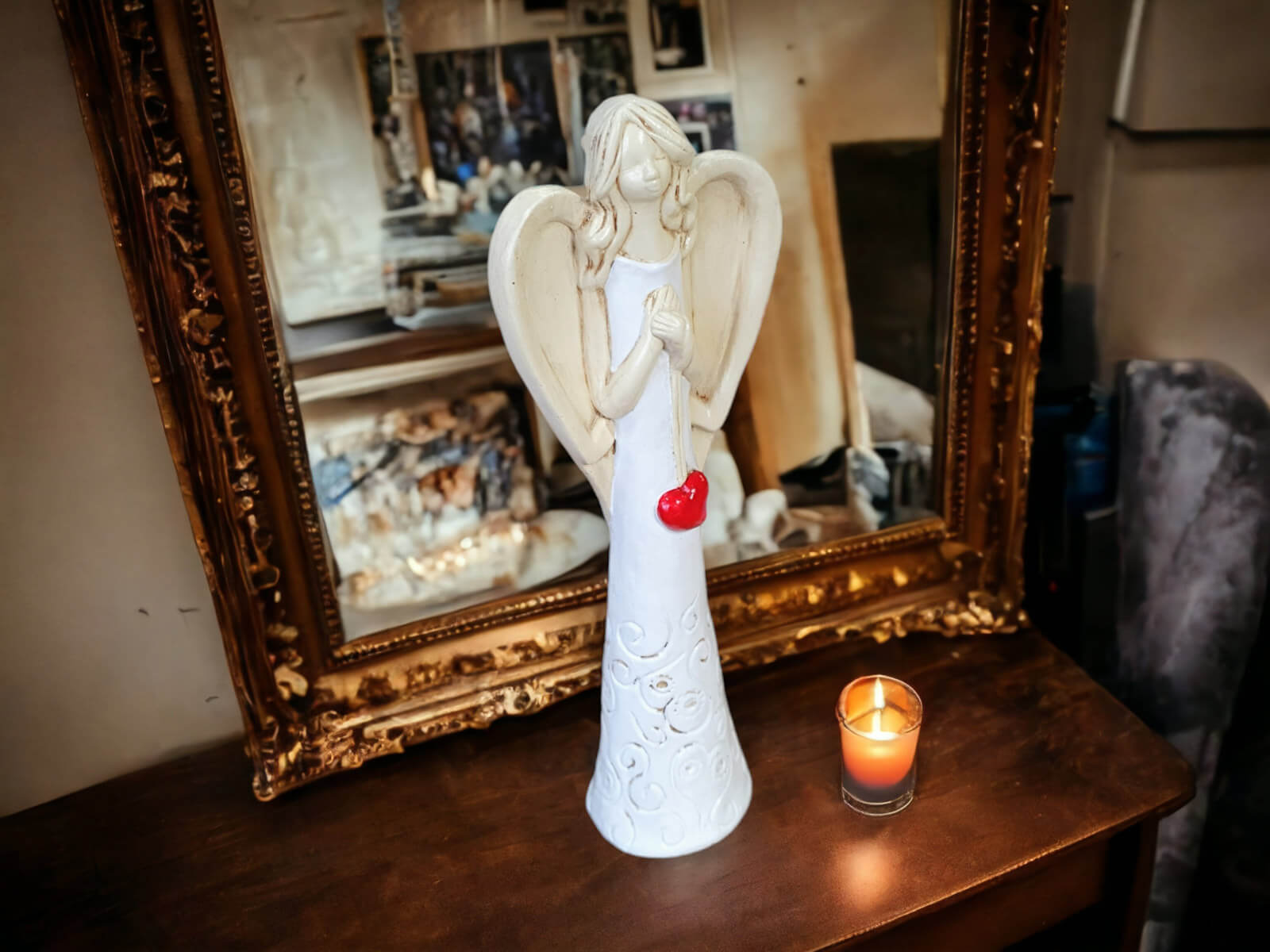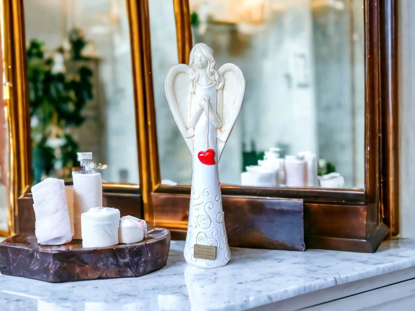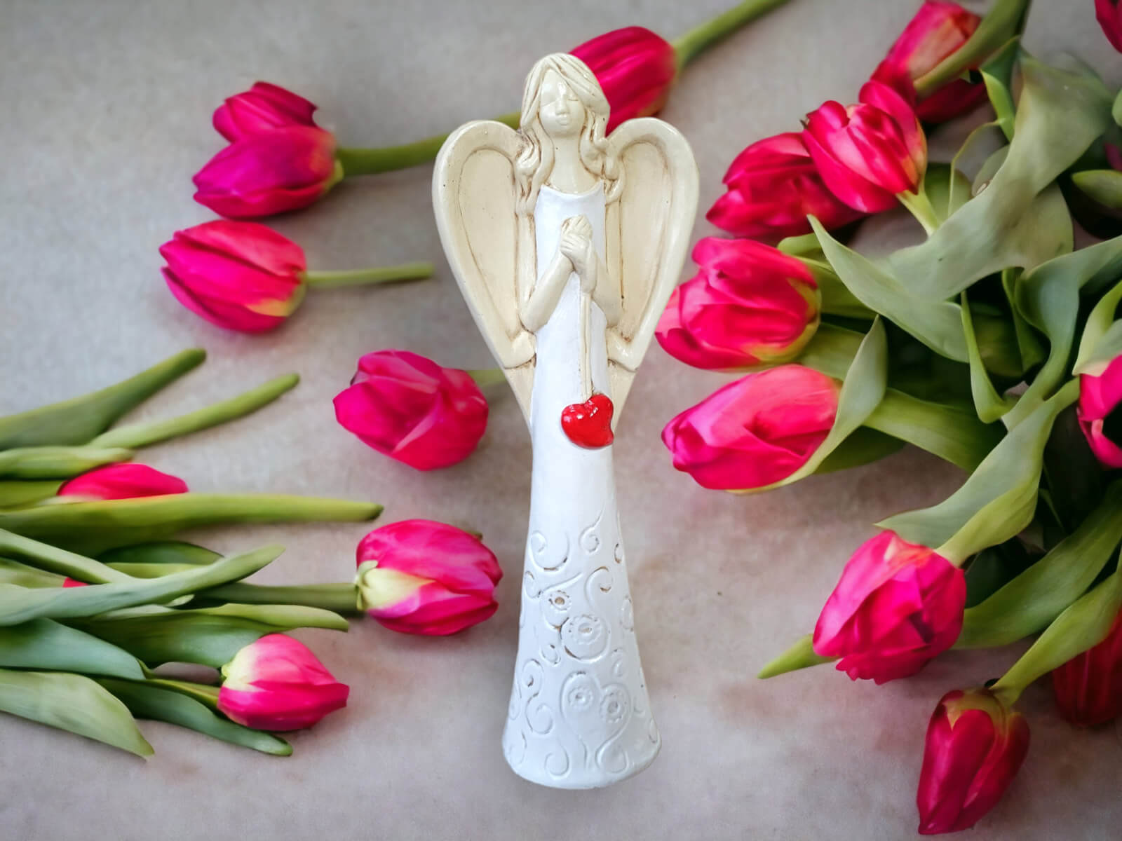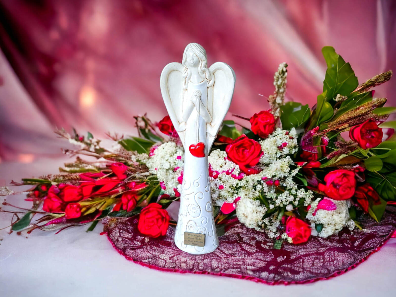 „Niech ta figurka przypomina Ci, że masz przy sobie anioła – zawsze, gdy się śmiejesz, gdy się boisz i gdy się modlisz.”