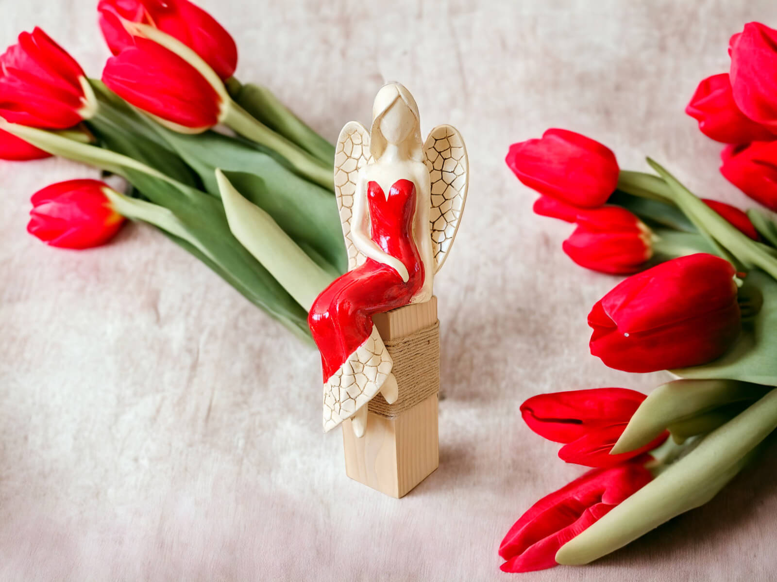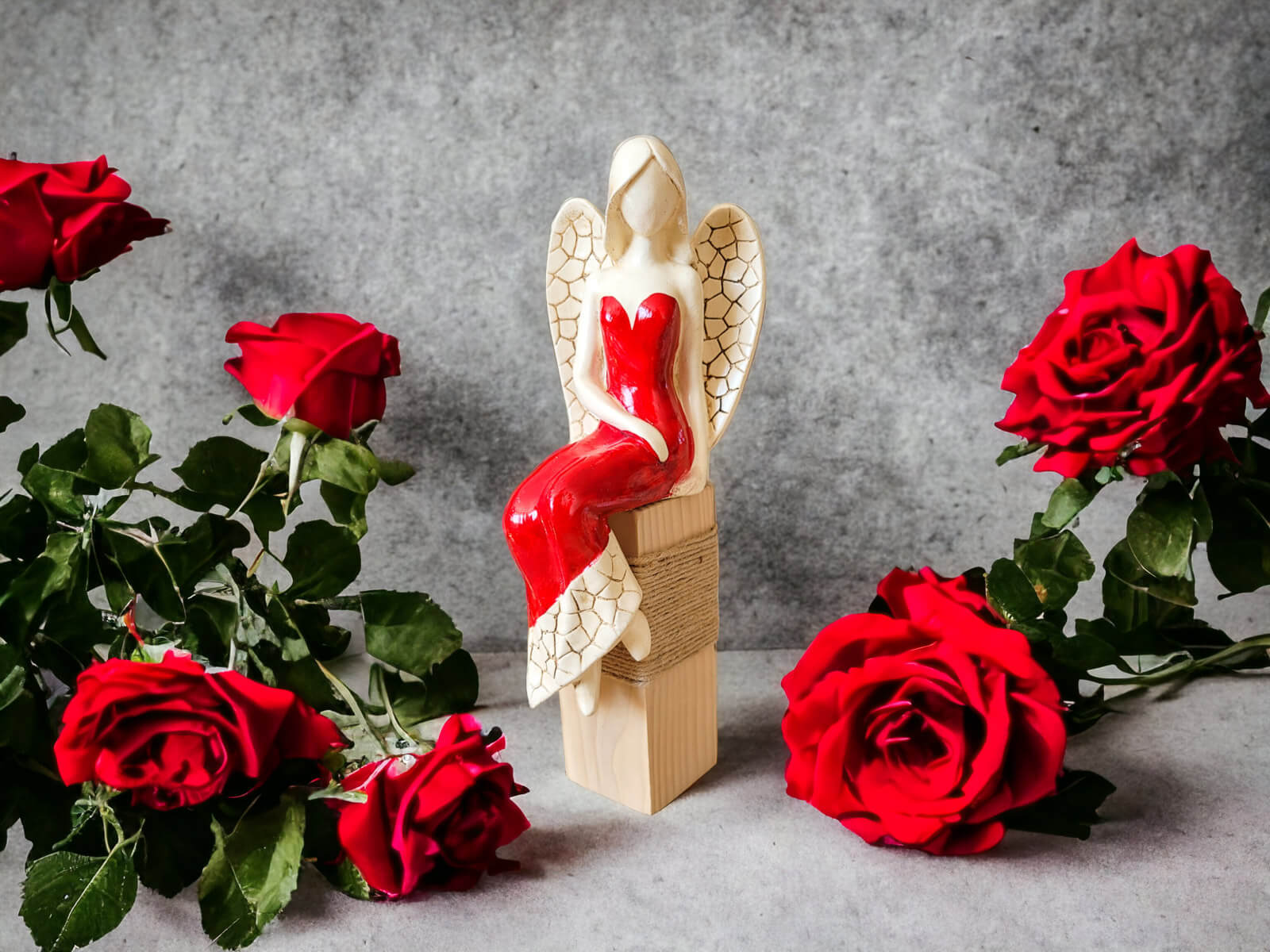 Jeśli anioł ma zostać wręczony jako prezent możemy go również elegancko zapakować w przeźroczysty celofan wiązany ekologicznym sznurkiem. Dzięki temu anioł będzie wyglądał jeszcze bardziej dostojnie i będzie gotowy do wręczenia. Dla wygody możesz również od razu zakupić papierową białą torbę prezentową.