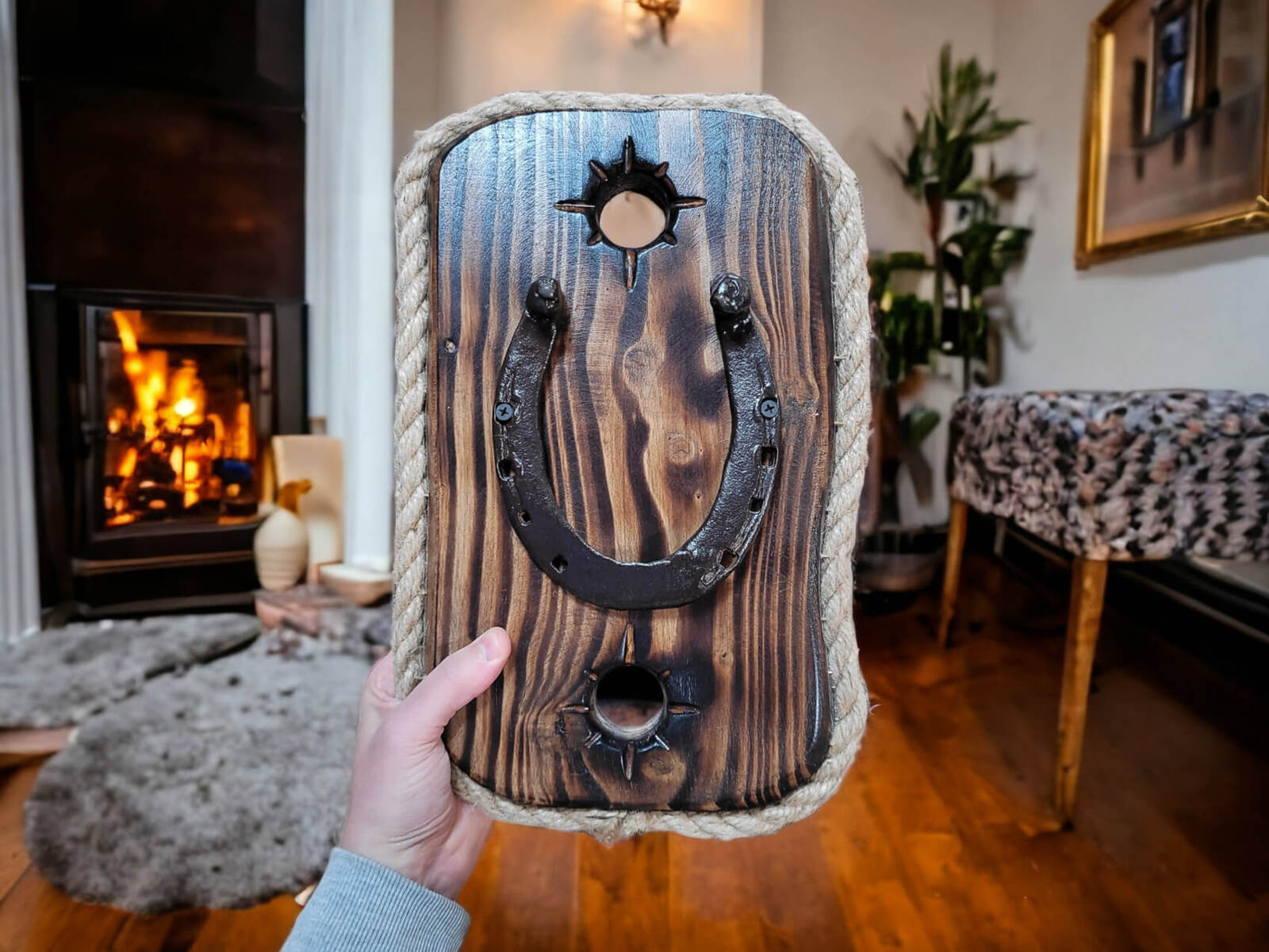 Stara podkowa na desce do powieszenia. Ręcznie robiona, stylowa dekoracja drewniana. Jeśli chcesz mieć coś naturalnego w mieszkaniu, a zarazem coś starego z historią, to ta dekoracja będzie świetnym pomysłem. Dekoracja unikatowa. Doskonały pomysł dla mężczyzny i kogoś kto lubi naturalne dekoracje.