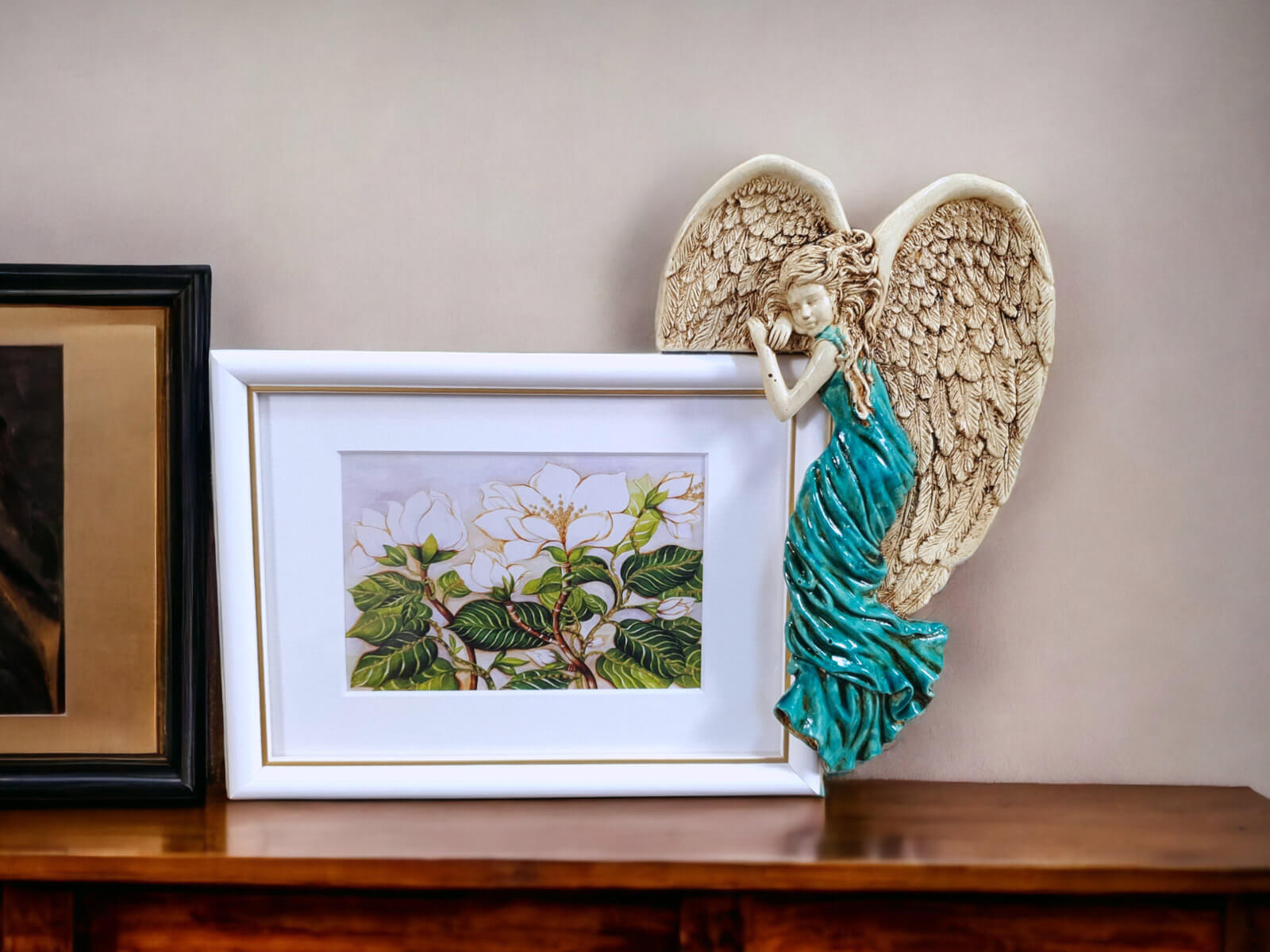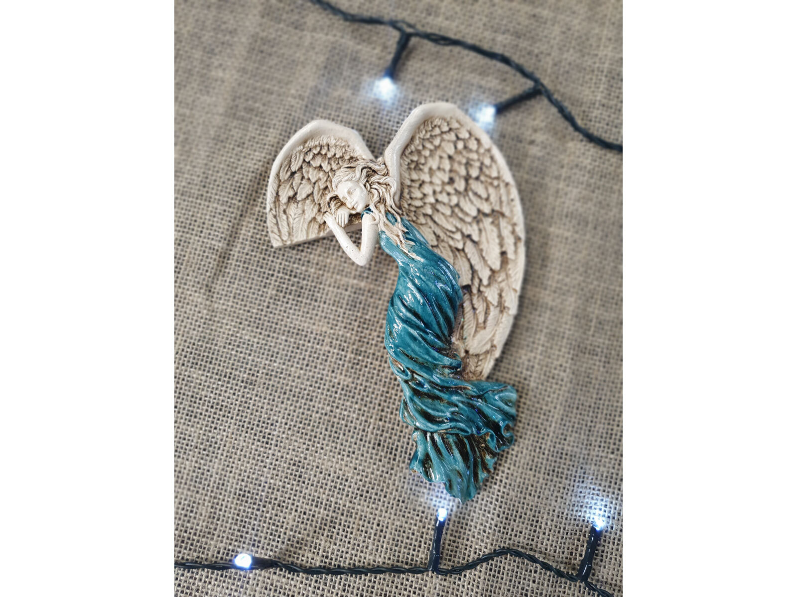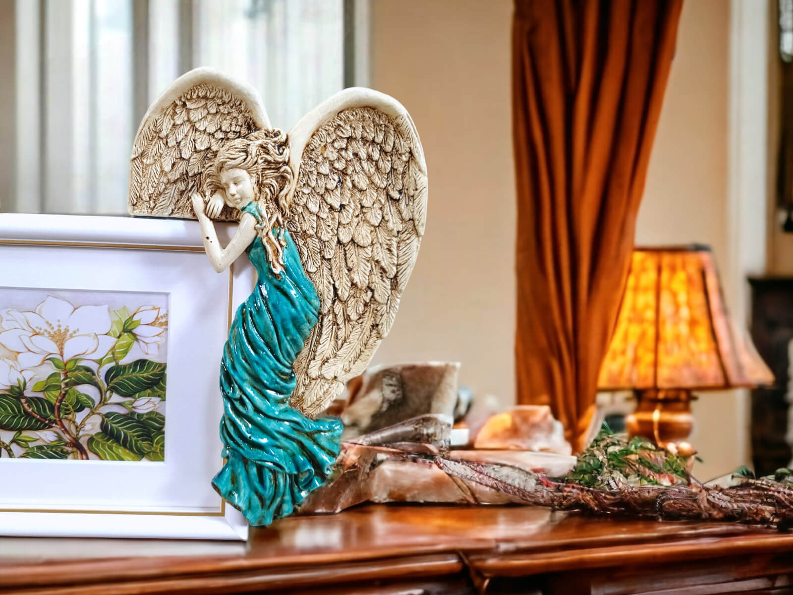 • Anioł Andrea - turkus prawy -  19 x 11 cm figurka dekoracyjna gipsowa
