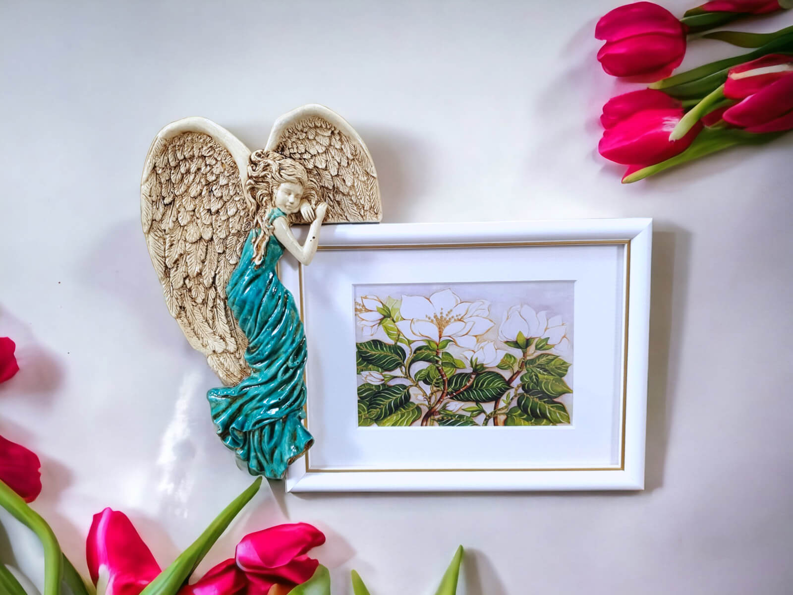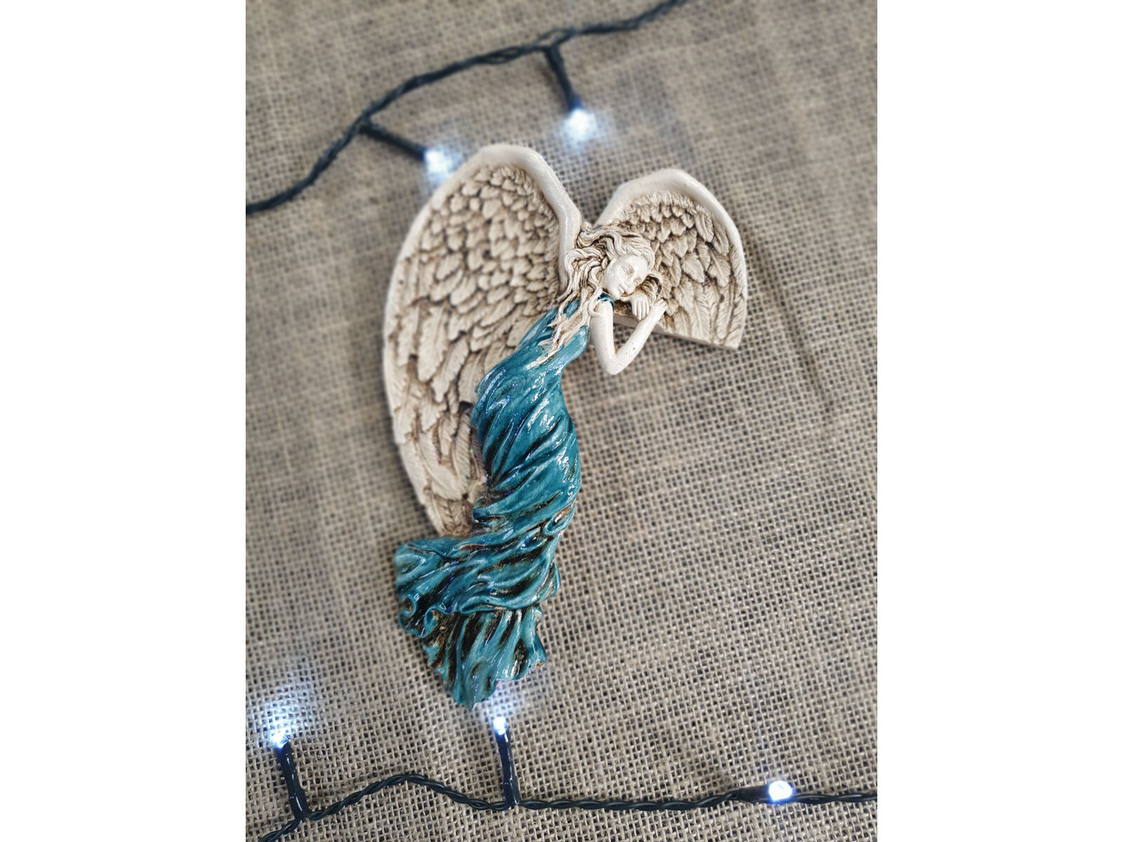 Jeśli anioł ma zostać wręczony jako prezent możemy go również elegancko zapakować w przeźroczysty celofan wiązany ekologicznym sznurkiem. Dzięki temu anioł będzie wyglądał jeszcze bardziej dostojnie i będzie gotowy do wręczenia. Dla wygody możesz również od razu zakupić papierową białą torbę prezentową.