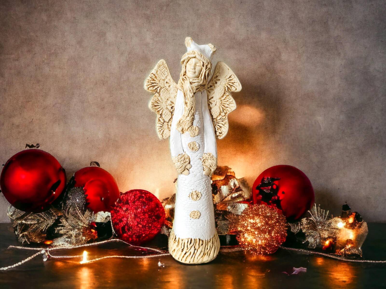 Anioł Bieszczadzki w wersji białej - zimowej, to Anioł mieszkający w leśnej chatce w pięknych polskich górach Bieszczadach. Żyje w przyjaźni z niedźwiedziami, dzikami, lisami, wilkami. Bardzo często gości u siebie inne anioły, szczególnie w sezonie turystycznym. Często snuje opowieści i śpiewa przygrywając na gitarze. Lubi robić na szydełku koronki, które potem nosi albo sprzedaje.