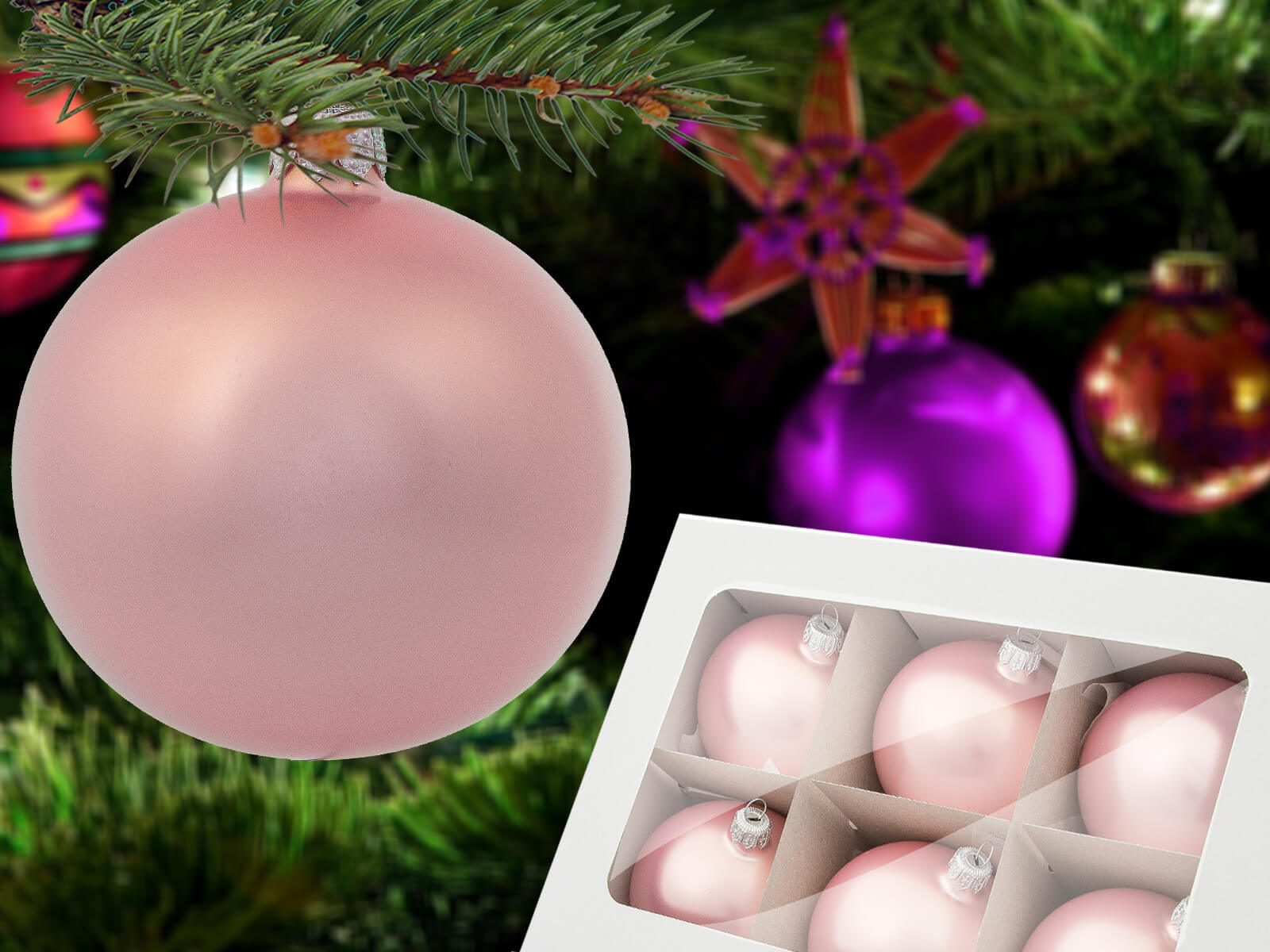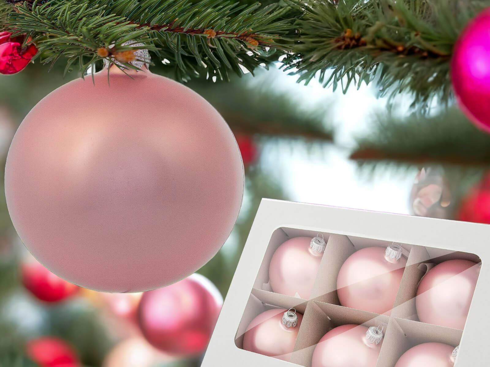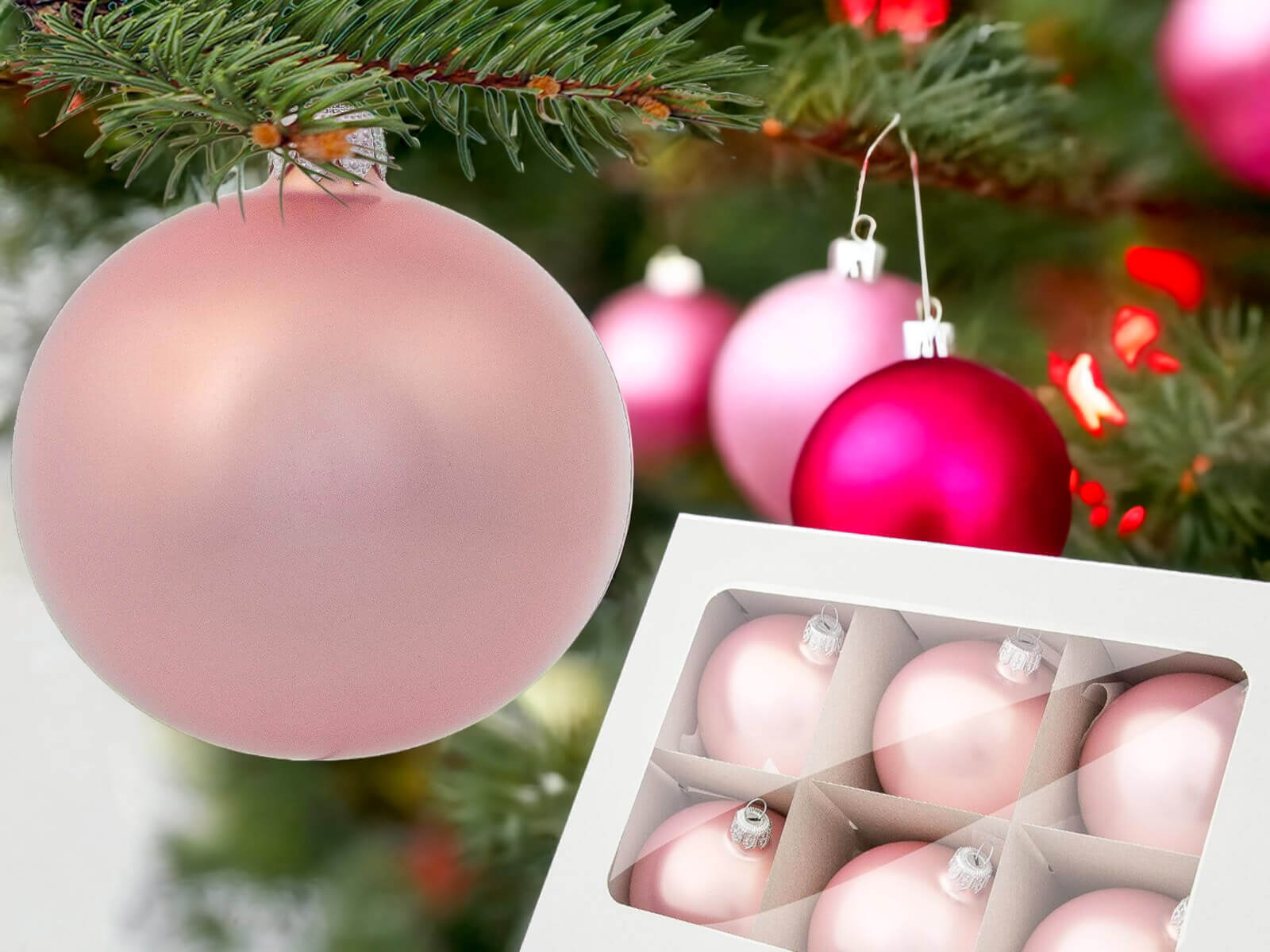 Zestaw składa się z 6 różowych bombek o matowej strukturze z lekkim połyskiem. Kolor różowy nada Twojej choince uroku i wdzięku. Nadają się dla osób, które lubią klasyczne, jednokolorowe dekoracje. Idealnie sprawdza się w nowoczesnym jak i klasycznym wnętrzu.
