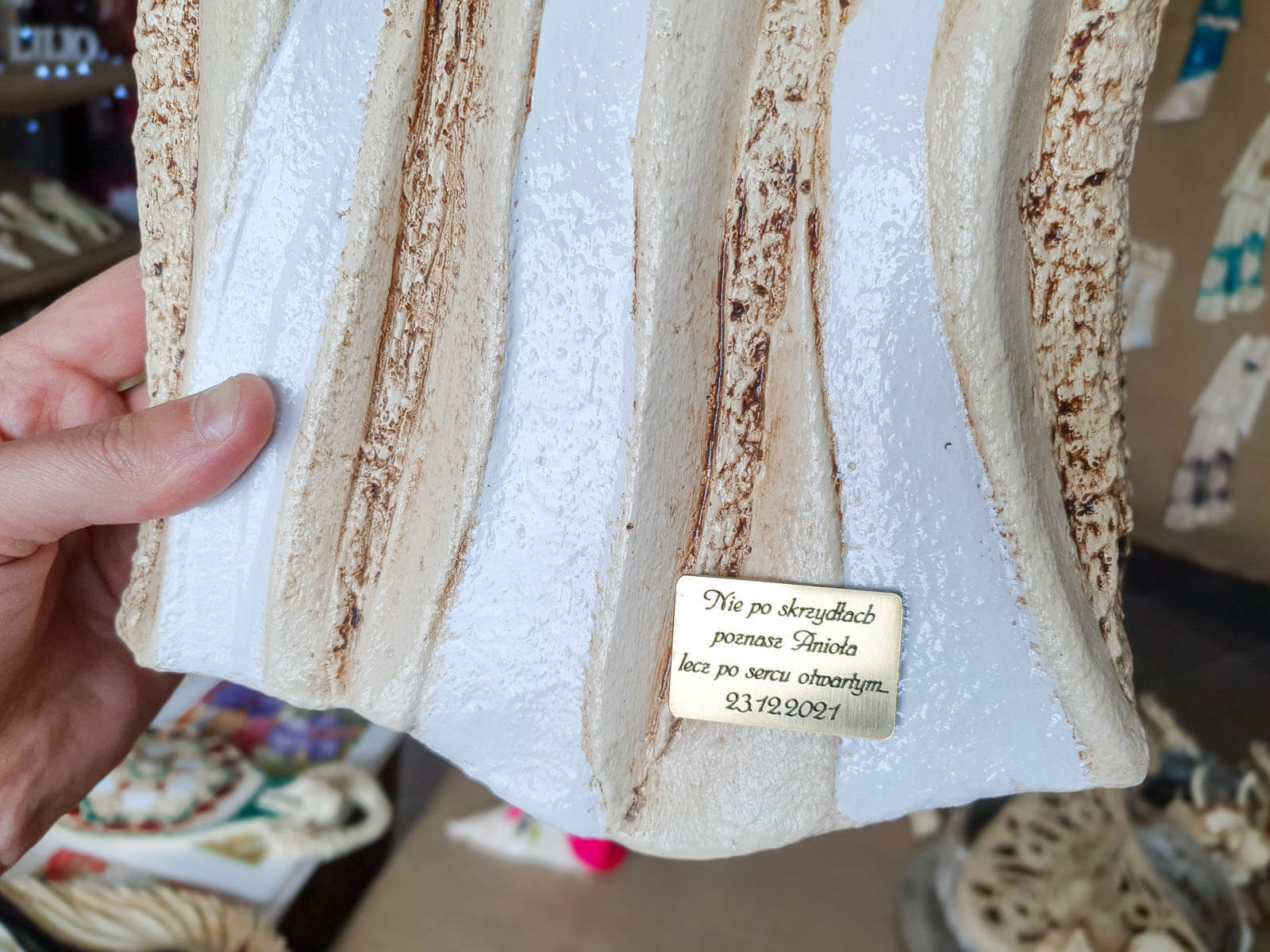 „Niech ta figurka przypomina Ci, że masz przy sobie anioła – zawsze, gdy się śmiejesz, gdy się boisz i gdy się modlisz.”