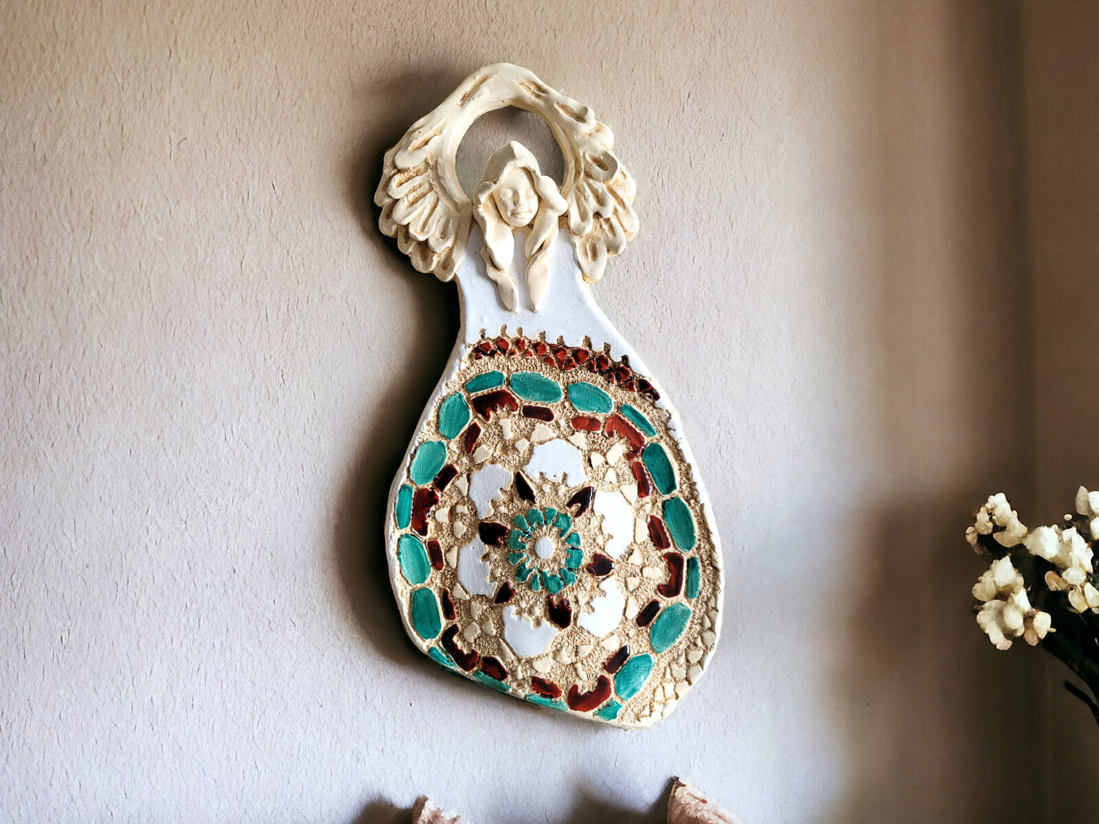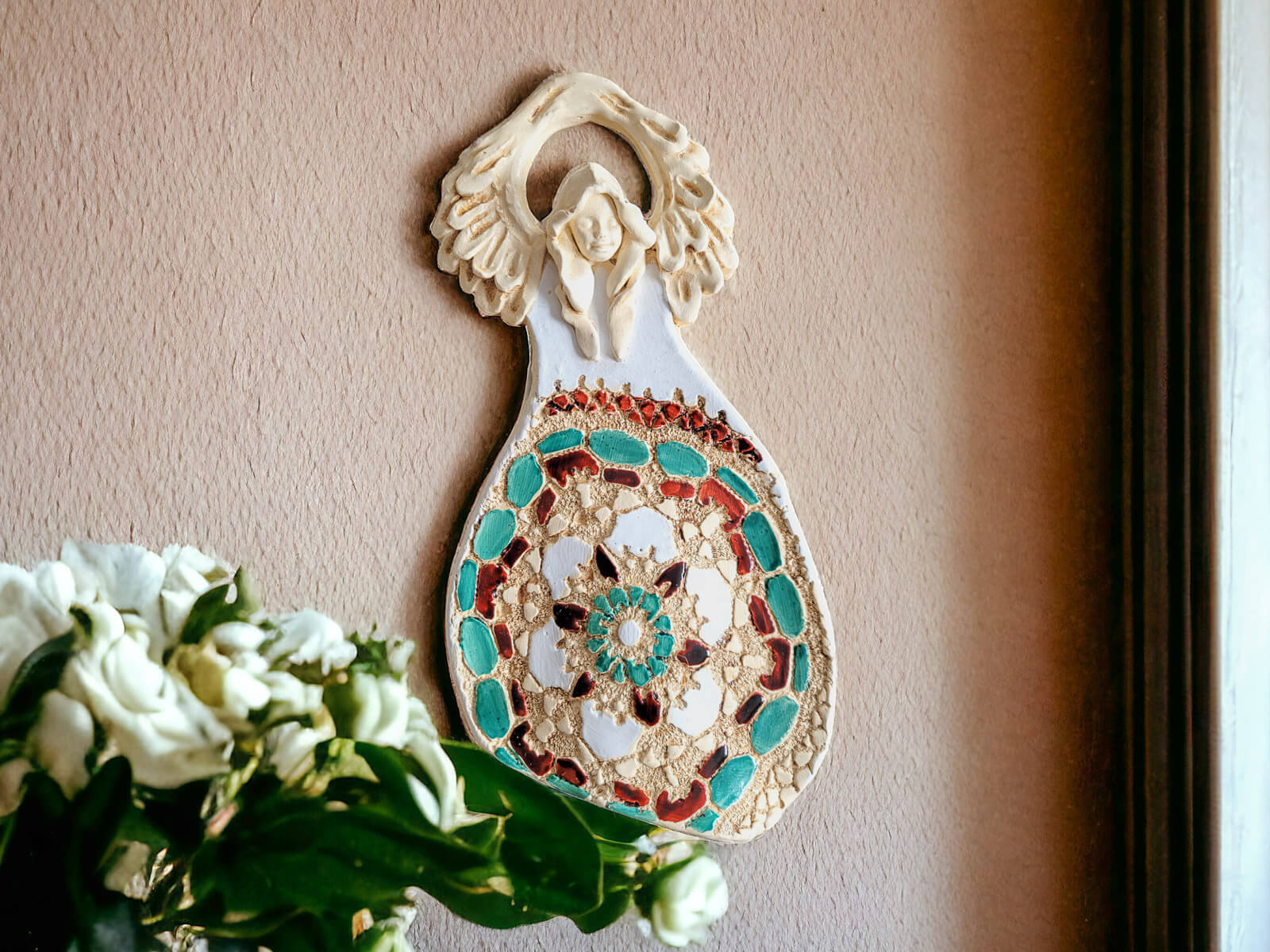 Jeśli anioł ma zostać wręczony jako prezent możemy go również elegancko zapakować w przeźroczysty celofan wiązany ekologicznym sznurkiem. Dzięki temu anioł będzie wyglądał jeszcze bardziej dostojnie i będzie gotowy do wręczenia. Dla wygody możesz również od razu zakupić papierową białą torbę prezentową.