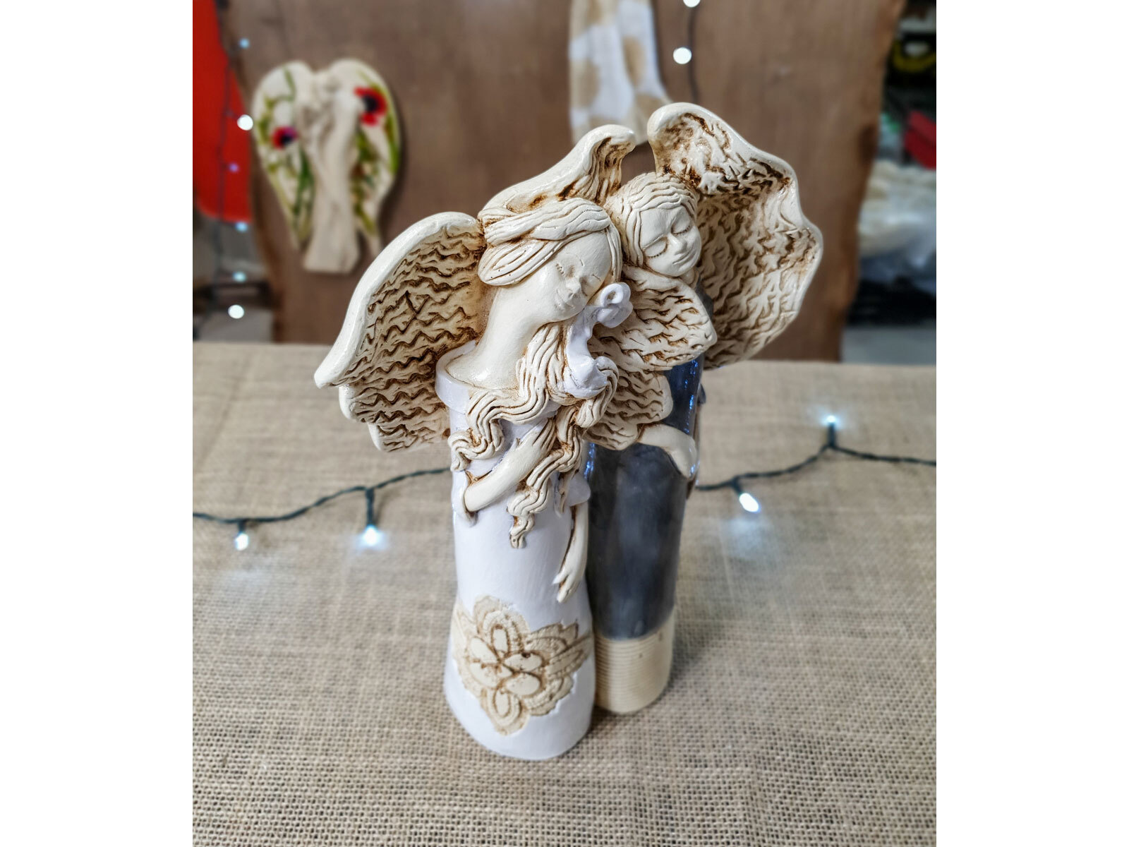 Nora i Ellie to siostry, darzące się wzajemnie ogromną miłością. Kochają spędzać razem czas i nie mogłyby żyć oddzielnie. Dlatego właśnie figurka przedstawia je razem - wtulone w siebie celebrują chwile spędzane razem. Całość ubrana jest w piękne, subtelne barwy - biel, beż z nutą czerni. Figura pięknie udekoruje salon bądź ogród.