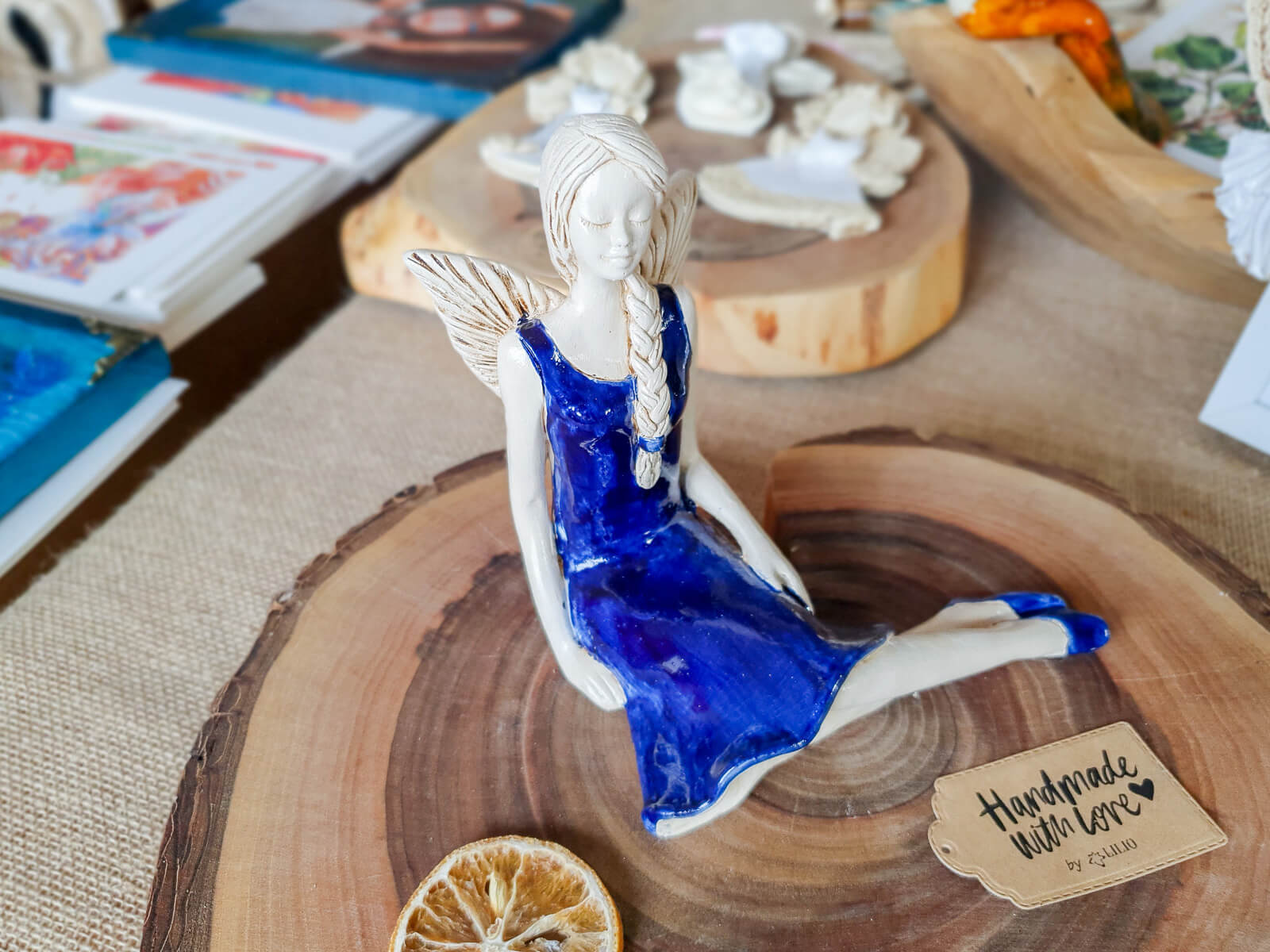 Anioł Matilda to wyjątkowa, ręcznie wykonana figurka, która urzeka swoją prostotą i delikatnością. Matilda jest skromną i subtelną dziewczyną, która kocha naturę. Codziennie wybiera się w ustronne miejsca, aby odpocząć w otoczeniu przyrody. Można ją spotkać siedzącą na łące, wśród polnych kwiatów, co dodaje jej postaci naturalnego uroku.