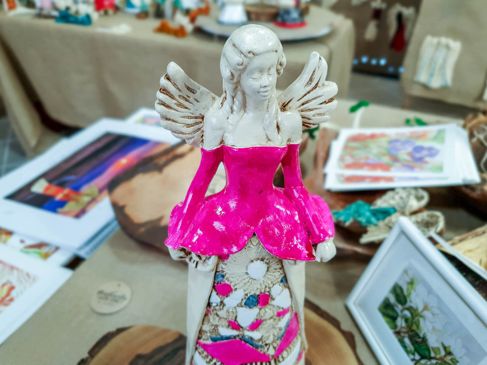 Anioł Anna jest ręcznie wykonaną figurką gipsową w kolorze różowym. Można go postawić w różnych miejscach, ponieważ jest stojący. Przedstawia kobietę w pięknej, kolorowej sukni. Góra sukni jest czerwona, a dół beżowy z kolorowymi wzorami. Ma on jasne, kręcone włosy i małe skrzydła skierowane ku górze. Idealnie nadaje się na prezent dla kobiety - żony, matki, babci czy przyjaciółki. Jego niespotykany wygląd przyciąga wzrok w salonie lub innym pomieszczeniu i stanowi doskonały dodatek dekoracyjny.