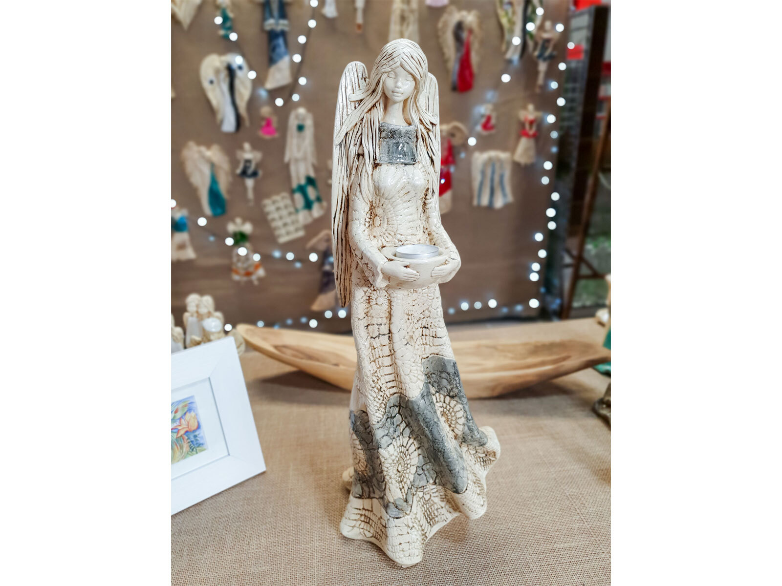 Anioł Genesis to ręcznie wykonana figurka w wersji stojącej w kolorze szarym. Jego imię jest pochodzenia greckiego. Anioł jest pełen tajemnic. Cały swój czas poświęca sprawom społecznym. Potrafi każdemu udzielić pomocy i wsparcia. Troska o innych wypływa prosto z jej serca. Jest ubrany w zwiewną, beżową suknie z haftowanymi ornamentami. Z gracją eksponuje rozłożyste skrzydła. Figurka nadaje się na prezent na każdą okazję.