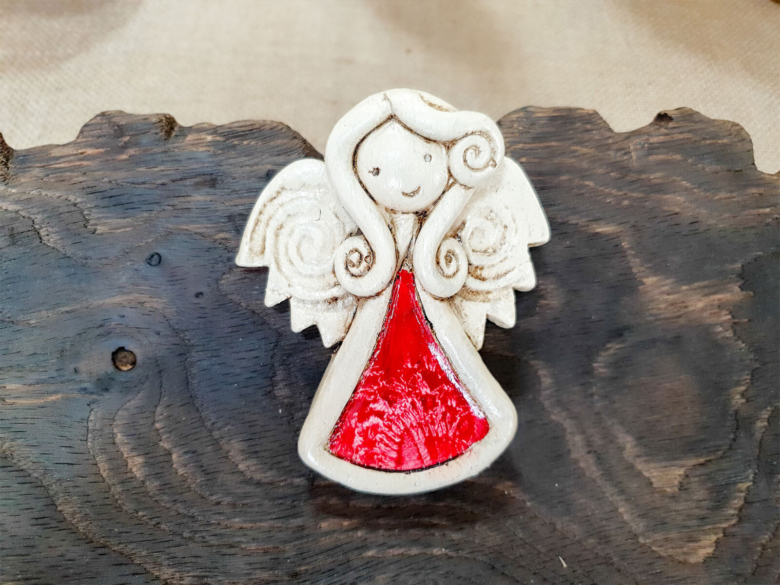 Aniołek to ręcznie wykonana figurka, Liolinka jest śliczną dziewczynką. Całym sercem kocha swoją rodzinę. Jest troskliwa, martwi się o innych. Jest ubrana w czerwona sukienkę z z haftowanymi serduszkami. Ma delikatne skrzydełka. Kolor czerwony jest symbolem miłości i namiętności. Figurka idealnie nadaje się na prezent dla ukochanej osoby z okazji walentynek.