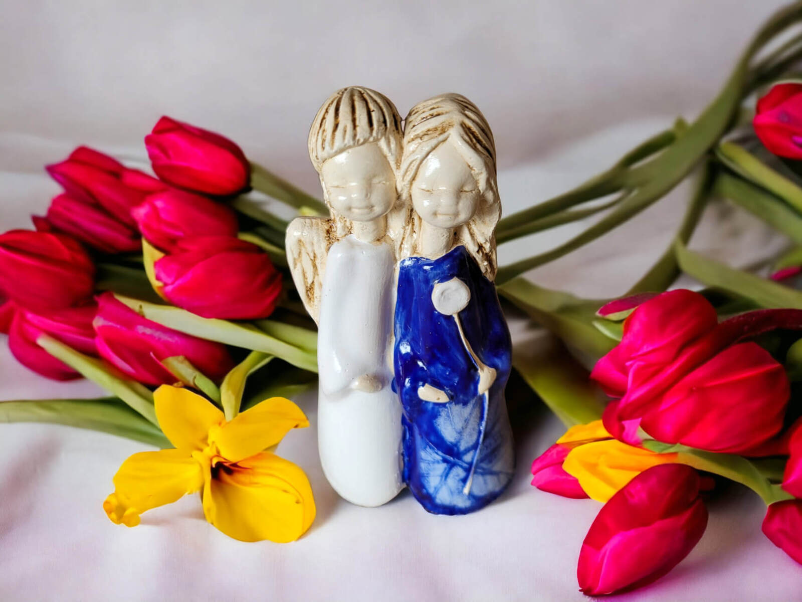Jeśli anioł ma zostać wręczony jako prezent możemy go również elegancko zapakować w przeźroczysty celofan wiązany ekologicznym sznurkiem. Dzięki temu anioł będzie wyglądał jeszcze bardziej dostojnie i będzie gotowy do wręczenia. Dla wygody możesz również od razu zakupić papierową białą torbę prezentową.