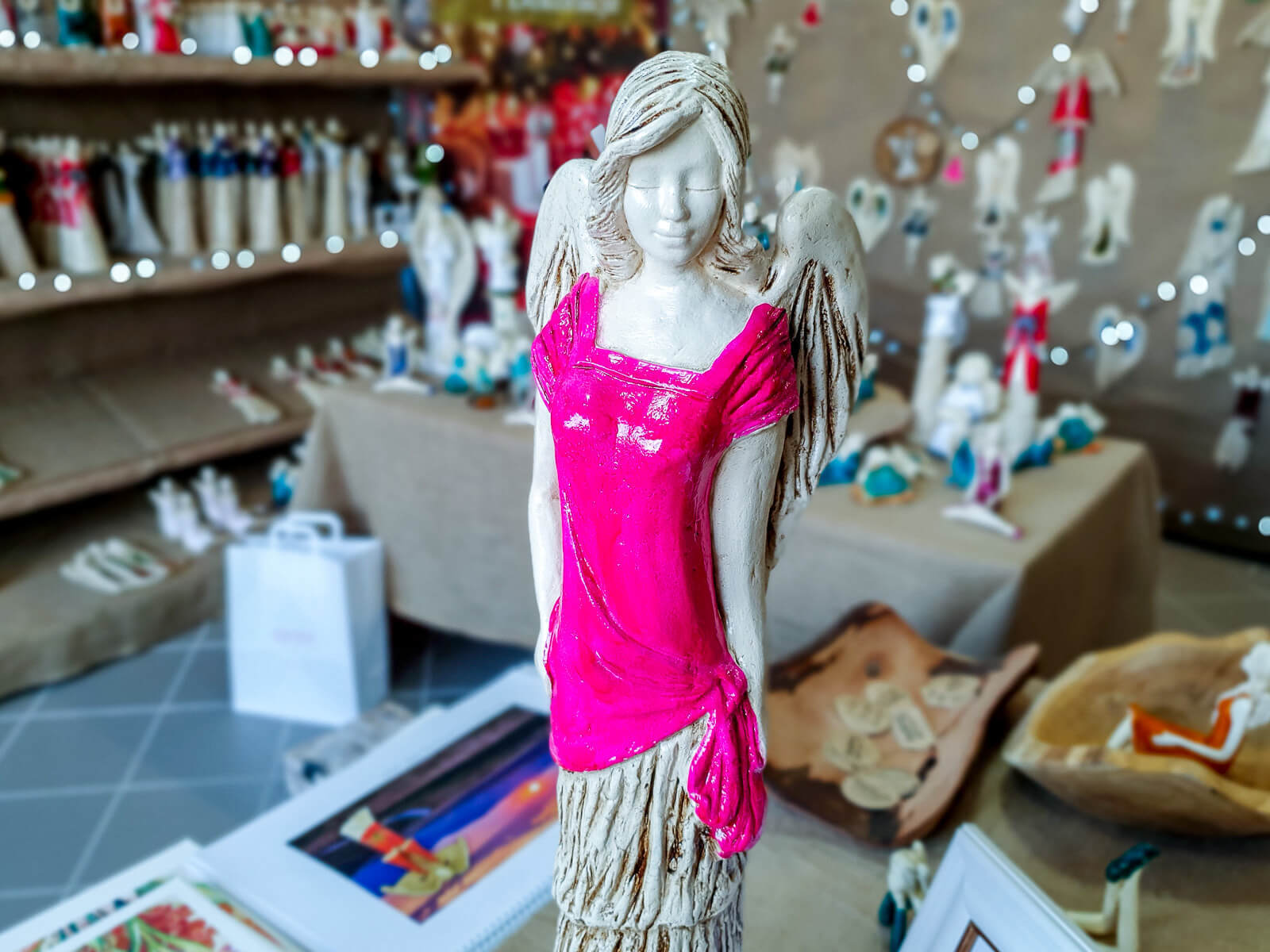 Największy i najbardziej okazały z aniołów. Victoria w różowej sukni to prawdziwe uosobienie piękna, siły i dostojności. Wysoka na 62 cm sprawia, że jest widoczna nawet w dużym salonie, skutecznie odciągając uwagę od innych dekoracji. Trudno odgadnąć co znajduje się w jej wnętrzu. Jej imię pochodzi z języka łacińskiego i oznacza zwycięstwo. Jest ona imienniczką rzymskiej bogini zwycięstwa i chwały. Z każdej sytuacji wychodzi obronną ręką. Jest pracowita i uparta w dążeniu do postawionych sobie celów. Mocno stąpa po ziemi. Anioł pięknie pozuje eksponując swoją długą, różową suknię. Budzi zachwyt wśród wszystkich gapiów. Świetnie sprawdzi się jako prezent na rocznice ślubu dla kobiet. Może efektywnie zdobić każde wnętrze.