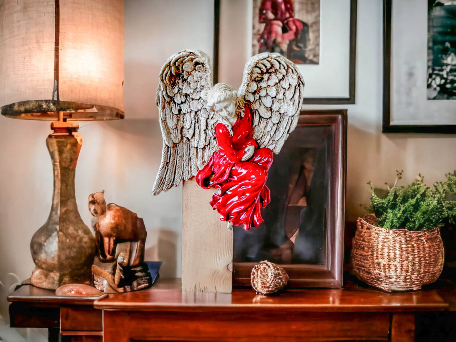 Anioł Pokory to figurka gipsowa do powieszenia na futrynie drzwi, krawędzi mebla lub innym miejscu i kanciastych brzegach. Anioła do powierzchni przymocowuje się na taśmie dwustronnej. Wersja do przymocowania z prawej strony - prawy brzeg.