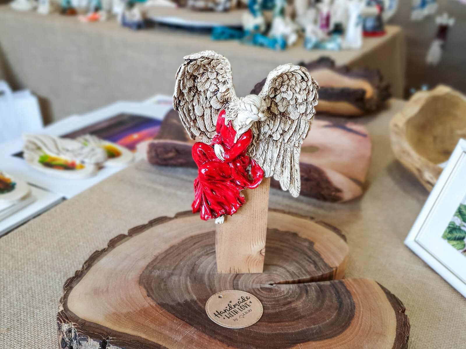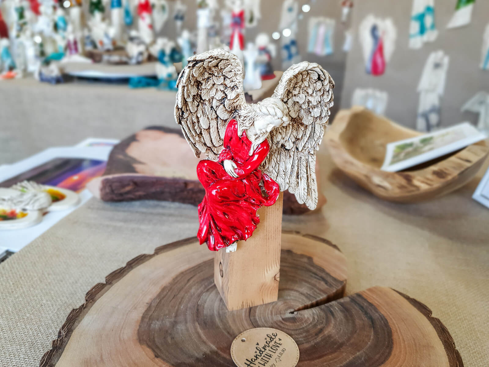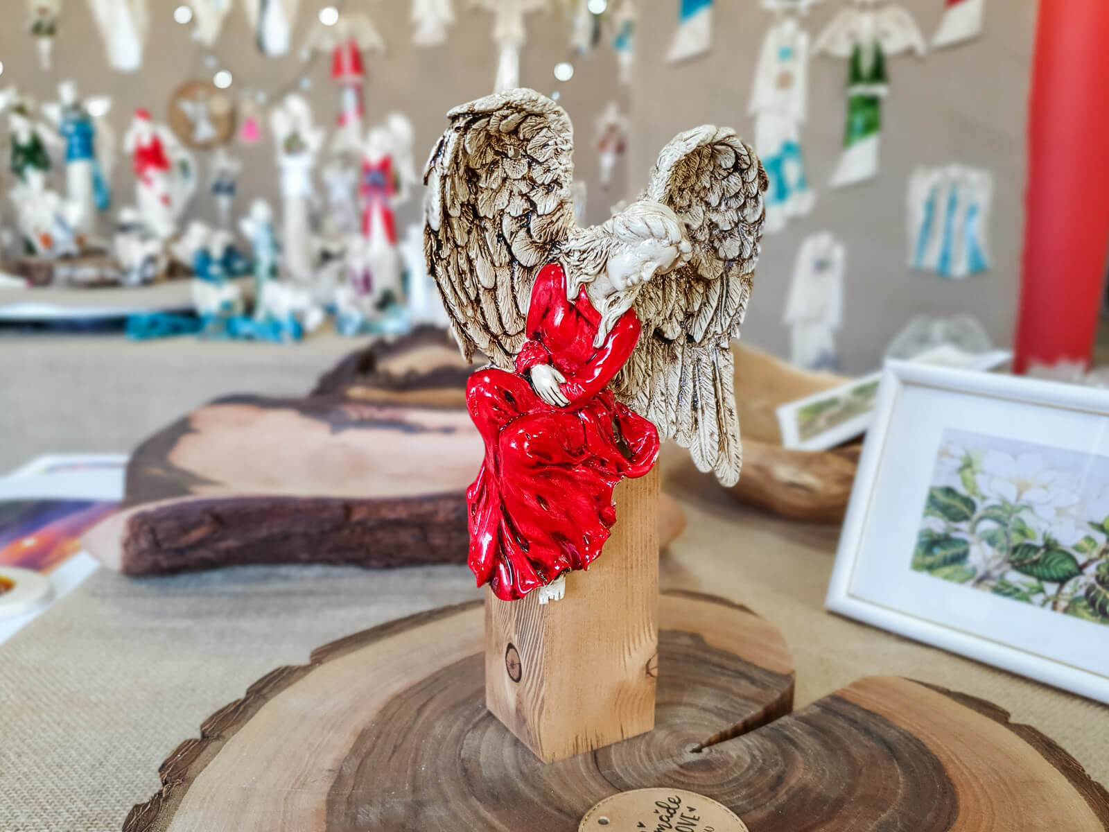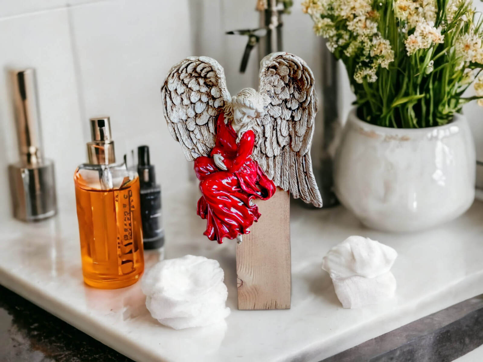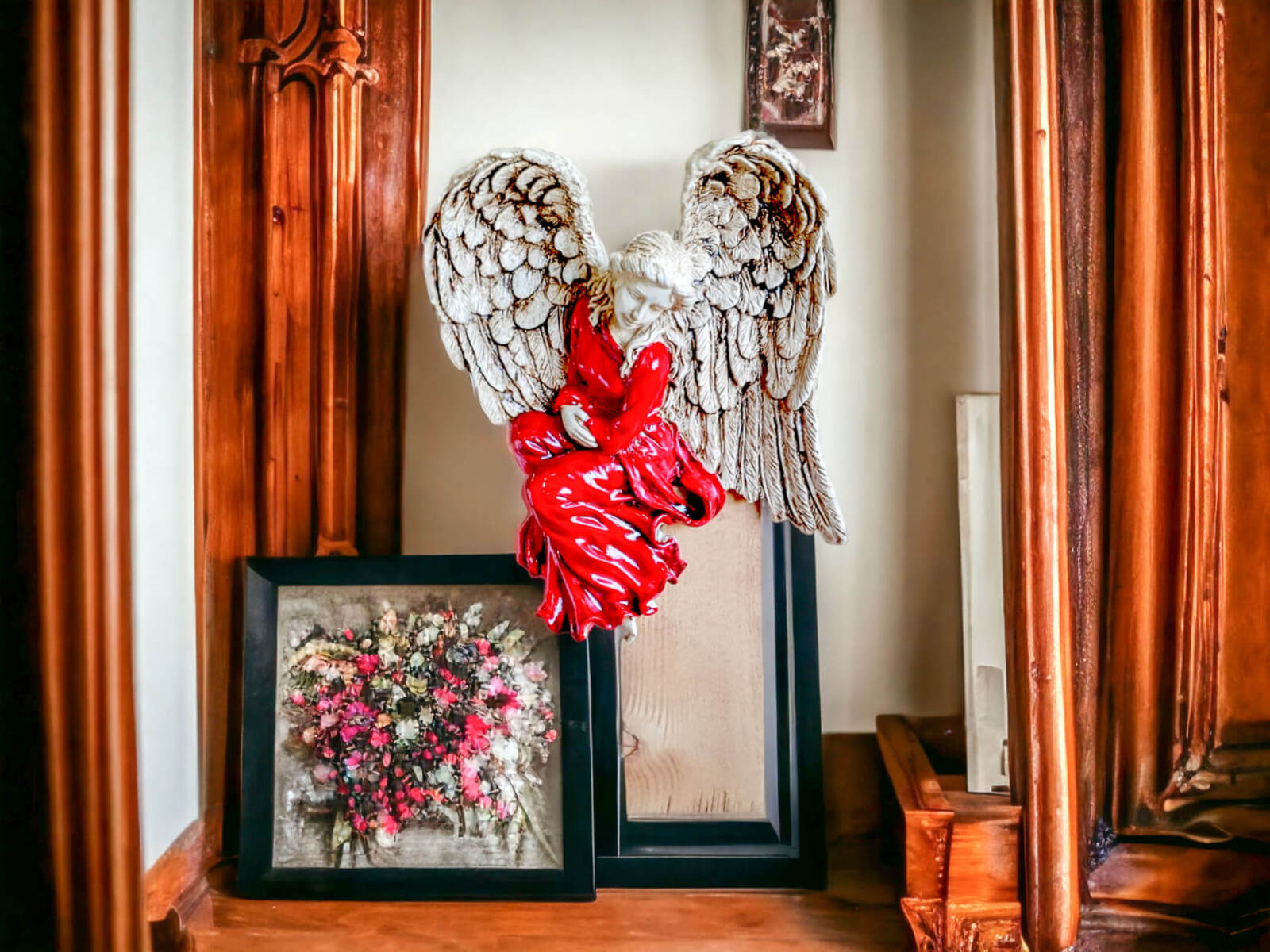 Anioł Pokory to figurka gipsowa do powieszenia na futrynie drzwi, krawędzi mebla lub innym miejscu i kanciastych brzegach. Anioła do powierzchni przymocowuje się na taśmie dwustronnej. Wersja do przymocowania z lewej strony - lewy brzeg, lewa krawędź.