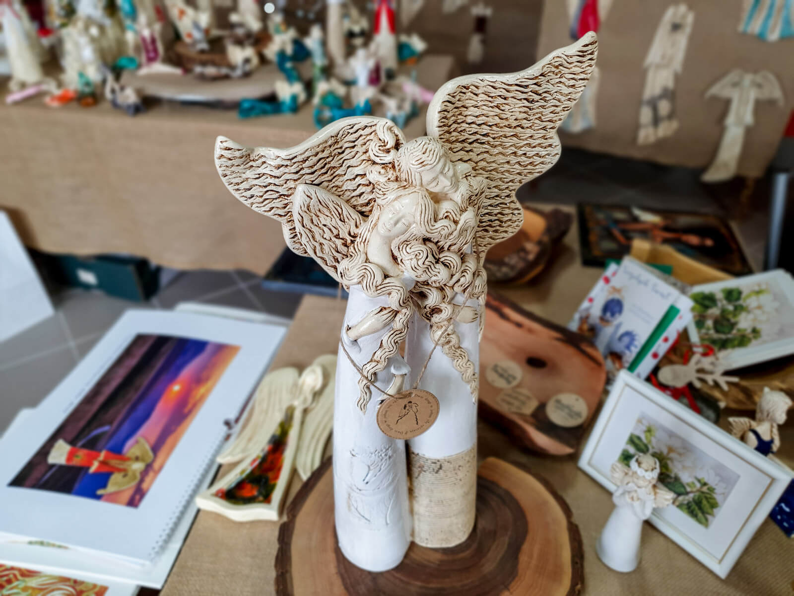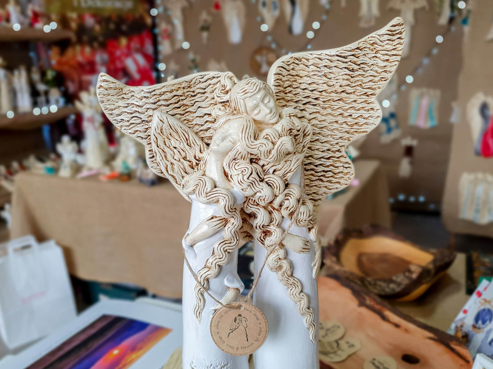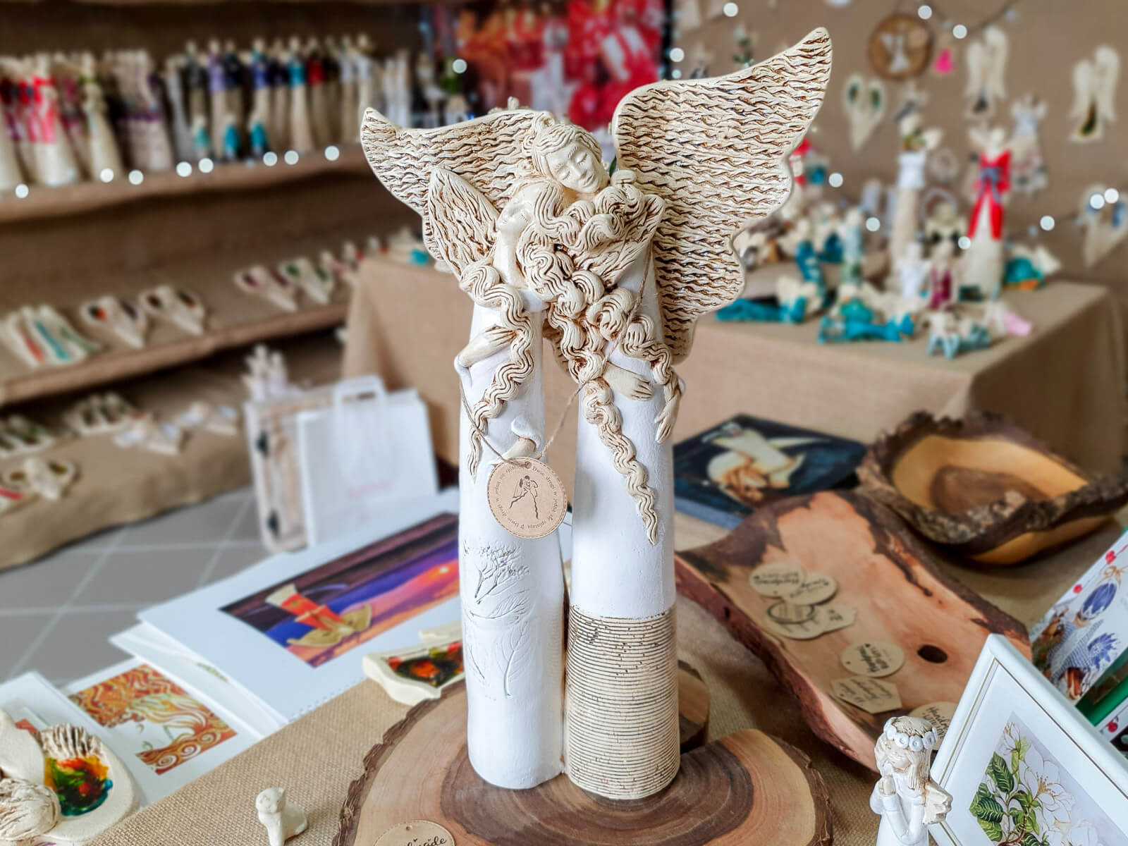 Jeśli anioł ma zostać wręczony jako prezent możemy go również elegancko zapakować w przeźroczysty celofan wiązany ekologicznym sznurkiem. Dzięki temu anioł będzie wyglądał jeszcze bardziej dostojnie i będzie gotowy do wręczenia. Dla wygody możesz również od razu zakupić papierową białą torbę prezentową.