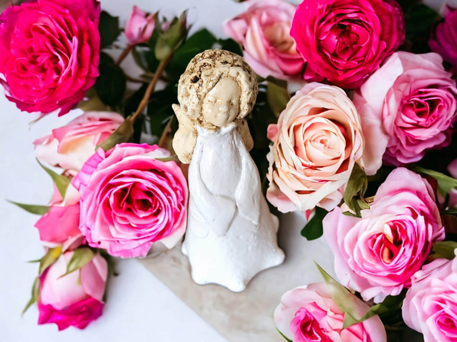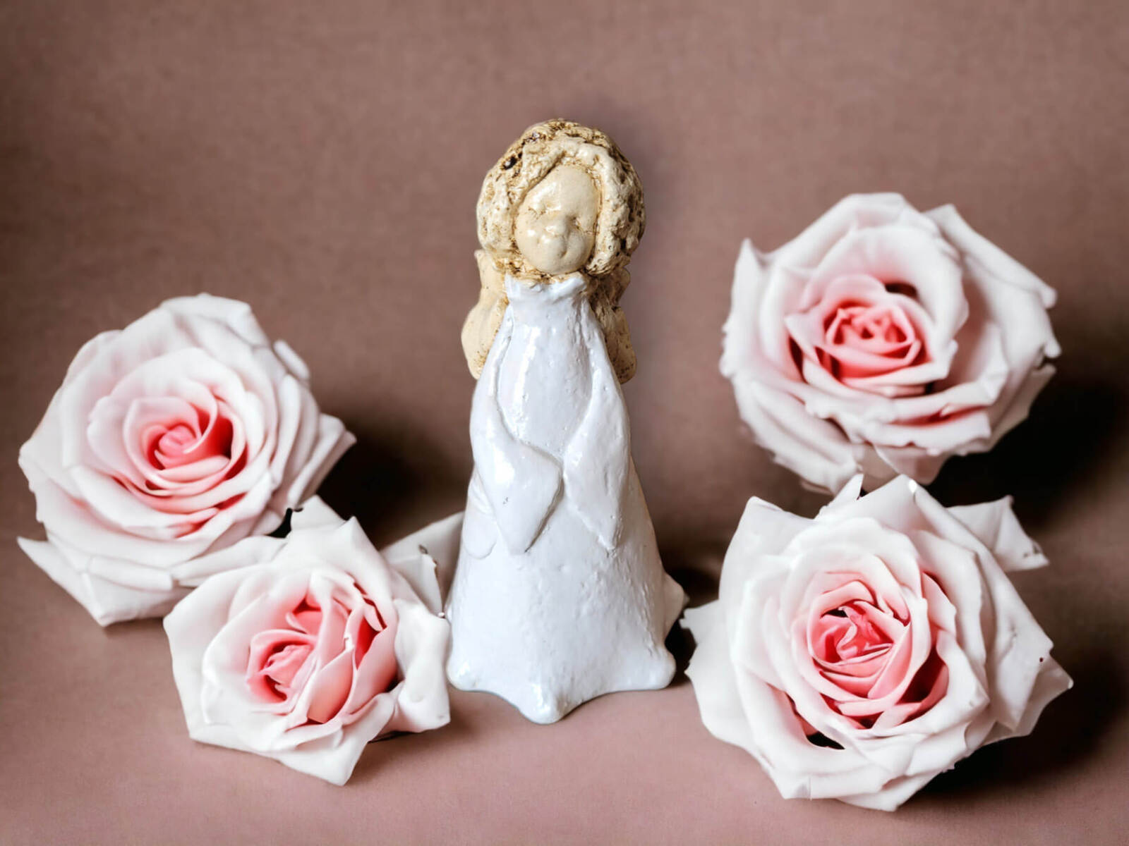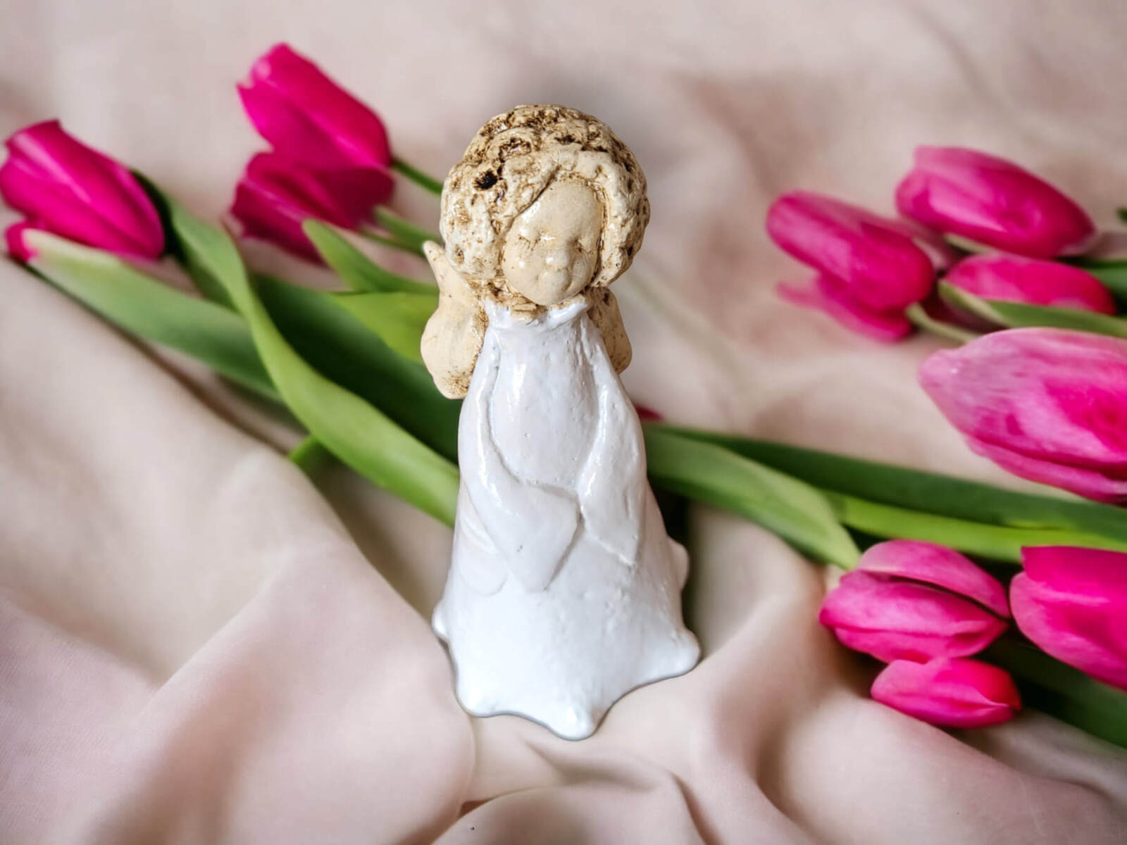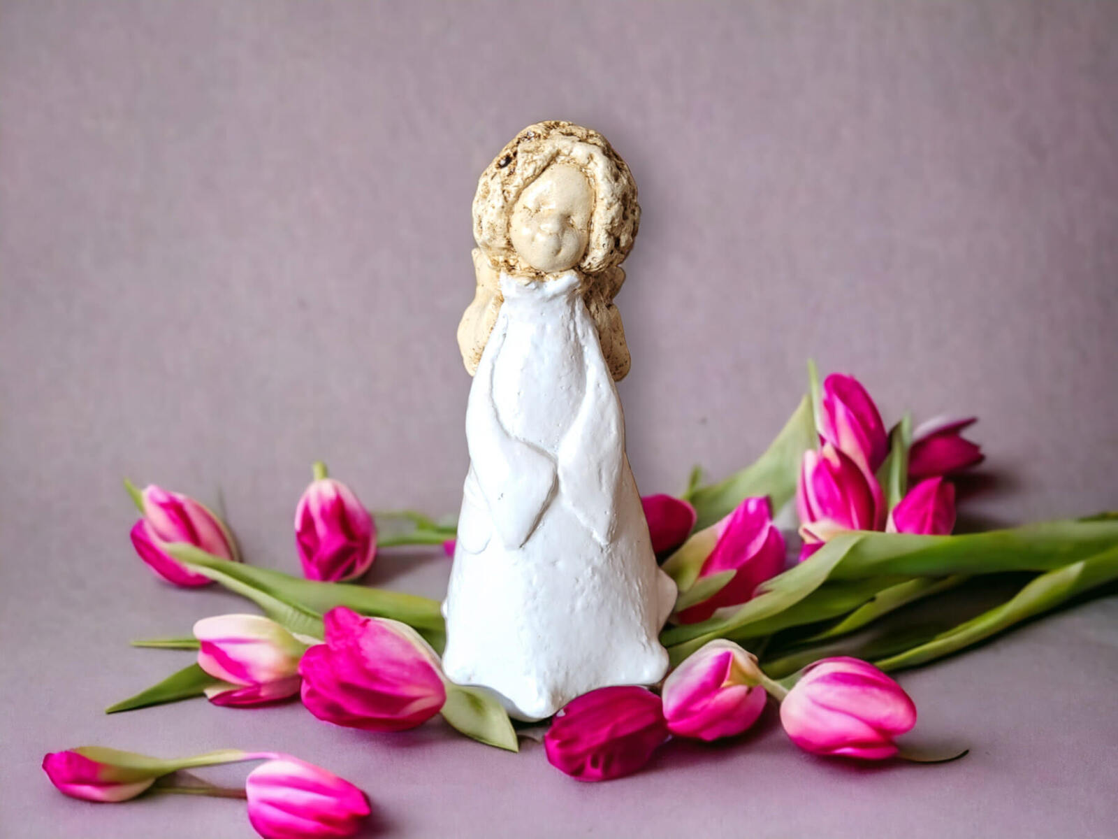 Słodka figurka aniołka Maryann w kolorze białym. Aniołek idealny na prezent na I Komunię.