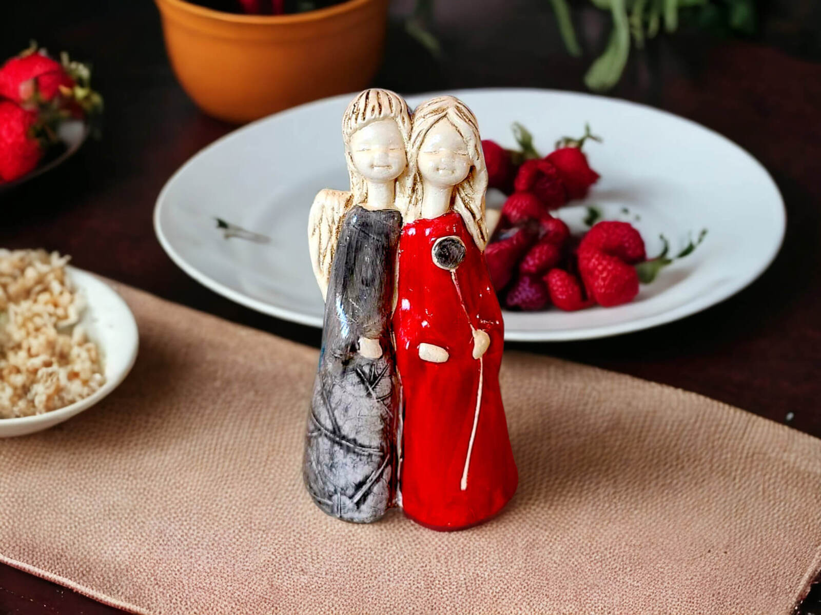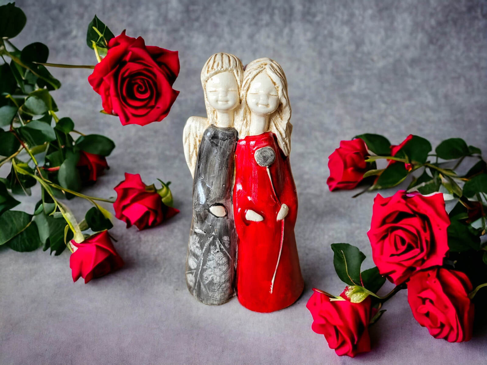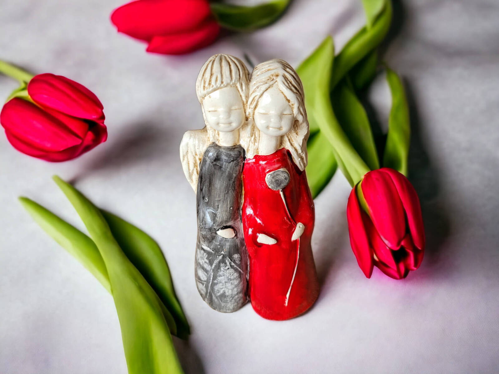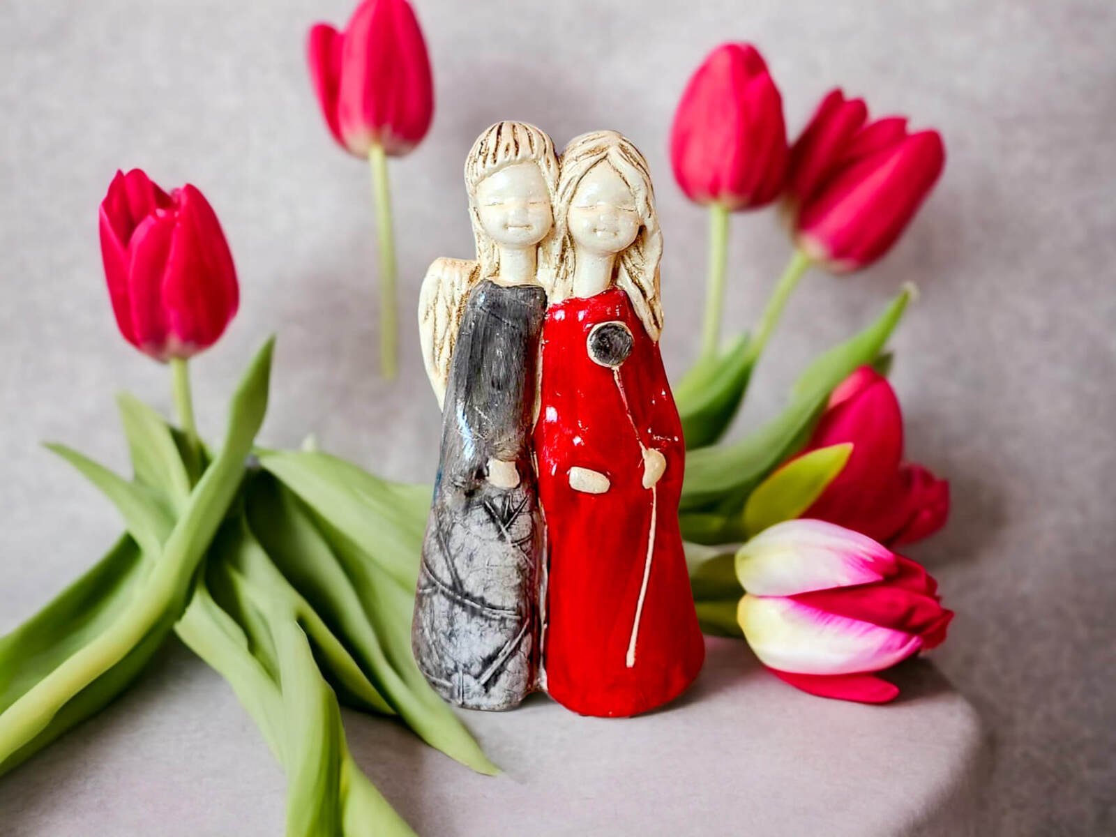 Aniołki Apple i Ella w kolorze czerwono szarym.