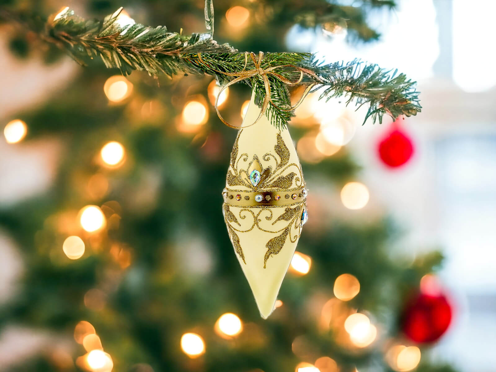 Ciepłe waniliowe tło bombek stanowi idealne podkład dla bogatych, złotych zdobień, które zdobią sople na powierzchni każdej z nich. Złote elementy, precyzyjnie ręcznie nanoszone, nadają bombkom wyjątkowego blasku, tworząc efektowny zestaw, który z pewnością przyciągnie uwagę i stworzy wyjątkowy klimat świąt Bożego Narodzenia.