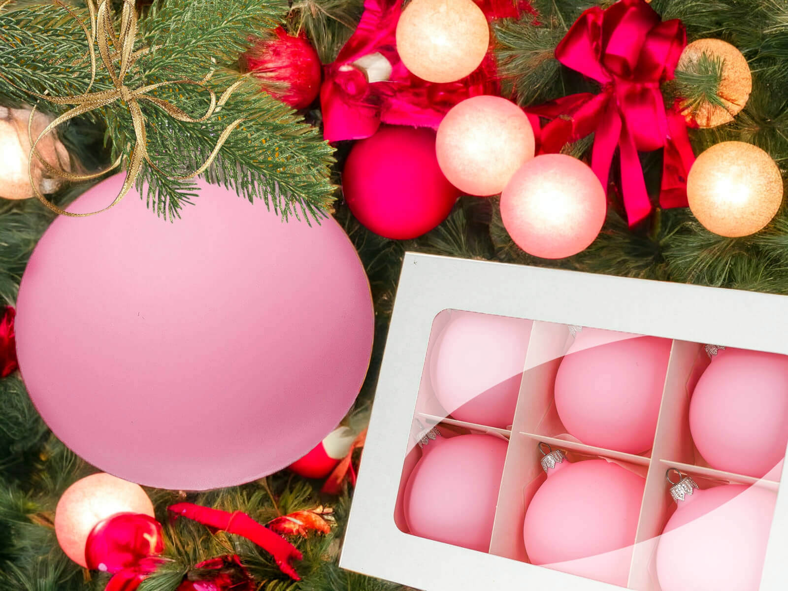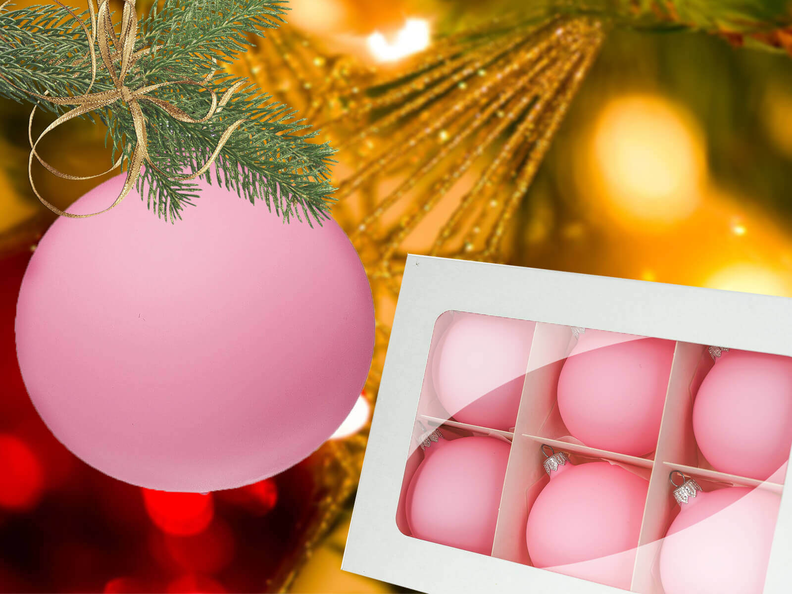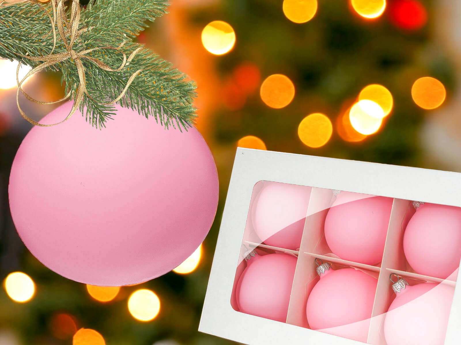 Bombka choinkowa szklana - kredowy róż. W komplecie - 6 sztuk. Pakowanie w biały kartonik z okienkiem.