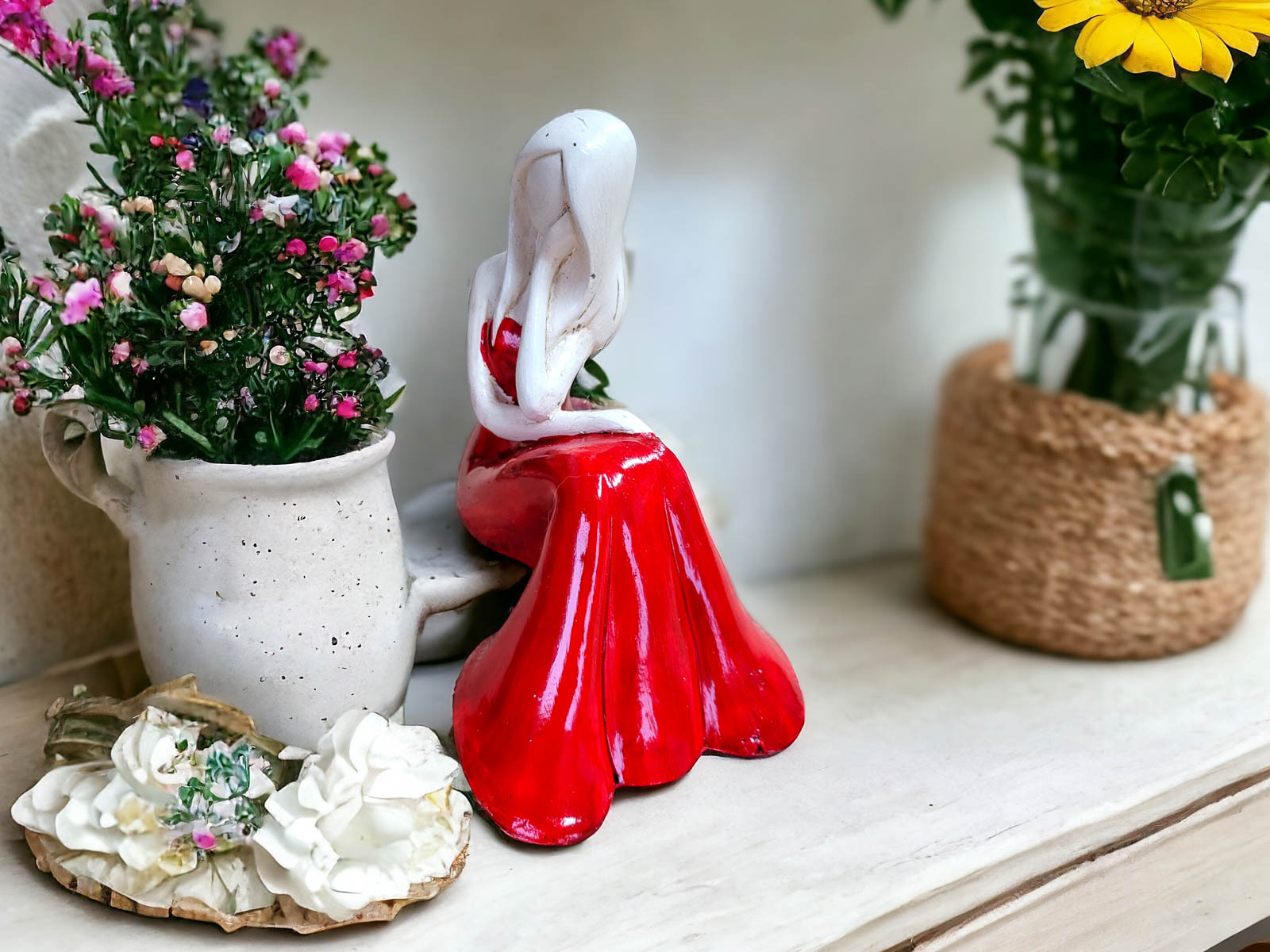 Jeśli anioł ma zostać wręczony jako prezent możemy go również elegancko zapakować w przeźroczysty celofan wiązany ekologicznym sznurkiem. Dzięki temu anioł będzie wyglądał jeszcze bardziej dostojnie i będzie gotowy do wręczenia. Dla wygody możesz również od razu zakupić papierową białą torbę prezentową.