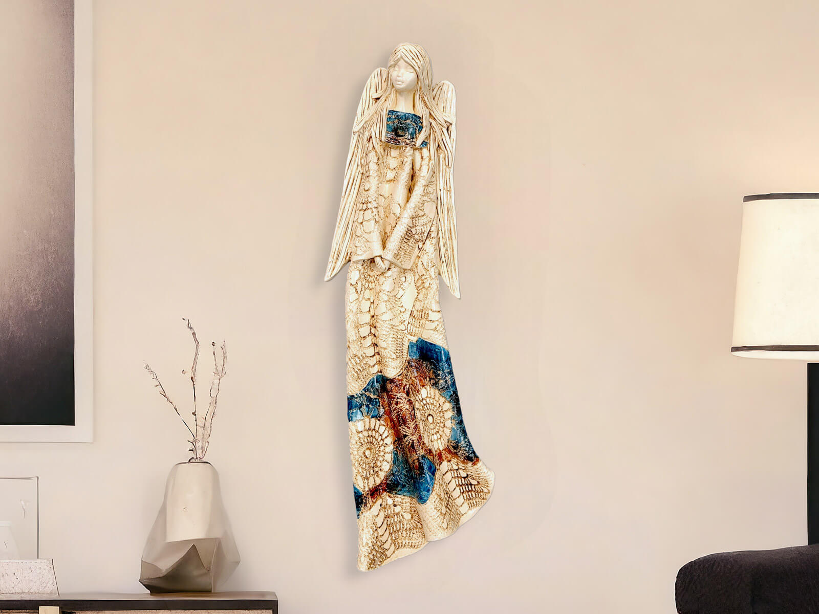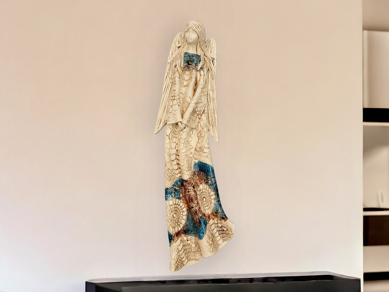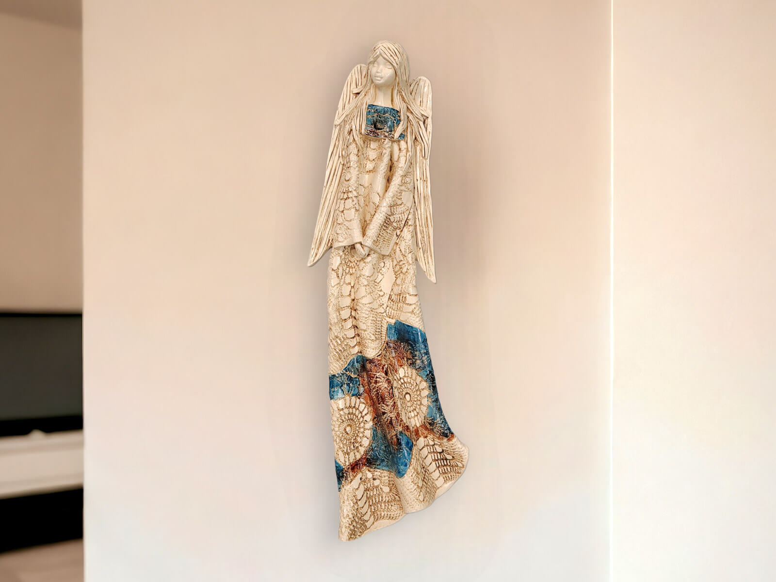 Przepiękny anioł, wspaniale prezentuje się na scianie. O takim marzyłam. Wrócę do Was zapewne nie raz bo są przeurocze na prezent. A zabezpieczenie w paczce to po prostu mistrzostwo. Dziękuję 😊