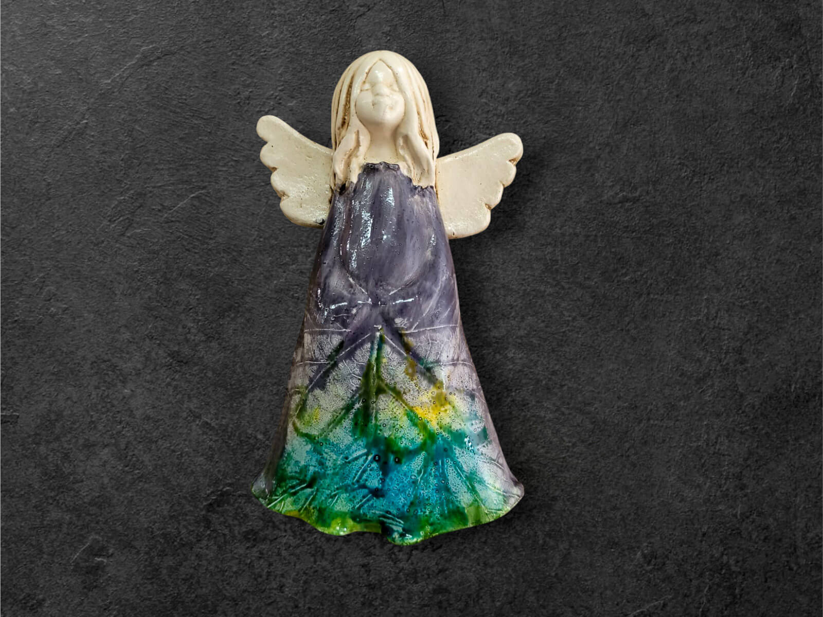 Anioł Monica z kolekcji Art to ręcznie wykonana figurka do zawieszenia na ścianę. Monica to śliczna i młoda dziewczynka pełna ciepła i czułości. Anieliczka jest ubrana w zwiewną, sukienkę z wzorami. Figurka idealnie sprawdzi się jako prezent urodzinowy dla dziewczynki. Świetnie wkomponuje się w klasyczne jaki i nowoczesne wnętrze.