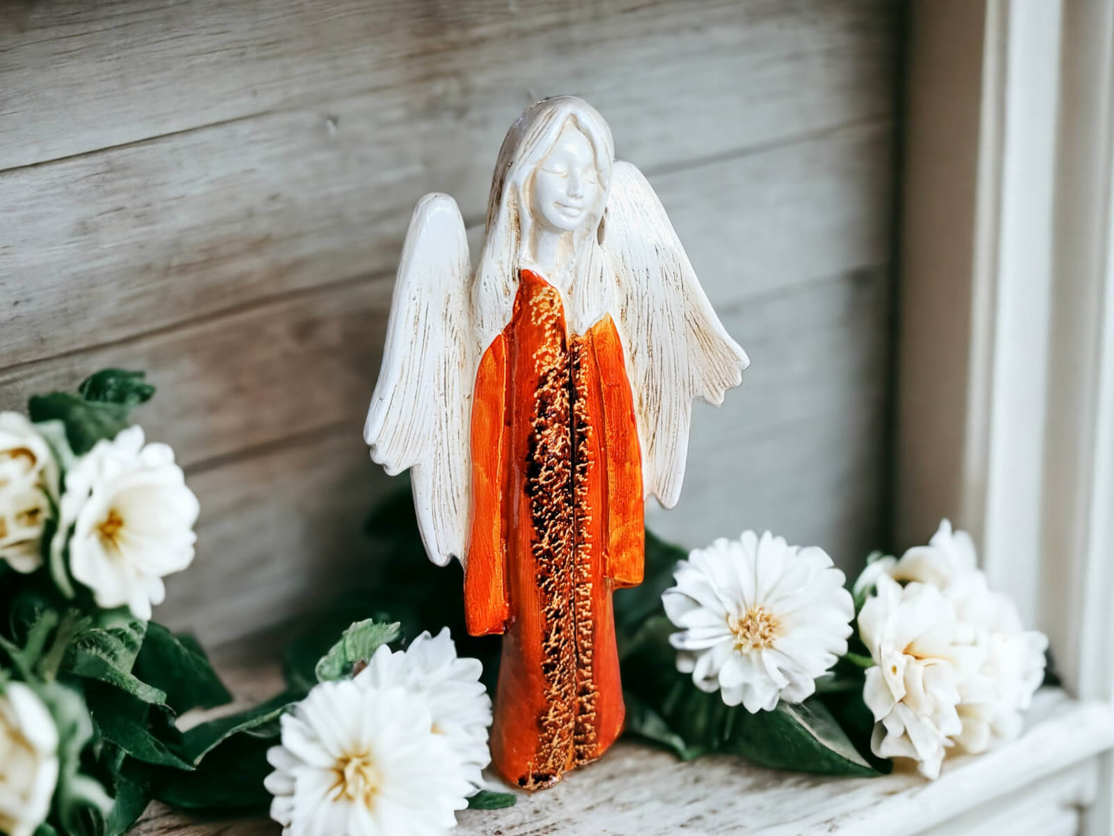 Jeśli anioł ma zostać wręczony jako prezent możemy go również elegancko zapakować w przeźroczysty celofan wiązany ekologicznym sznurkiem. Dzięki temu anioł będzie wyglądał jeszcze bardziej dostojnie i będzie gotowy do wręczenia. Dla wygody możesz również od razu zakupić papierową białą torbę prezentową.