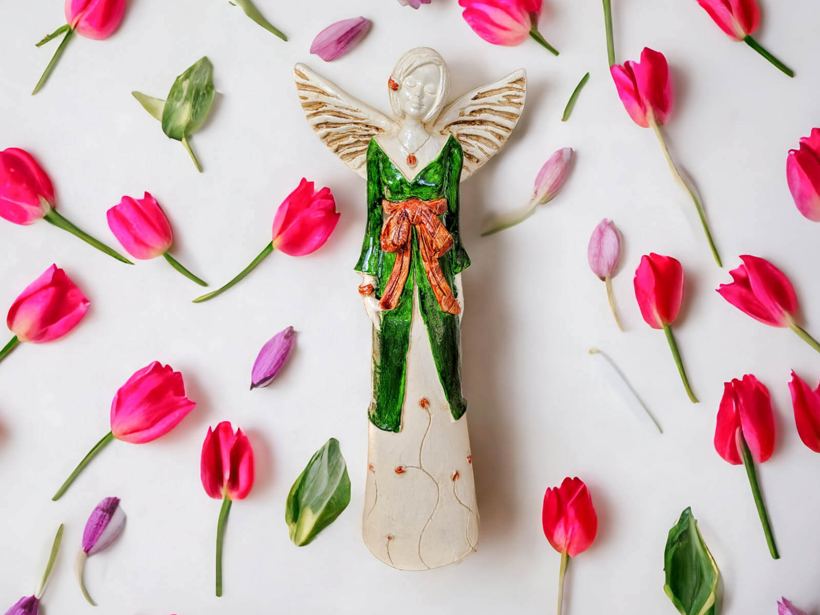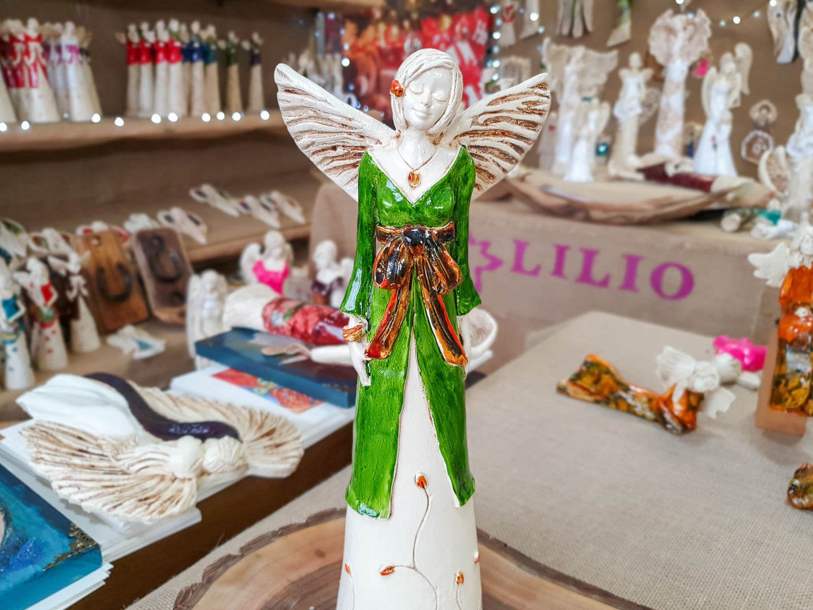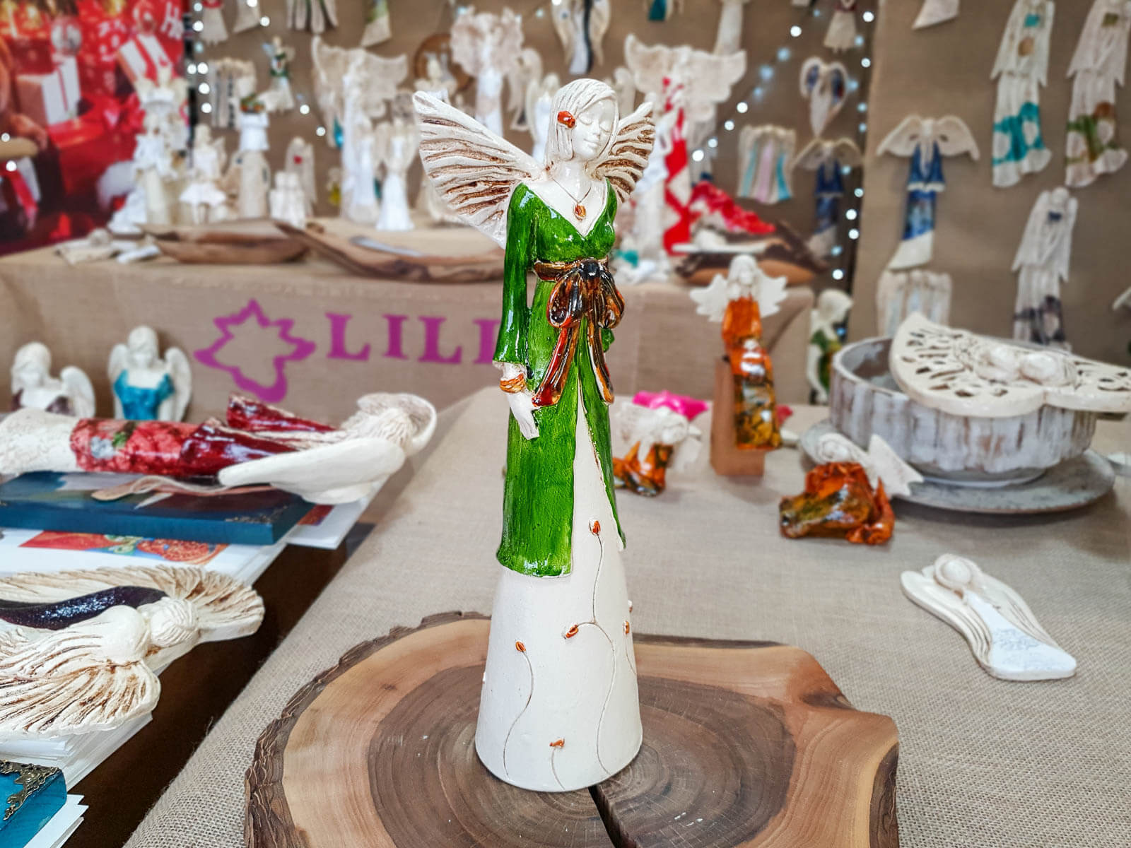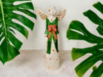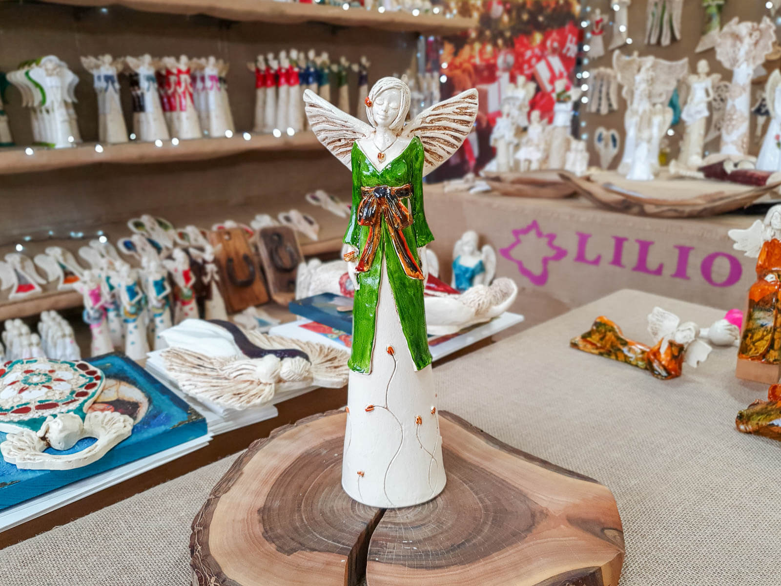 Anioł Lily w zielonej sukni. Lily kocha przyrodę. Uwielbia spędzać czas pośród kwiatów i drzew, ciesząc się nieskazitelnie czystym powietrzem i wsłuchując w śpiew ptaków. Może właśnie dlatego, że utożsamia się z naturą, po jej sukni pną się kwiaty, a pióra jej skrzydeł lekko rozwiewa wiatr. Na szyi ma talizman, więc figurka może stać się Twoim talizmanem - Lily będzie dbała o Twój wewnętrzny spokój i harmonię ducha.