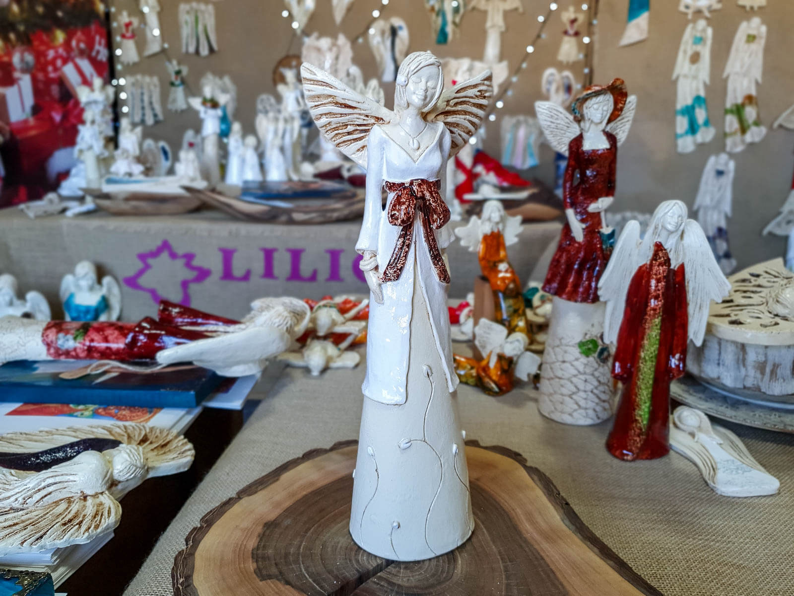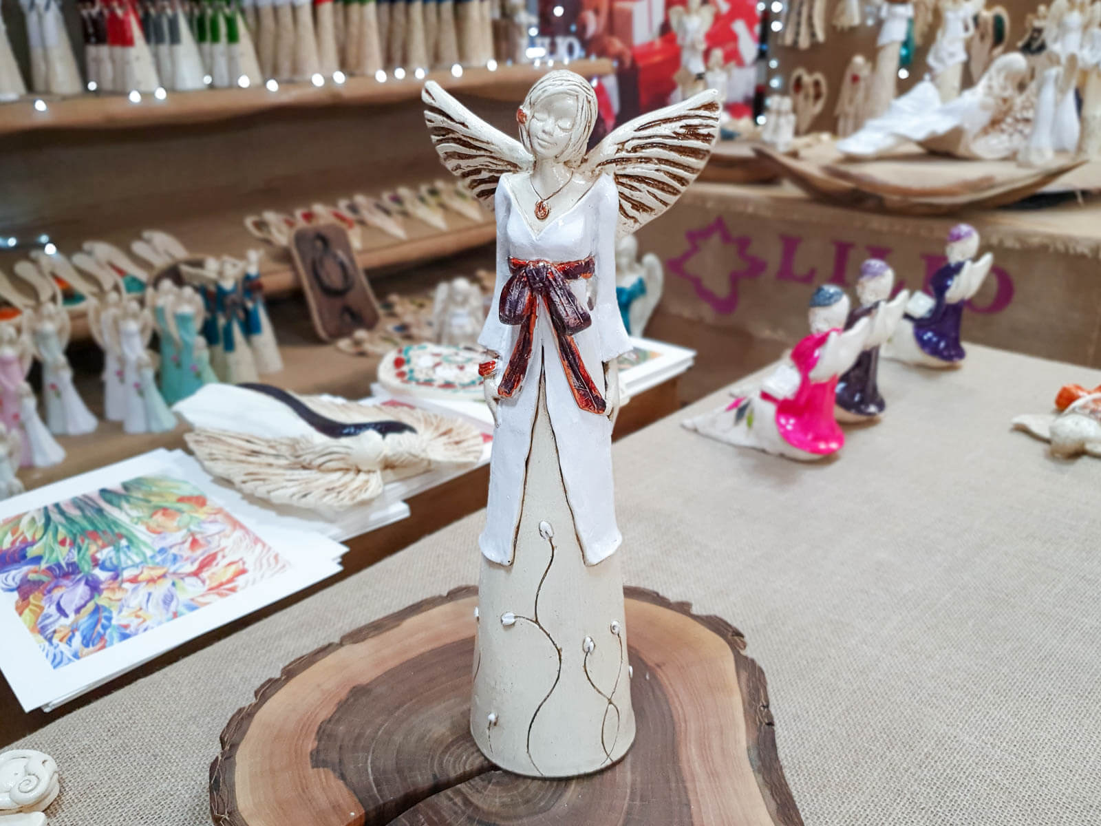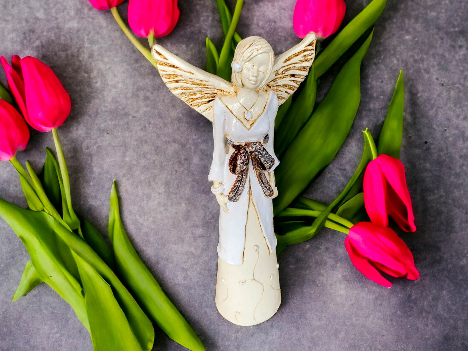 Anioł Lily z brązową szarfą jest przepiękną postacią o uspokajającym i kojącym wyrazie twarzy. Jej delikatne skrzydła dopełniają jej idylliczny charakter. Ma na sobie długą białą suknię, po której pną się kwiaty. Figurka jest bardzo uniwersalna. Sprawdzi się bowiem jako prezent z wielu okazji, a przy tym będzie pięknym akcentem w każdym mieszkaniu.