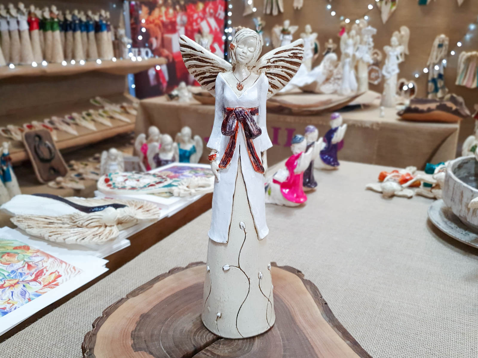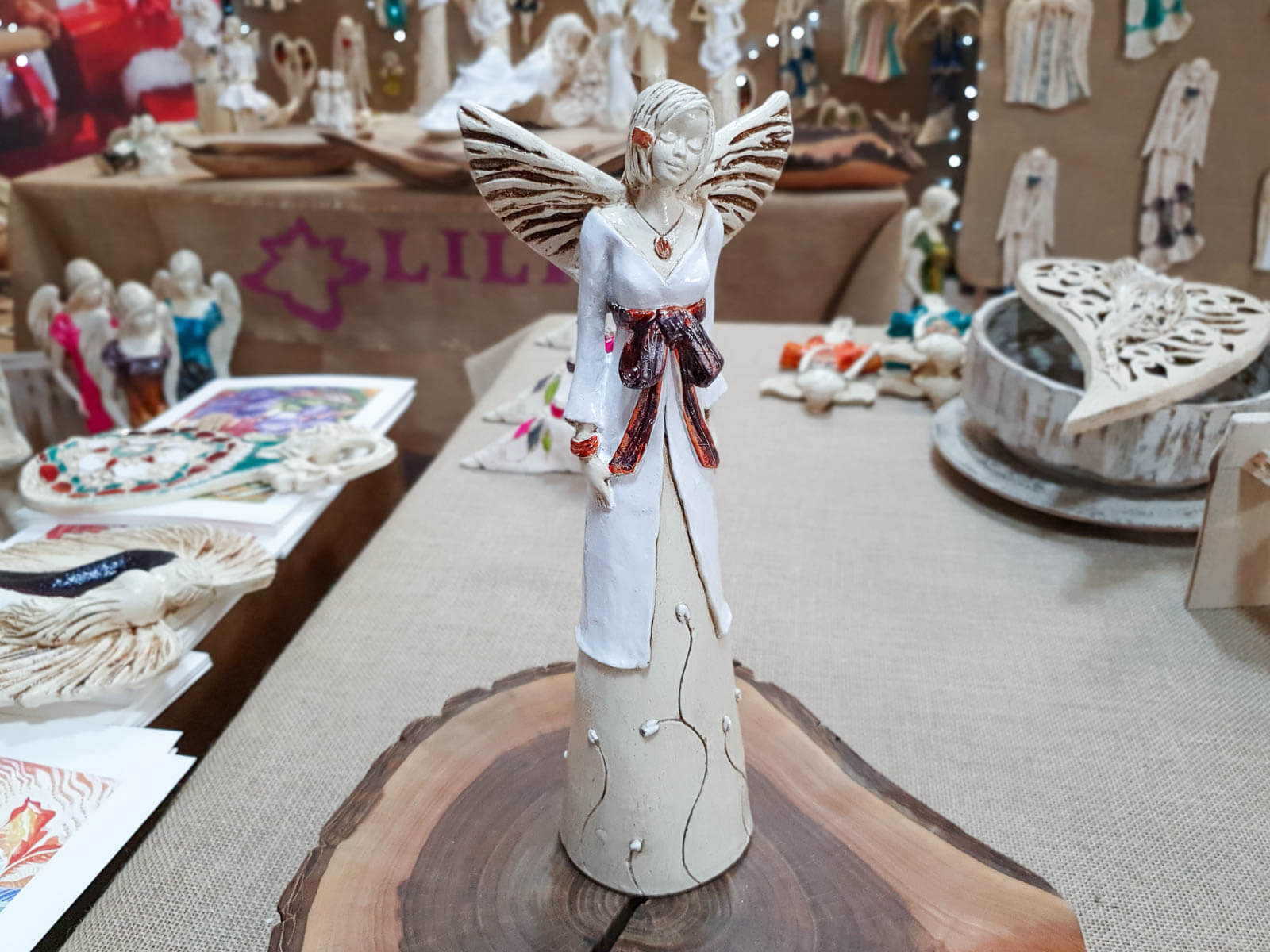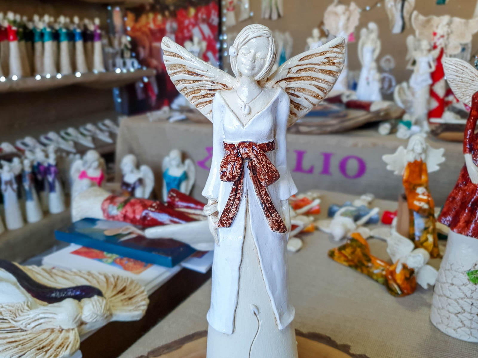 Anioł Lily z brązową szarfą jest przepiękną postacią o uspokajającym i kojącym wyrazie twarzy. Jej delikatne skrzydła dopełniają jej idylliczny charakter. Ma na sobie długą białą suknię, po której pną się kwiaty. Figurka jest bardzo uniwersalna. Sprawdzi się bowiem jako prezent z wielu okazji, a przy tym będzie pięknym akcentem w każdym mieszkaniu.