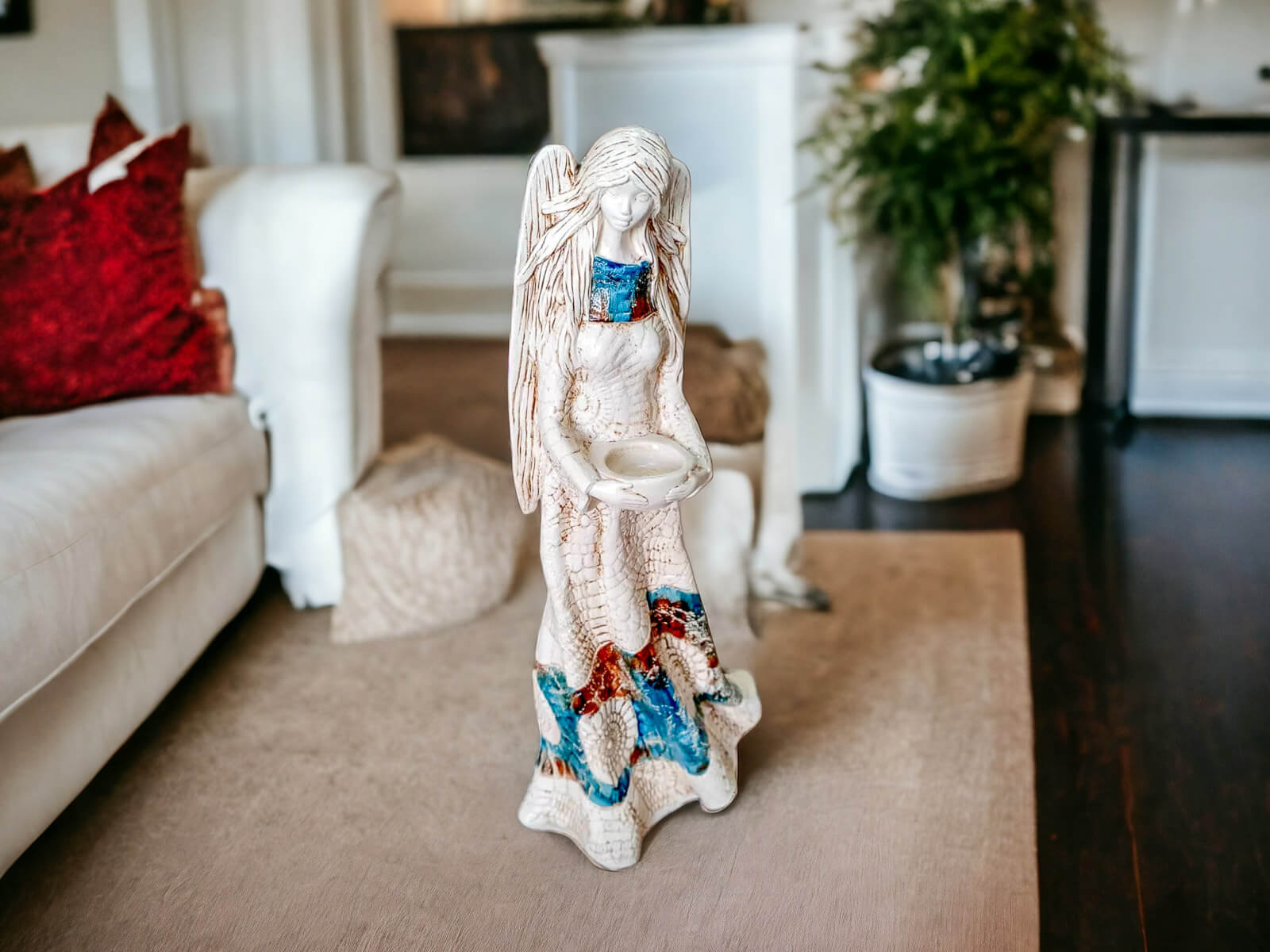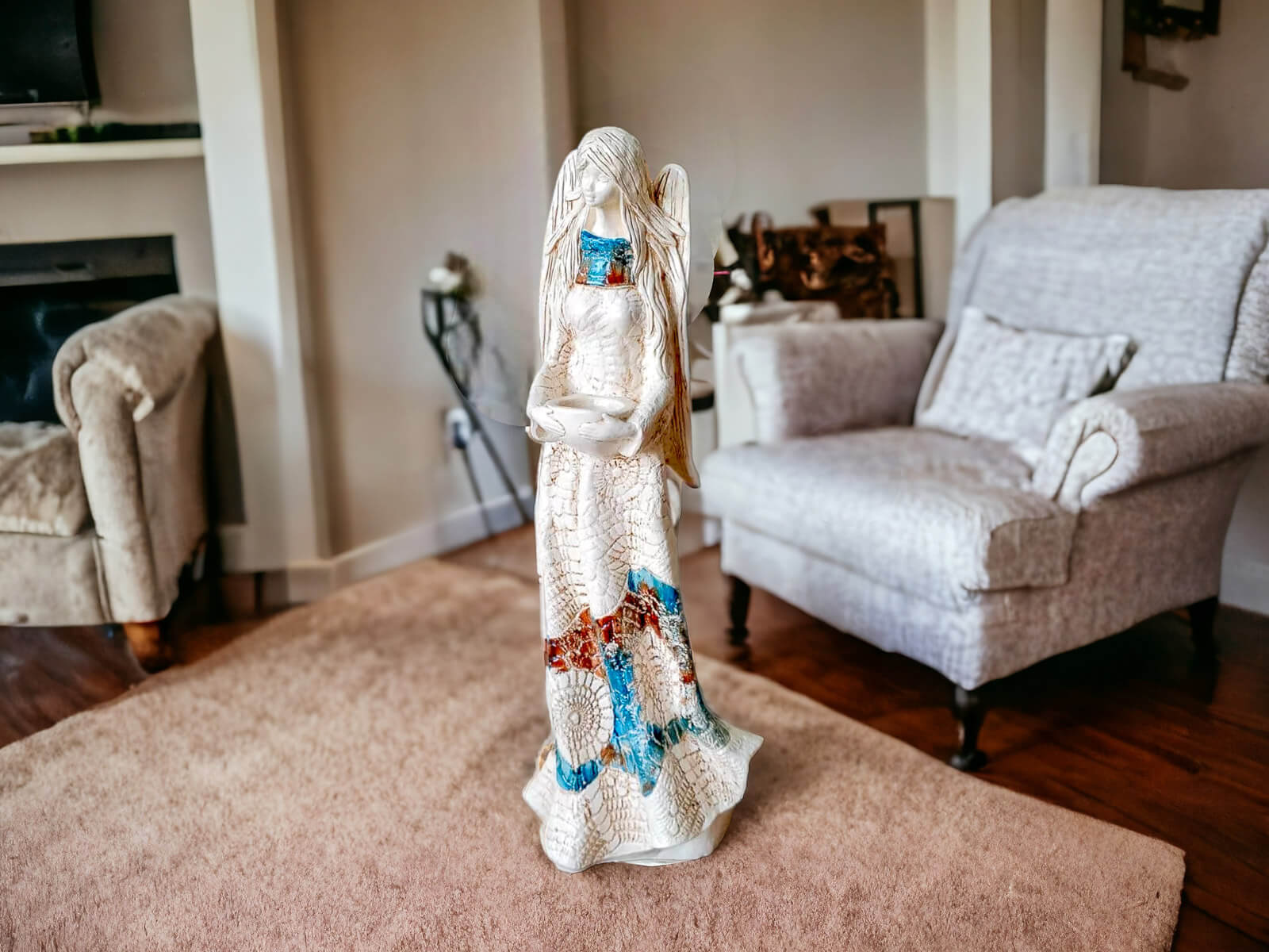 Anioł Genesis to ręcznie wykonana figurka w wersji stojącej w kolorze brązu i niebieskiego. Jego imię jest pochodzenia greckiego. Anioł jest pełen tajemnic. Cały swój czas poświęca sprawom społecznym. Potrafi każdemu udzielić pomocy i wsparcia. Troska o innych wypływa prosto z jej serca. Jest ubrany w zwiewną, beżową suknie z haftowanymi ornamentami. Z gracją eksponuje rozłożyste skrzydła. Figurka nadaje się na prezent na każdą okazję.