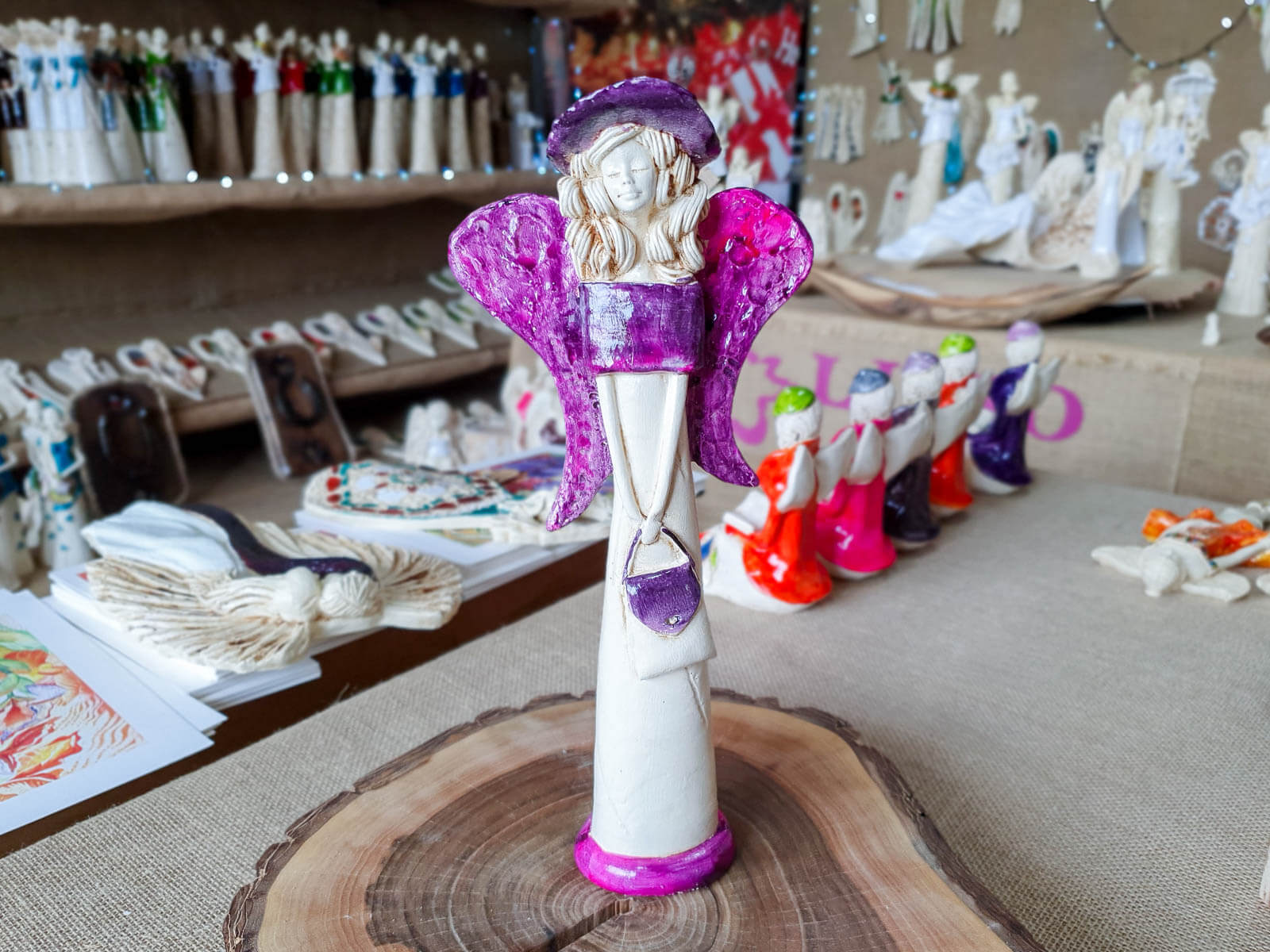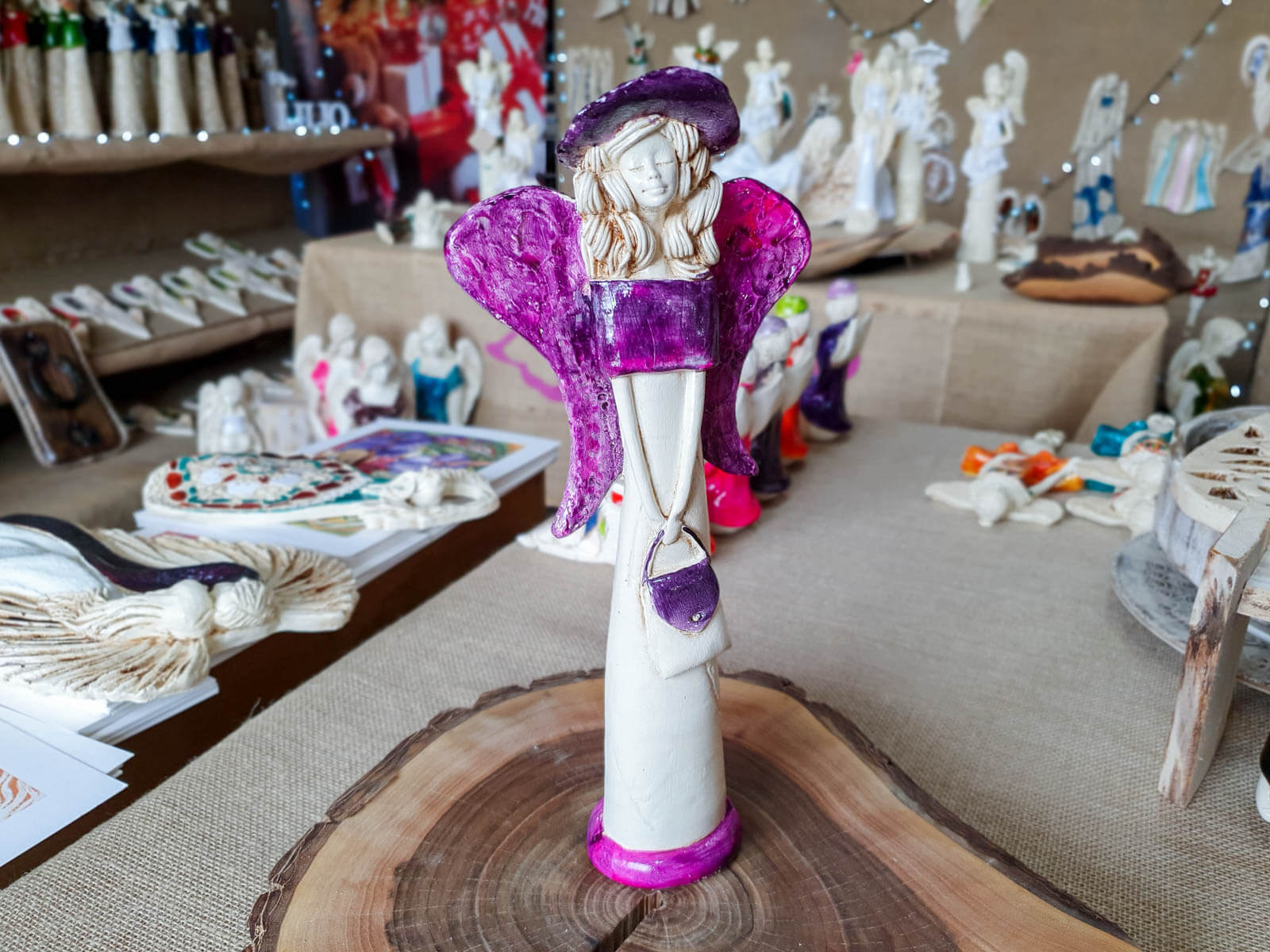 Anioł Coco w kolorze fuksji to ręcznie wykonana figurka gipsowa w kształcie filigranowej dziewczynki. Ma cudowne rozłożyste skrzydła. Jej beżowy ubiór podkreślają fuksjowe akcenty. Figurka Coco idealnie nadaje się na prezent na dziewczynki lub kobiety jak piękna ozdoba wnosząca do wnętrza dużo pozytywnej energii.