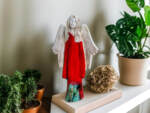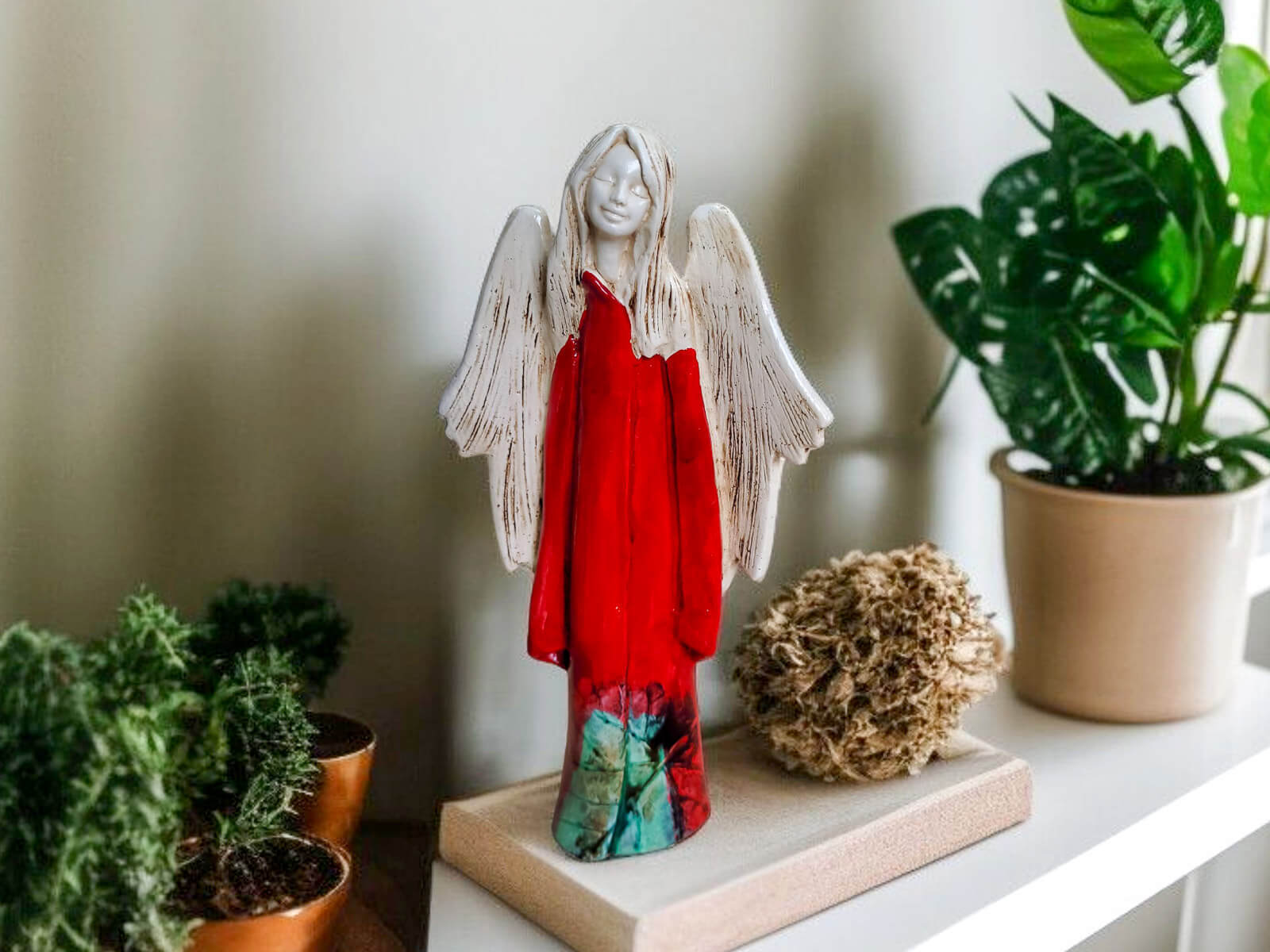 Jeśli anioł ma zostać wręczony jako prezent możemy go również elegancko zapakować w przeźroczysty celofan wiązany ekologicznym sznurkiem. Dzięki temu anioł będzie wyglądał jeszcze bardziej dostojnie i będzie gotowy do wręczenia. Dla wygody możesz również od razu zakupić papierową białą torbę prezentową.