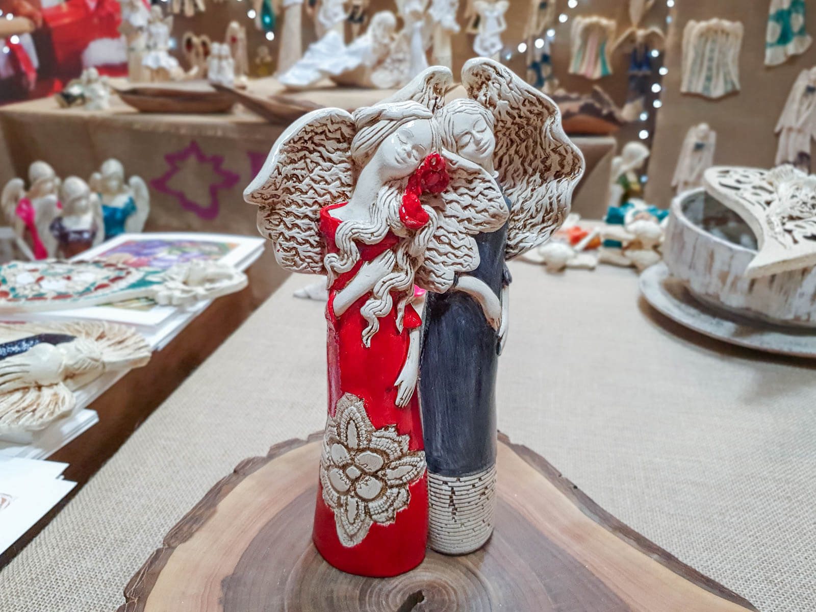 Czerwona Nora i szara Ellie to siostry, darzące się wzajemnie ogromną miłością. Kochają spędzać razem czas i nie mogłyby żyć oddzielnie. Dlatego właśnie figurka przedstawia je razem - wtulone w siebie celebrują chwile spędzane razem. Anioły ubrana są czerwoną i szarą suknię. Figura pięknie udekoruje salon, sypialnię czy przedpokój.