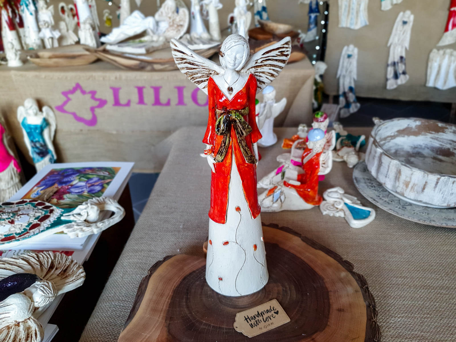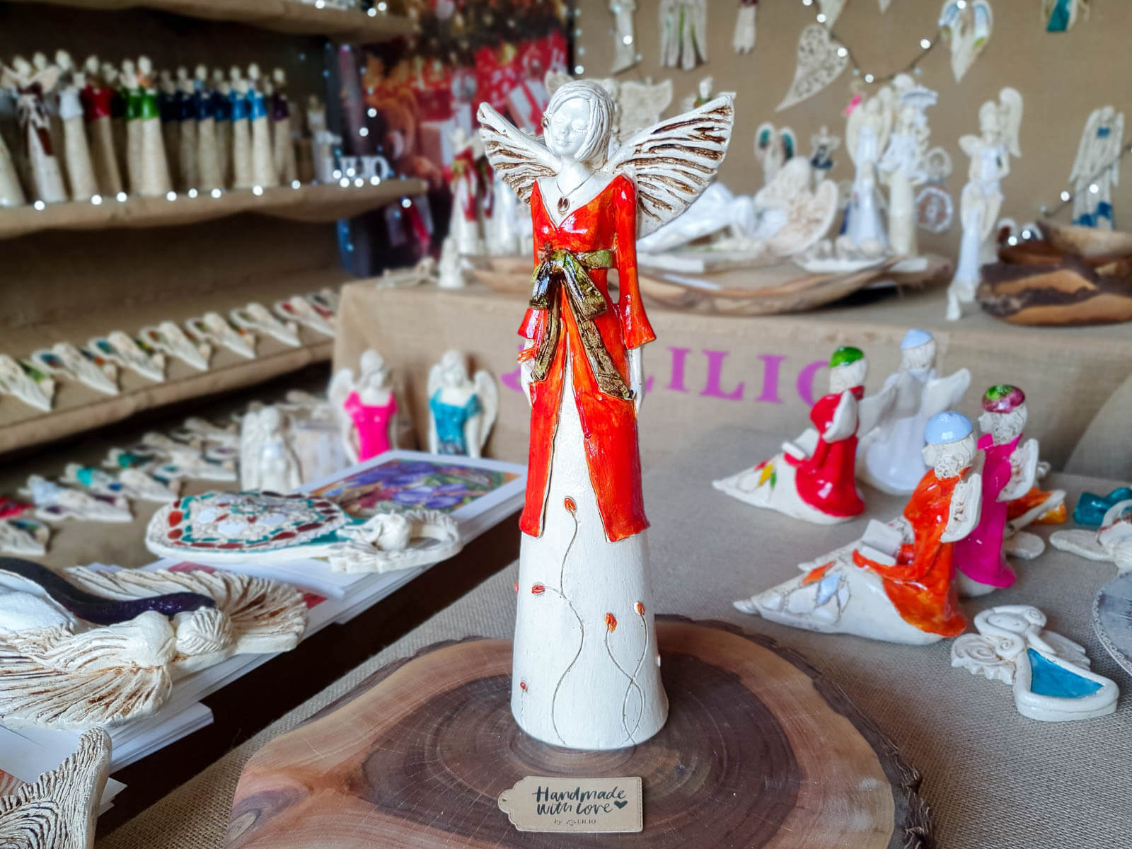 Anioł Lily w kolorze pomarańczowym to ręcznie wykonana figurka. Lily to niezwykła kobieta o czarującej urodzie. Jest czułą kobietą, która potrzebuje bliskości i ciepła drugiej osoby. Uczucia są u niej na pierwszym planie. Marzy o romantycznej miłości. Jest ubrana w pomarańczową sukienkę. Świetnie sprawdzi się jako prezent walentynkowy lub na rocznicę ślubu. Idealnie wpasuje się w każde wnętrze.