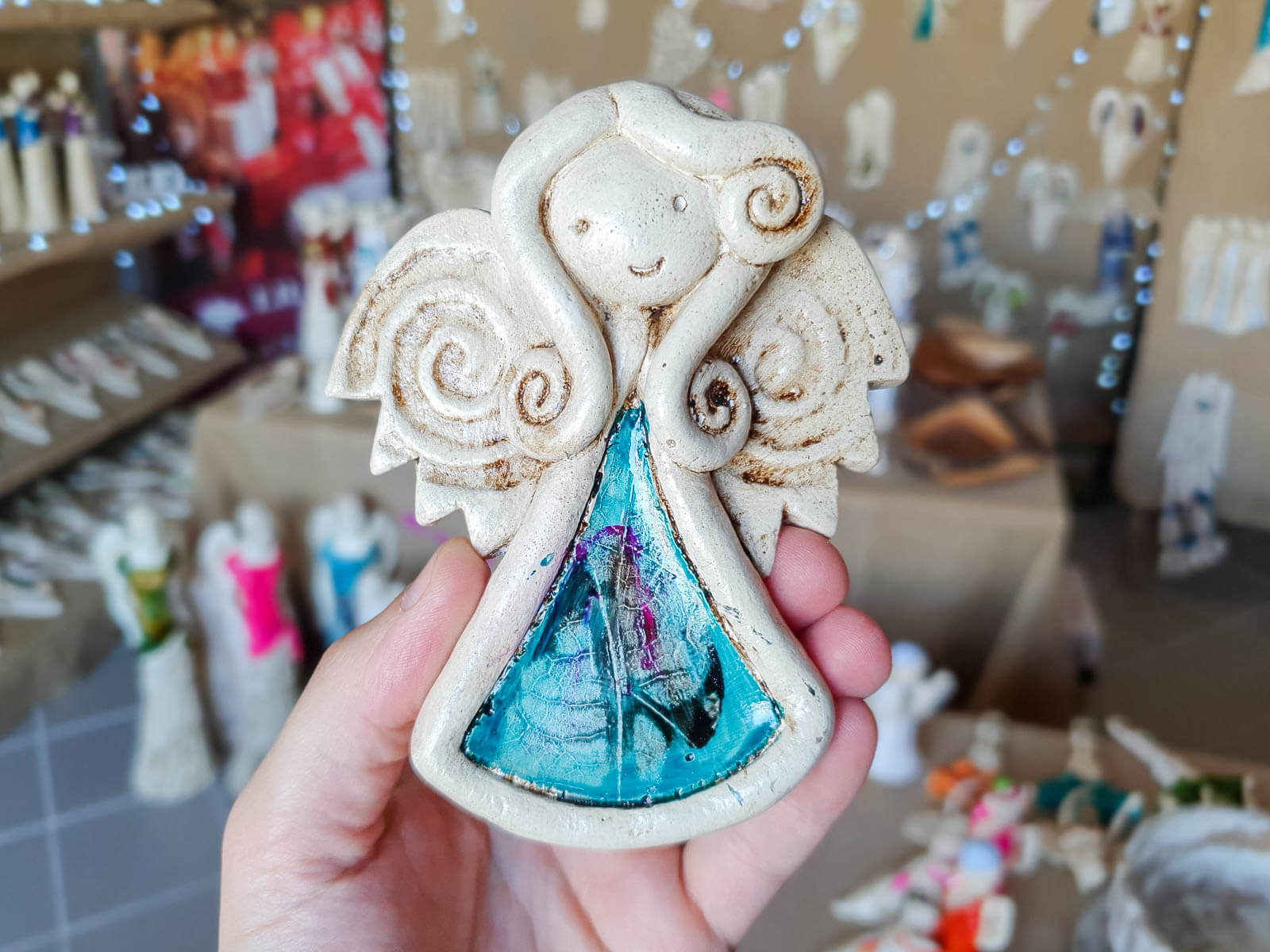 Ręcznie robiony aniołek Niunia w unikatowej wersji Art Leaf z liściem. Niunia jest śliczną dziewczynką, która całym sercem kocha swoją rodzinę. Jest troskliwa, martwi się o innych. Jest ubrana w kolorową sukienkę z wzorem liścia. Ma delikatne skrzydełka. Kolor czerwony jest symbolem miłości i namiętności. Figurka idealnie nadaje się na prezent dla ukochanej osoby z okazji walentynek.