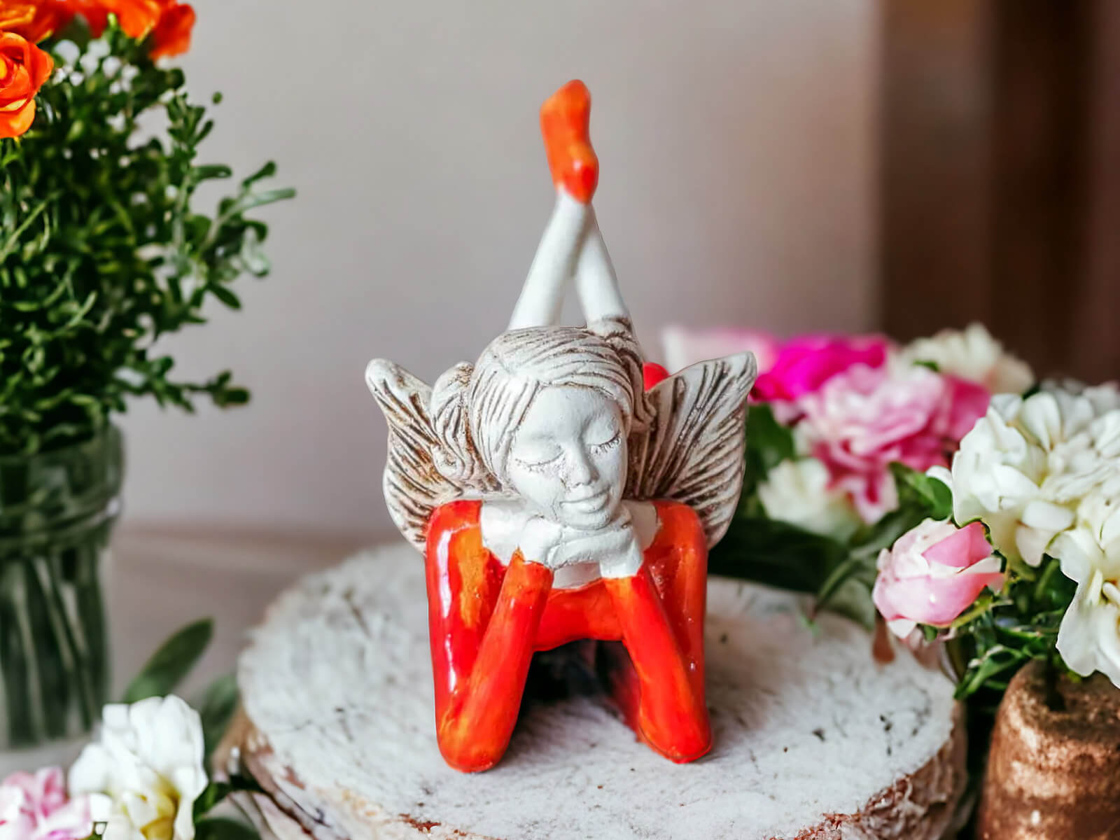 Jeśli anioł ma zostać wręczony jako prezent możemy go również elegancko zapakować w przeźroczysty celofan wiązany ekologicznym sznurkiem. Dzięki temu anioł będzie wyglądał jeszcze bardziej dostojnie i będzie gotowy do wręczenia. Dla wygody możesz również od razu zakupić papierową białą torbę prezentową.