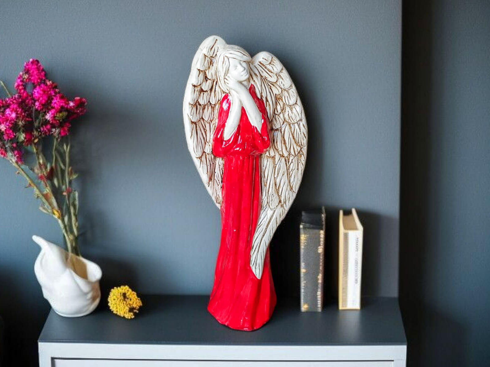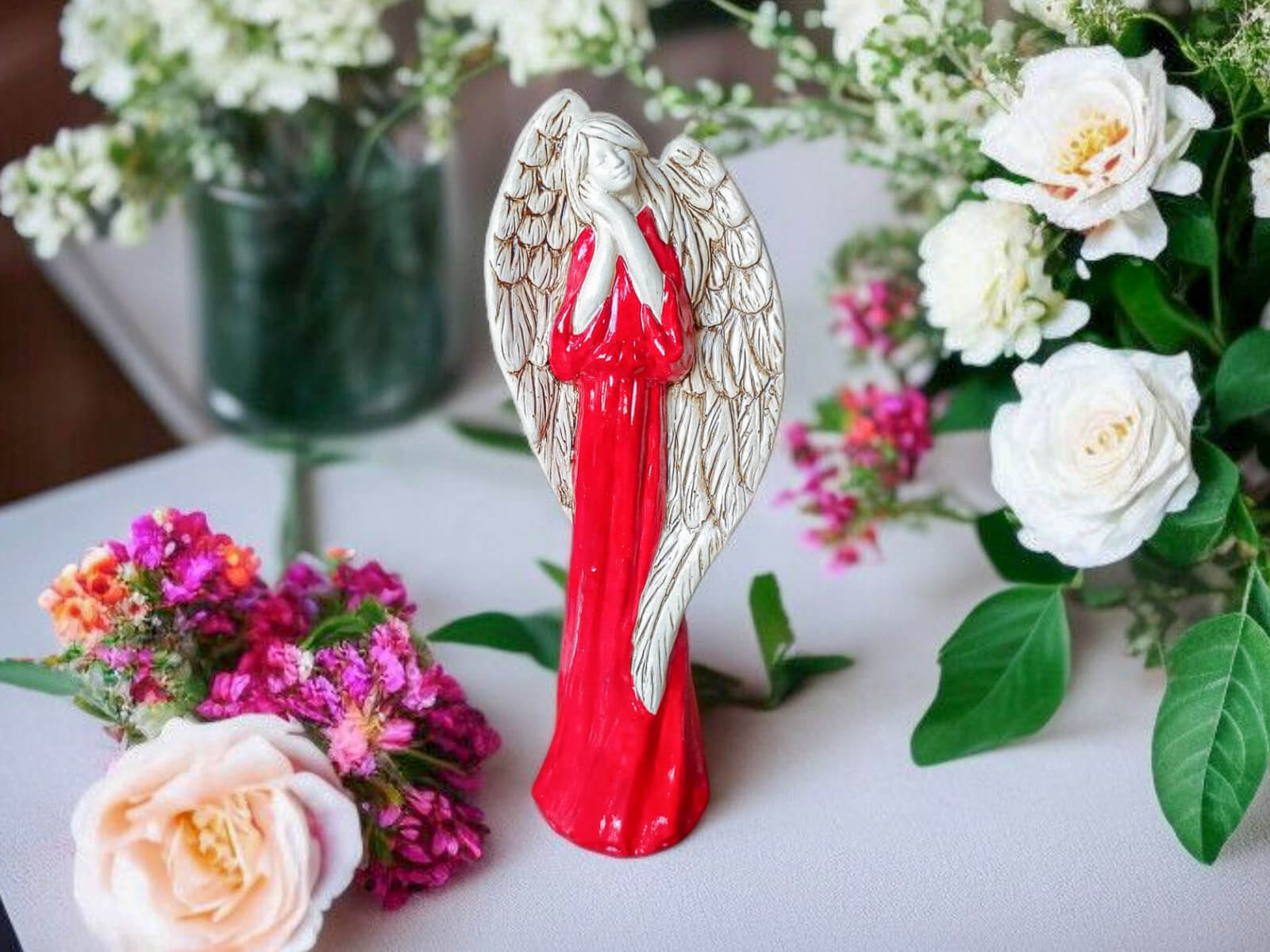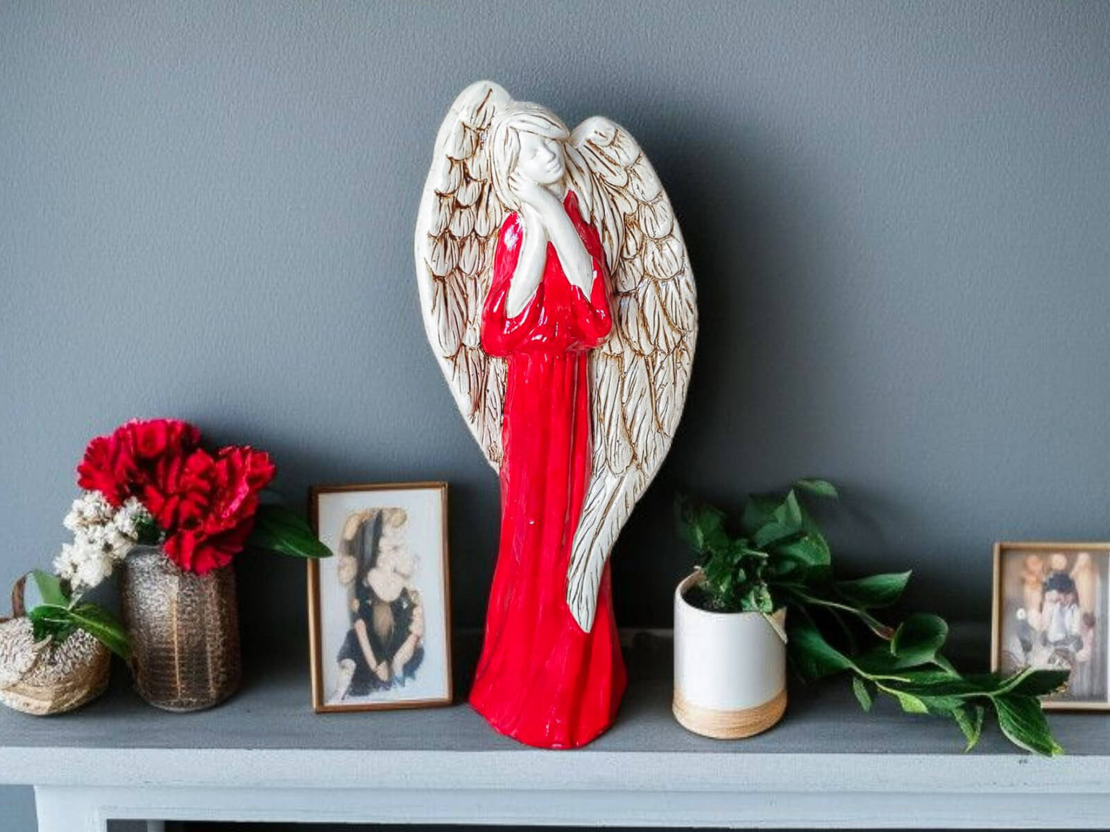 Anioł Gabriel w czerwonej szacie to prezent, który zostaje w sercu. To upominek z duszą – przekazujący to, co naprawdę ważne: miłość, wdzięczność i duchową obecność. Wybierz go, jeśli szukasz czegoś więcej niż tylko dekoracji – szukasz gestu, który zostanie zapamiętany.