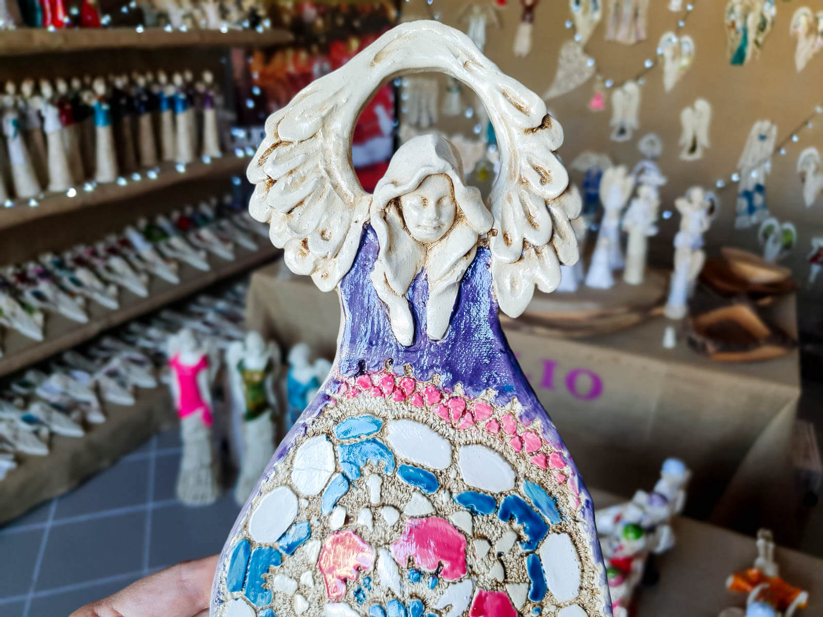 Jeśli anioł ma zostać wręczony jako prezent możemy go również elegancko zapakować w przeźroczysty celofan wiązany ekologicznym sznurkiem. Dzięki temu anioł będzie wyglądał jeszcze bardziej dostojnie i będzie gotowy do wręczenia. Dla wygody możesz również od razu zakupić papierową białą torbę prezentową.