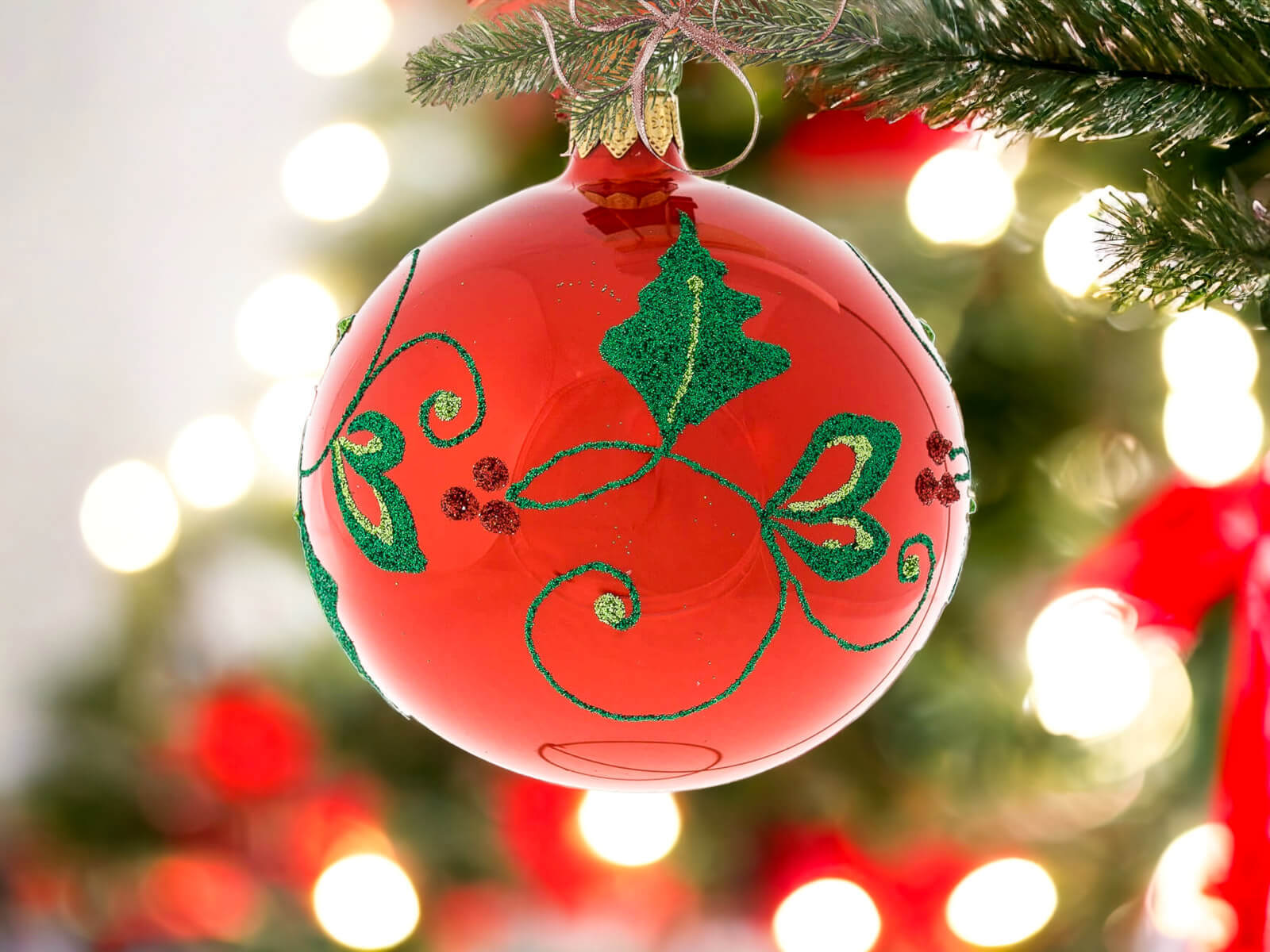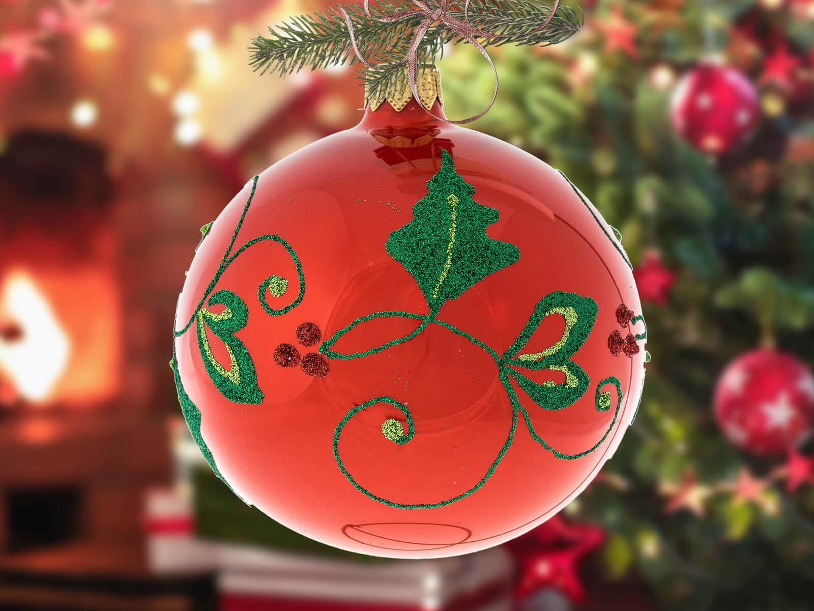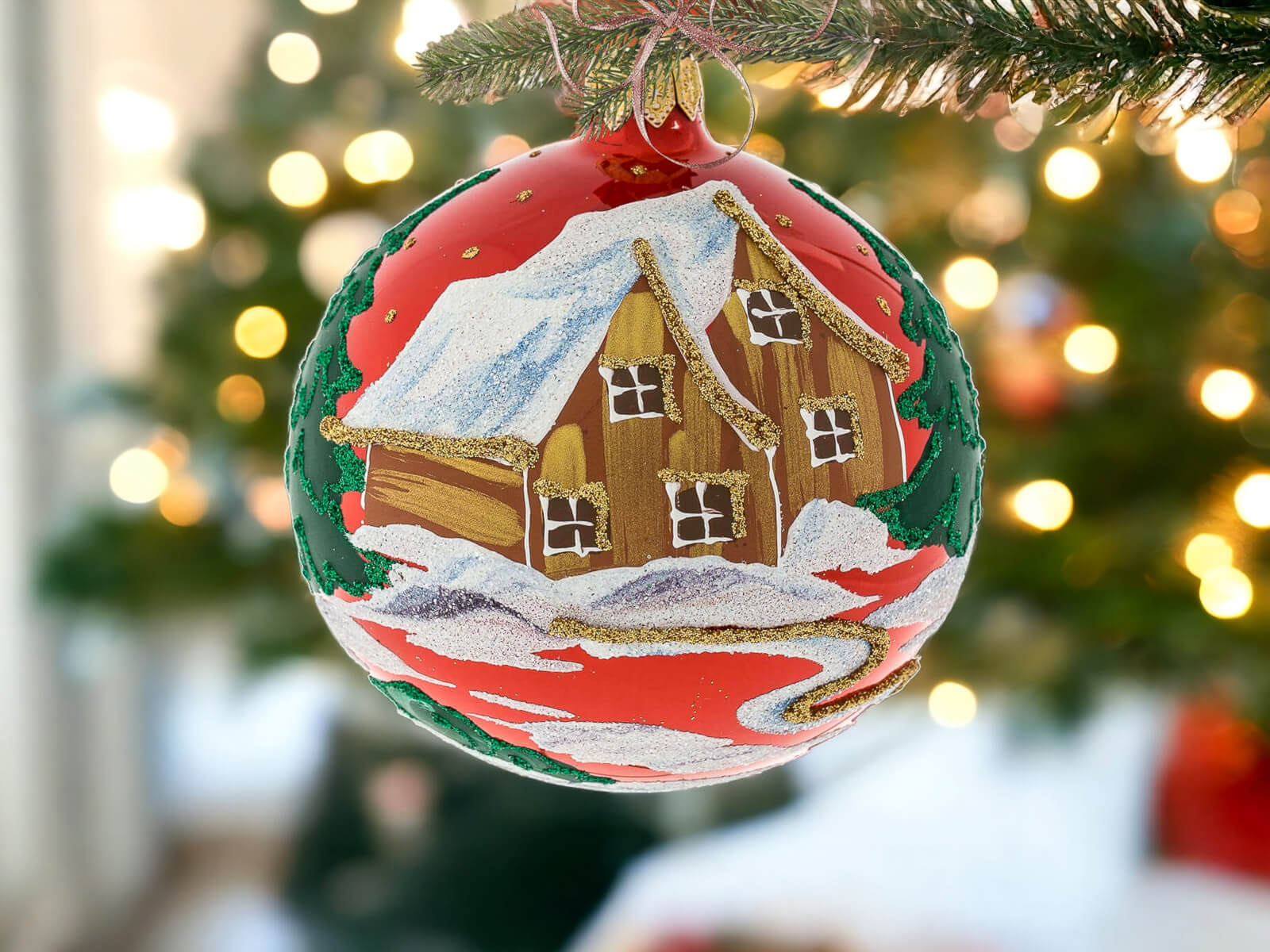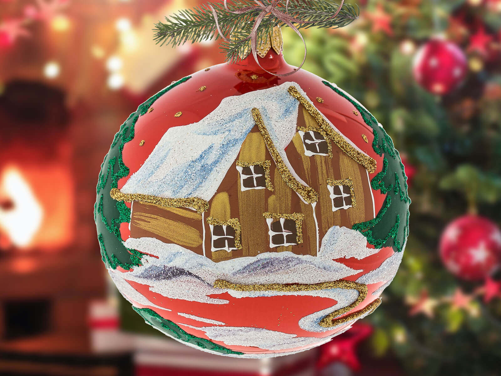 Czerwony błysk stanowi energetyczne tło dla złoto-zielonych zdobień, które ozdabiają chatki, Mikołaja i kosodrzew na powierzchni każdej z bombek. Precyzyjnie ręcznie nanoszone złote detale nadają bombkom wyjątkowego blasku, tworząc efektowny zestaw, który z pewnością przyciągnie uwagę i stworzy wyjątkową atmosferę podczas świąt.