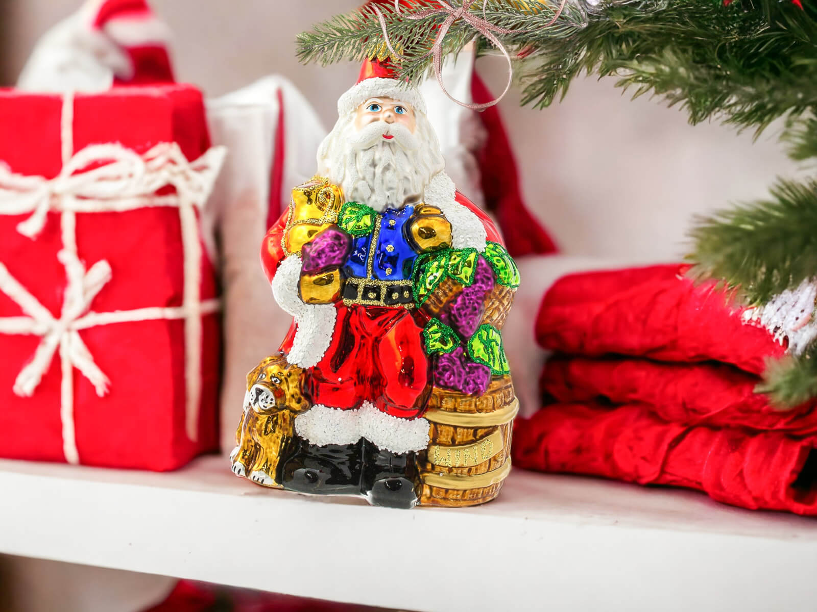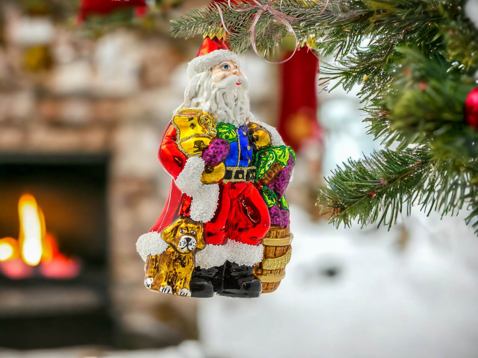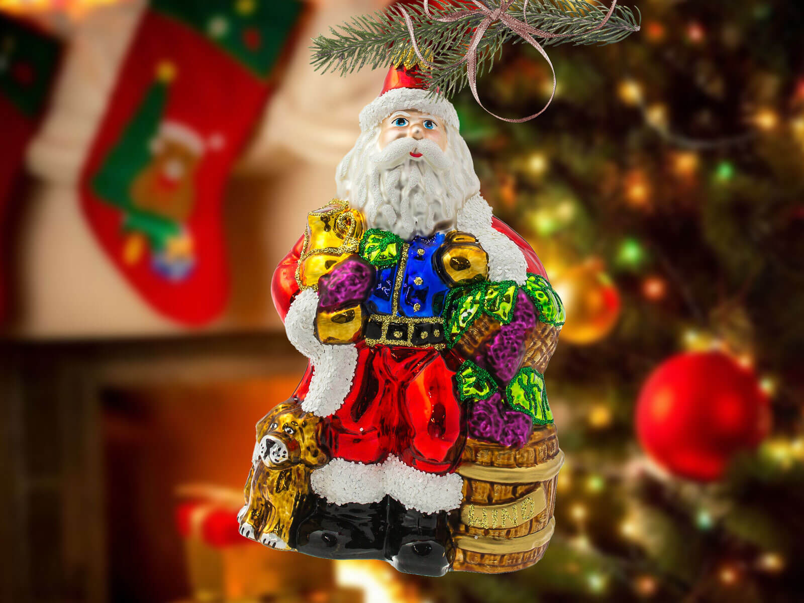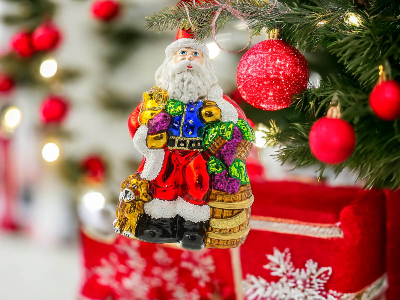 Każdy szczegół tej bombki wykonany jest z wyjątkową dbałością i precyzją – od wyrazistego uśmiechu Świętego Mikołaja, przez śnieżnobiałą brodę, aż po mieniące się detale na worku pełnym prezentów i lśniące w oczach psa. Każda bombka jest tworzona ręcznie, co sprawia, że nie ma dwóch identycznych egzemplarzy. Artystyczne wykonanie i delikatne, ręczne malowanie nadają każdej ozdobie indywidualny charakter. Mikołaj, stojąc w świątecznym anturażu pełnym przyjaznych kolorów i detali, tworzy atmosferę ciepła i radości, przyciągając wzrok i wzbudzając uśmiech zarówno u dzieci, jak i dorosłych.