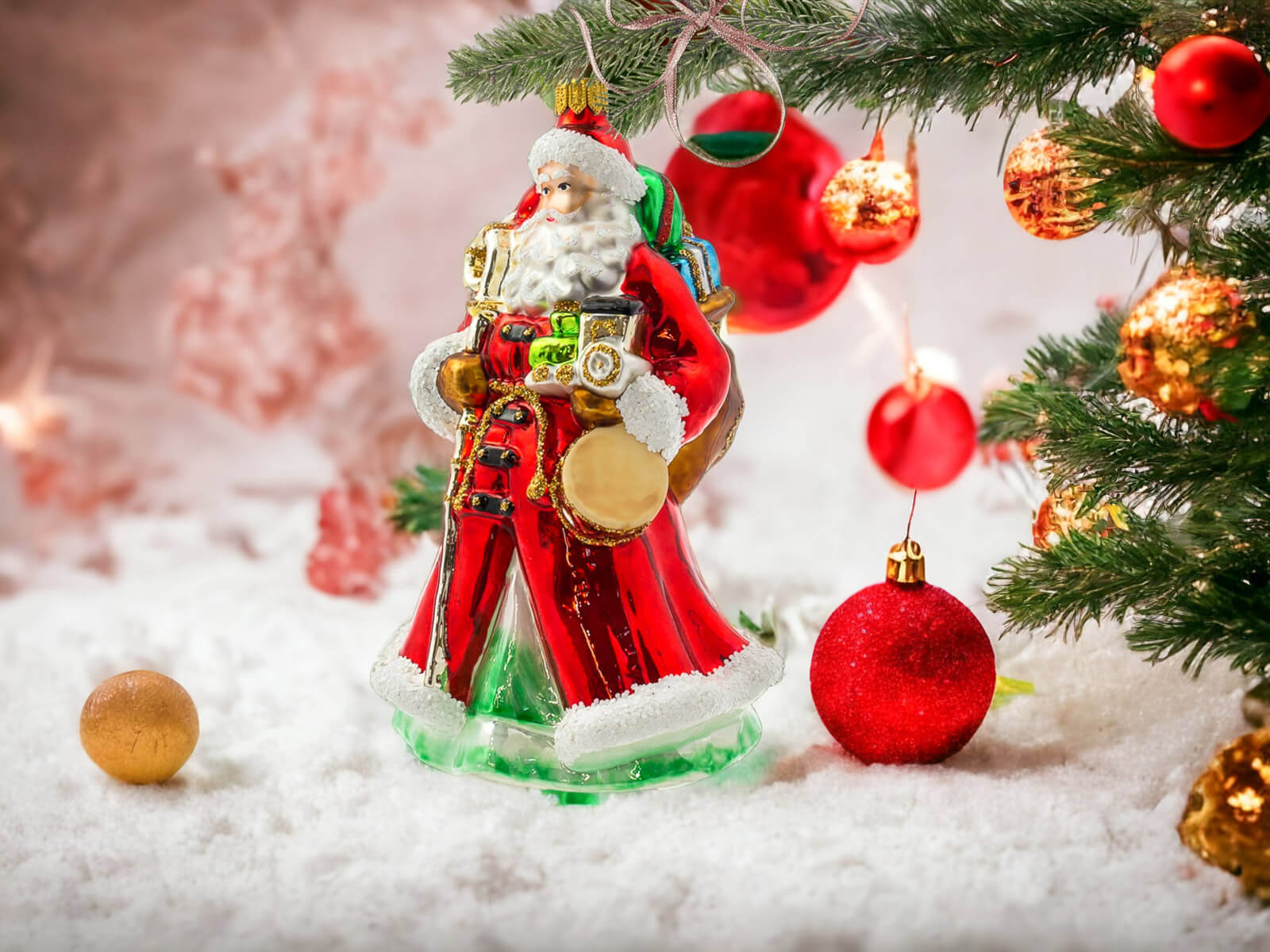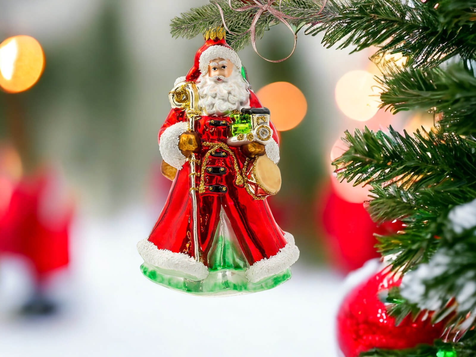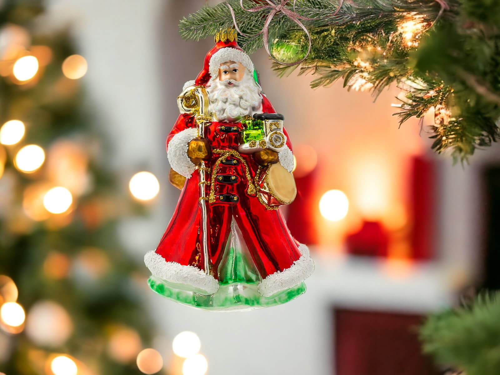 Bombka w kształcie Świętego Mikołaja to dekoracja, która łączy w sobie tradycję z artystycznym kunsztem. Jest idealna do wnętrz zarówno w klasycznym, jak i nowoczesnym stylu, tworząc ciepłą i przytulną atmosferę świąt.